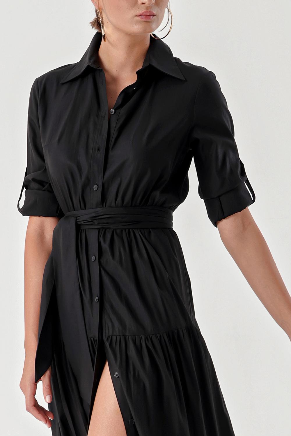Black Pleated shirt dress 94241