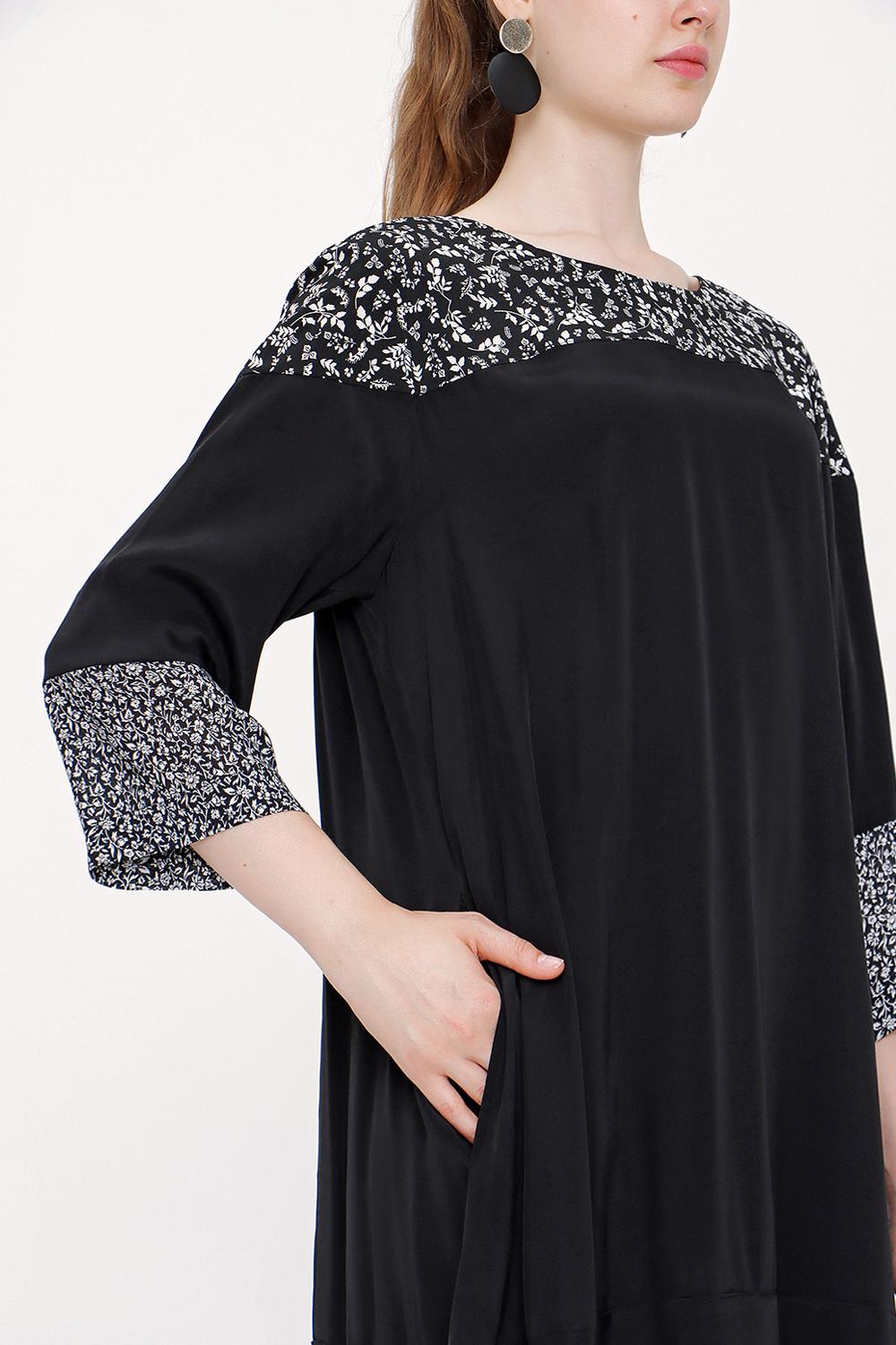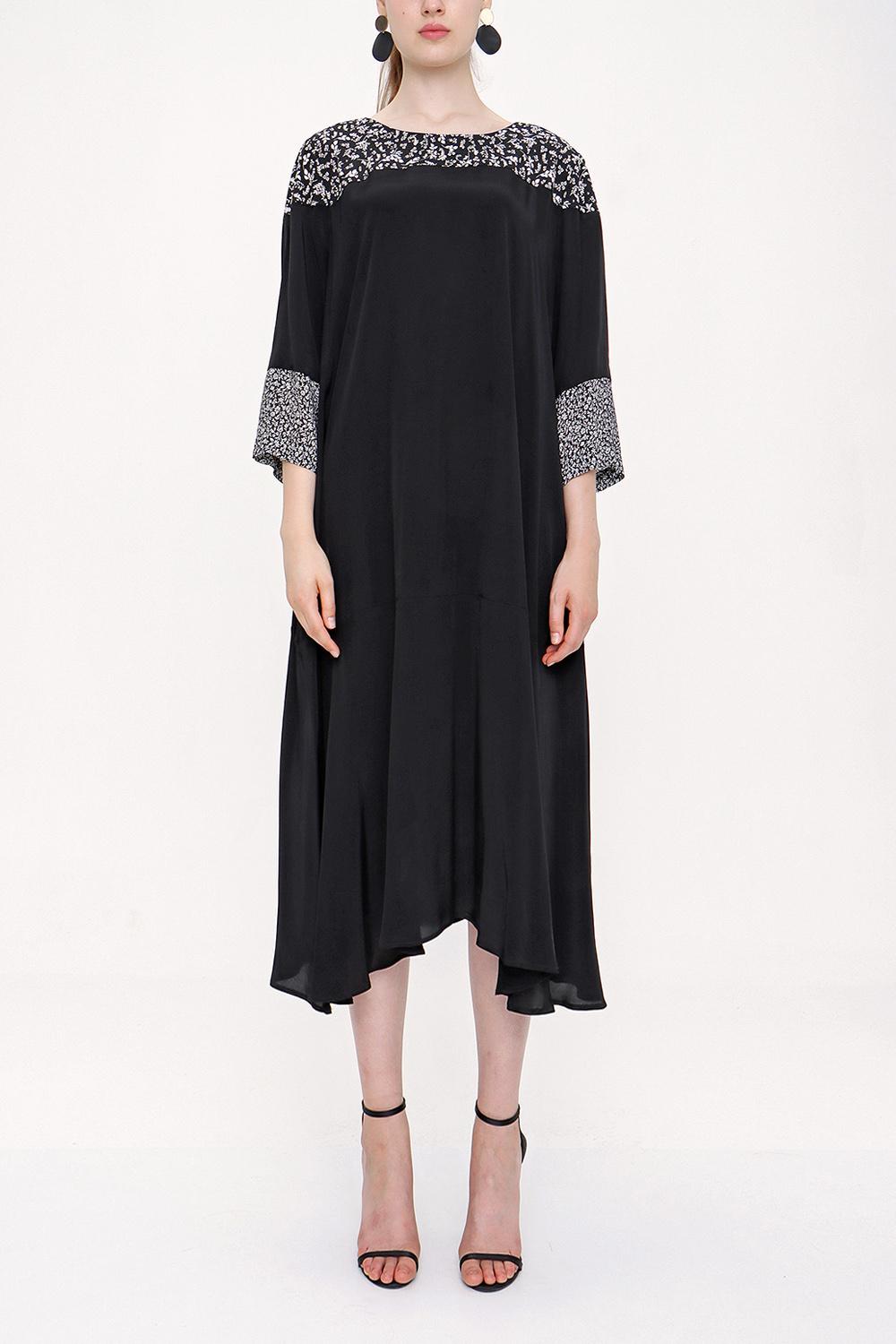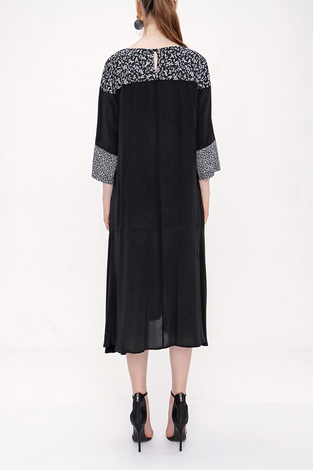 Black printed fabric mix dress 93950