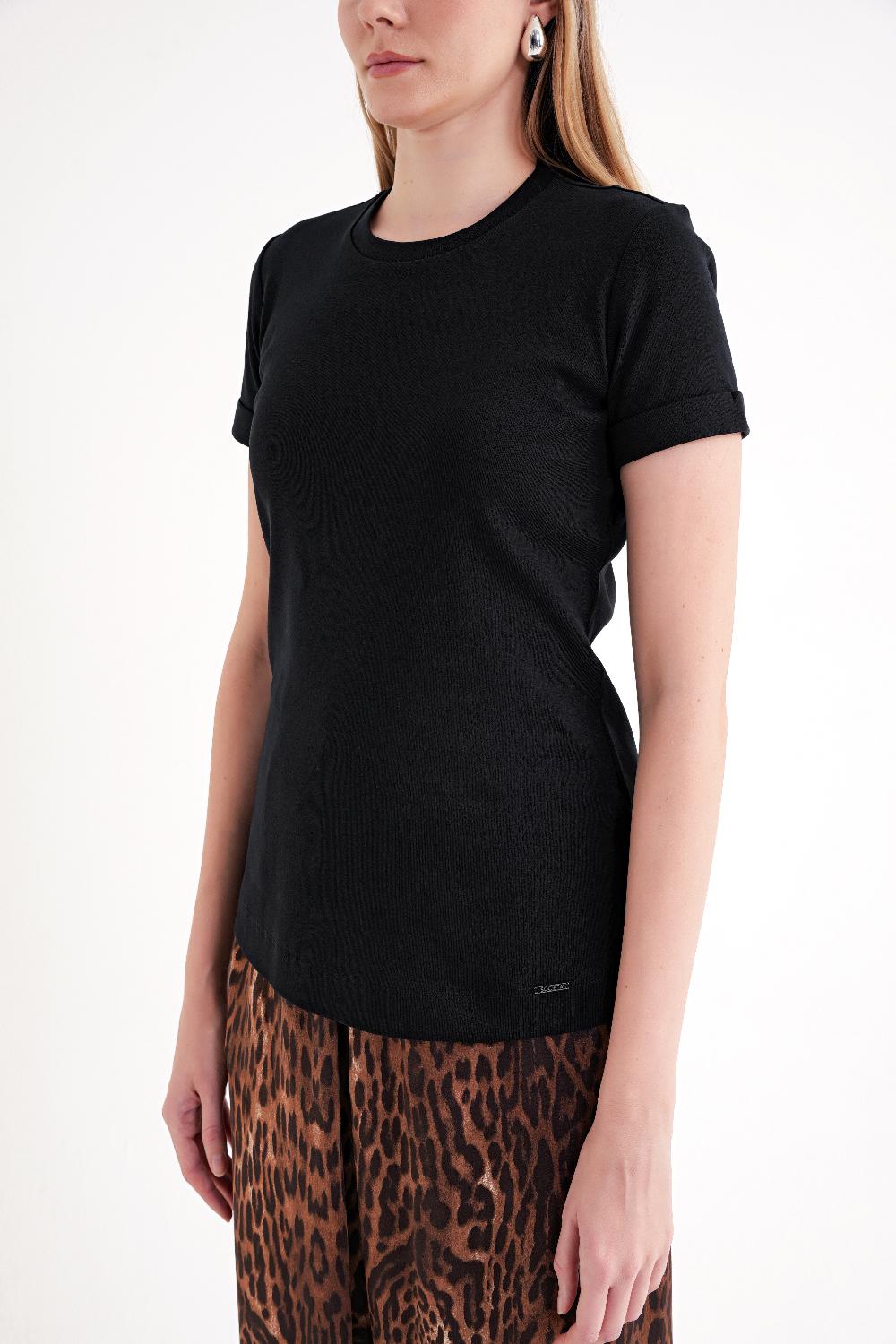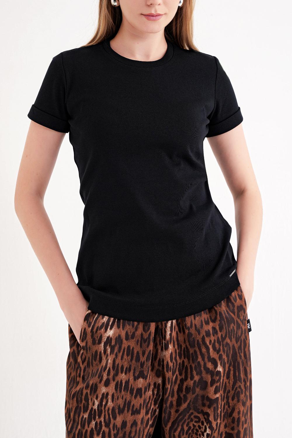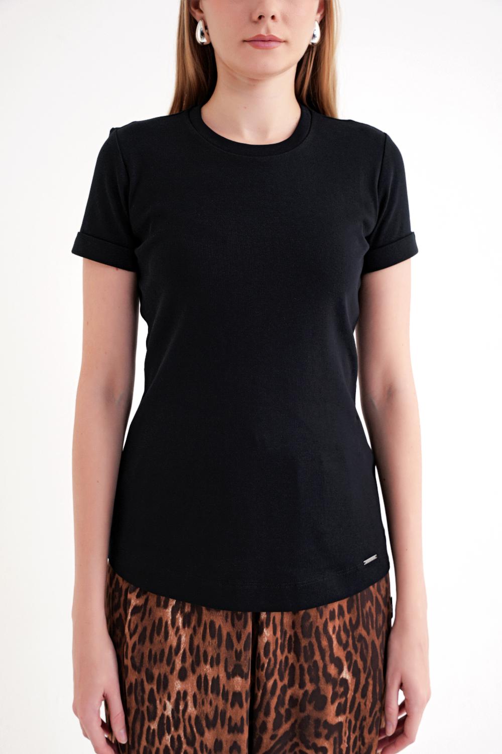 Black Short-sleeve T-shirt with a classic crew neckline 19832