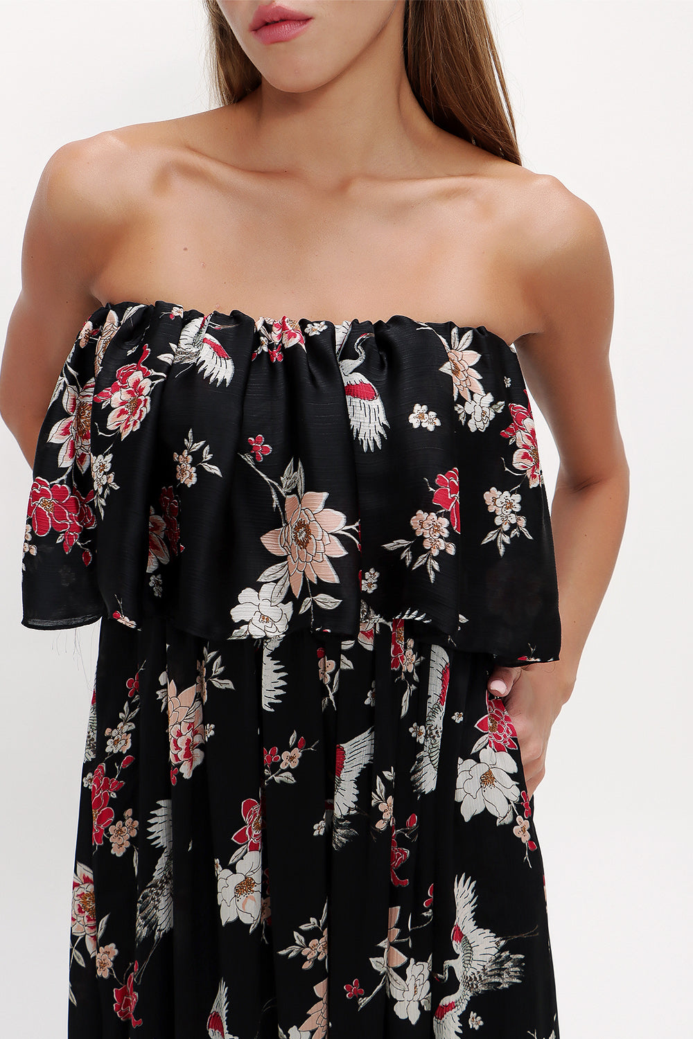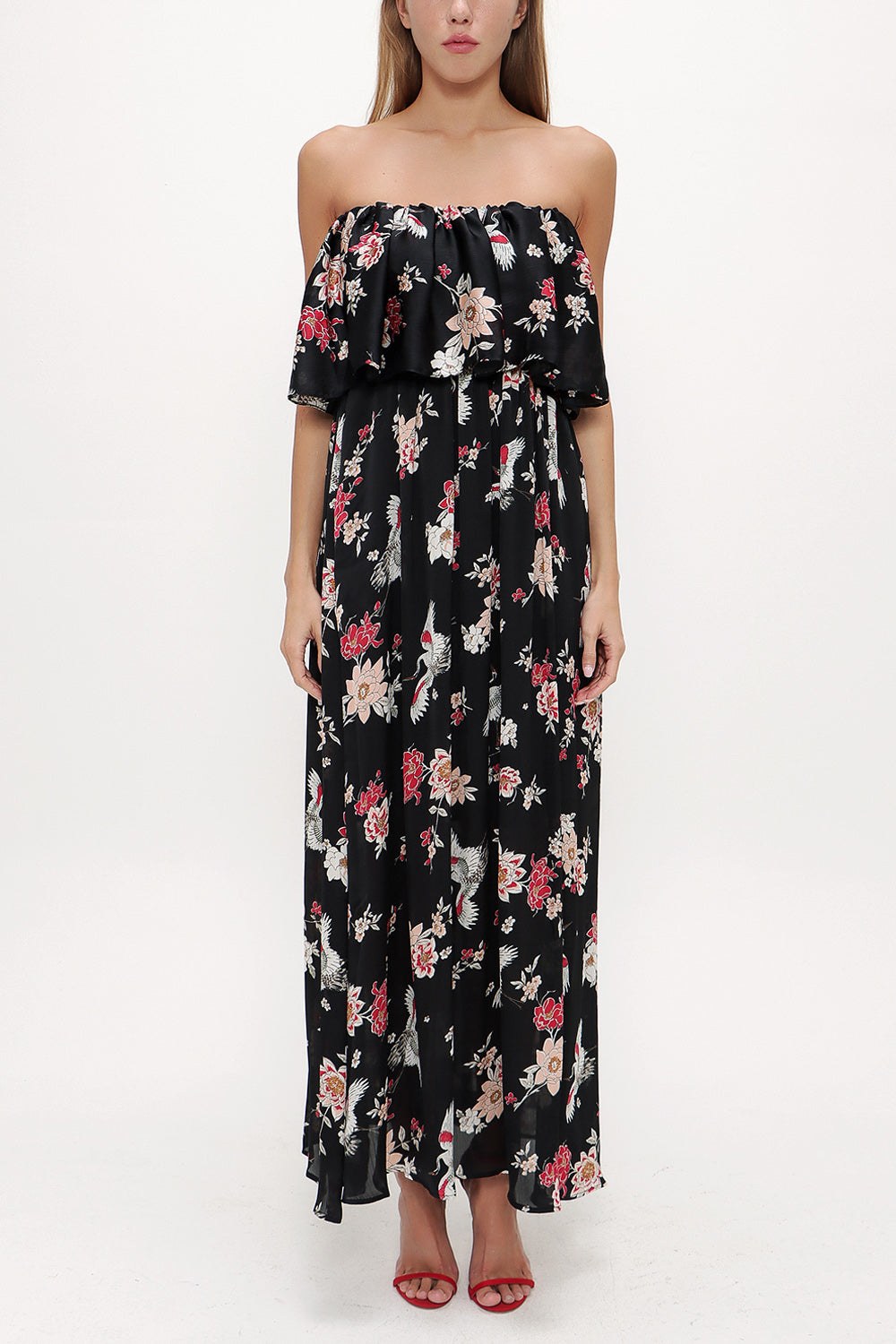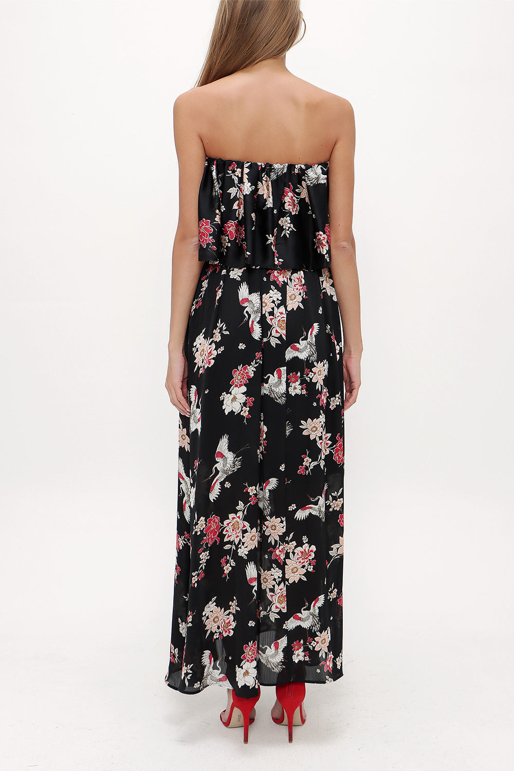 Black Strapless ruffled maxi dress 92331