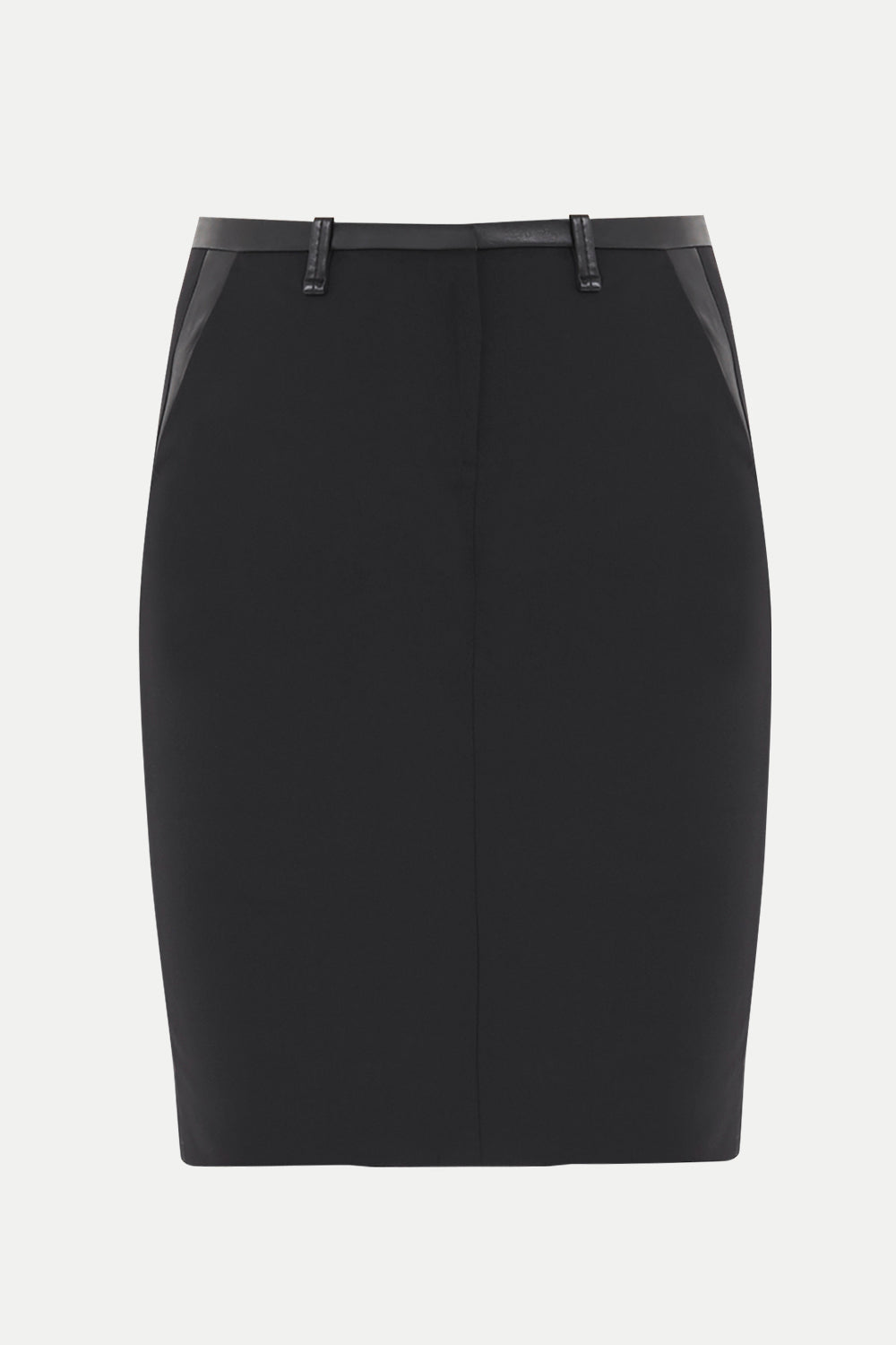 Black Thigh high wool skirt with leather detail 80607