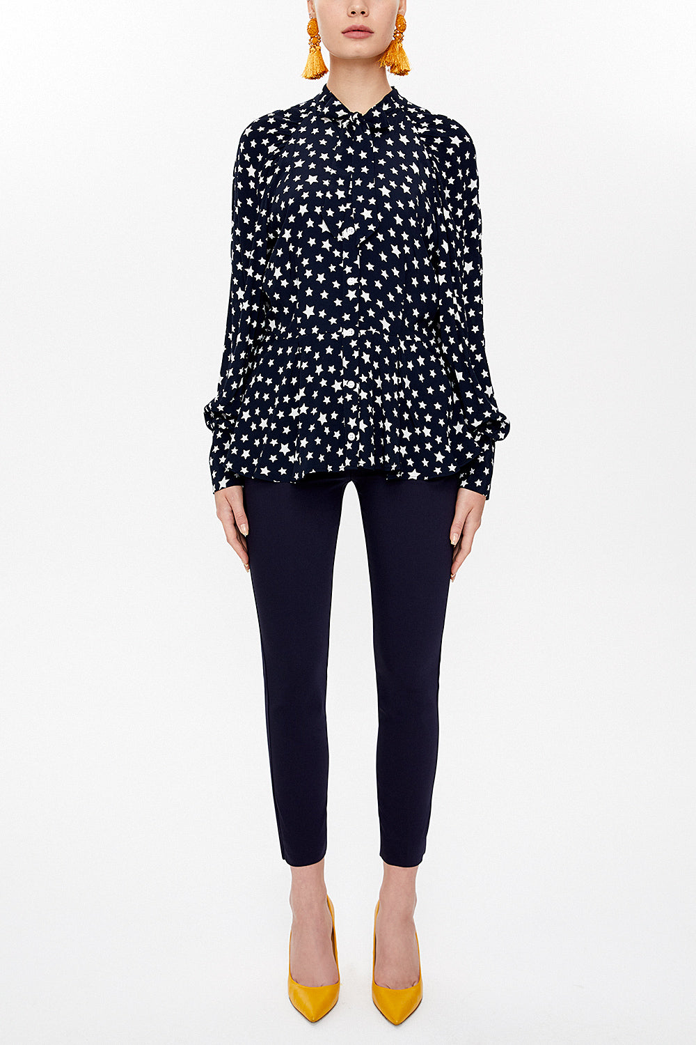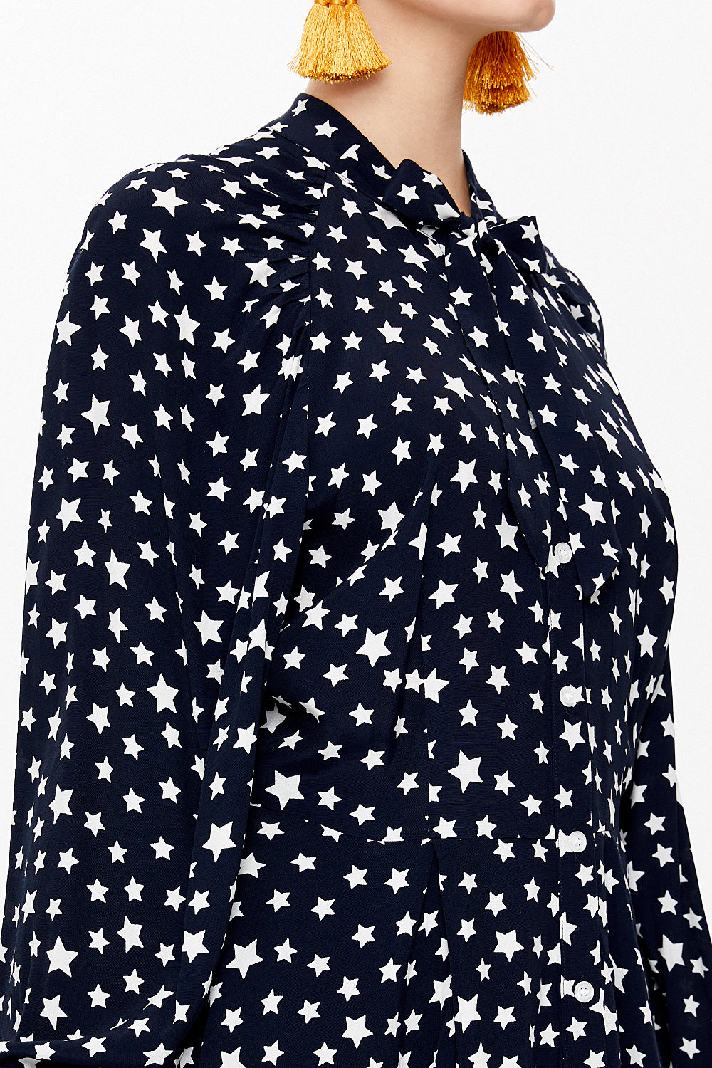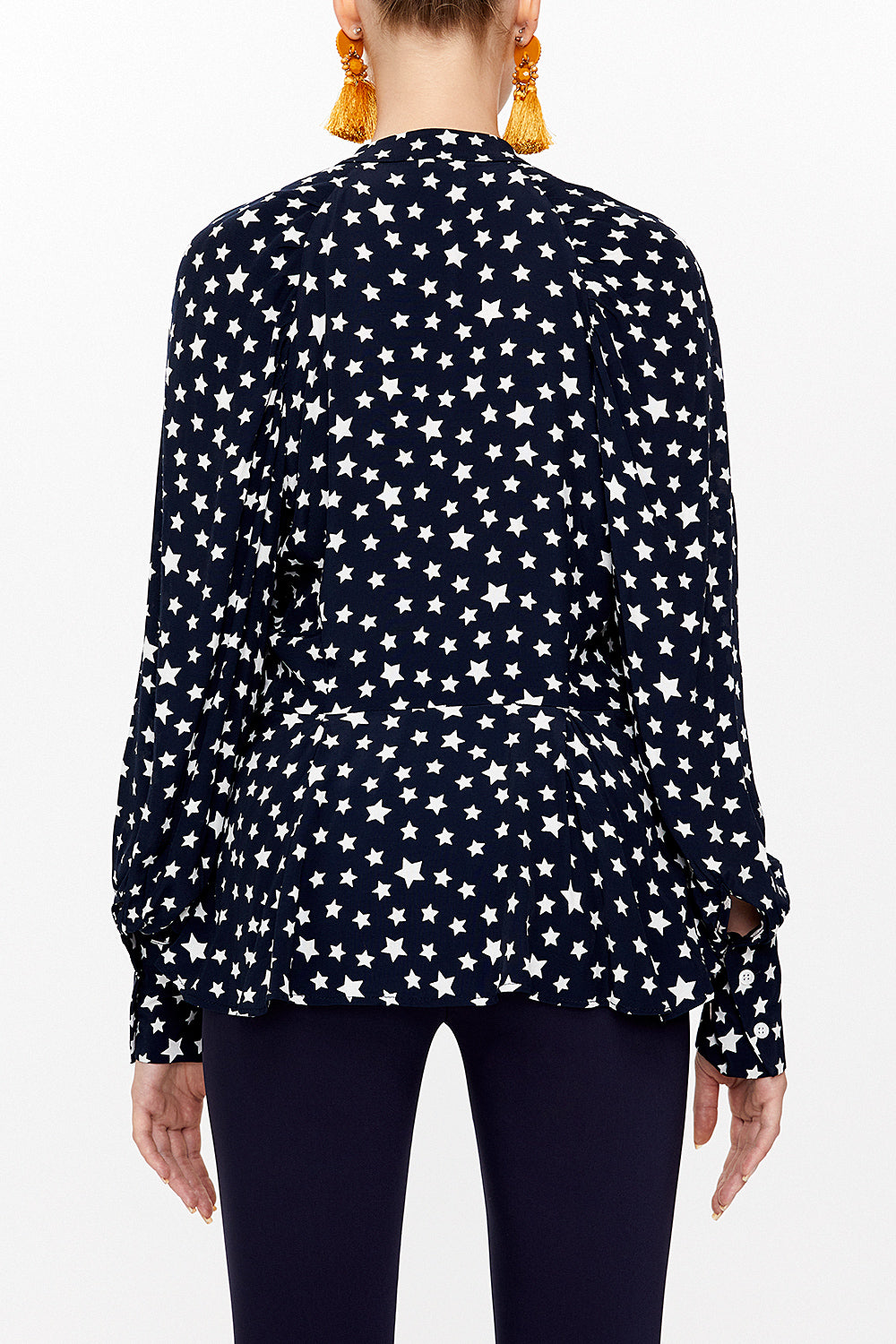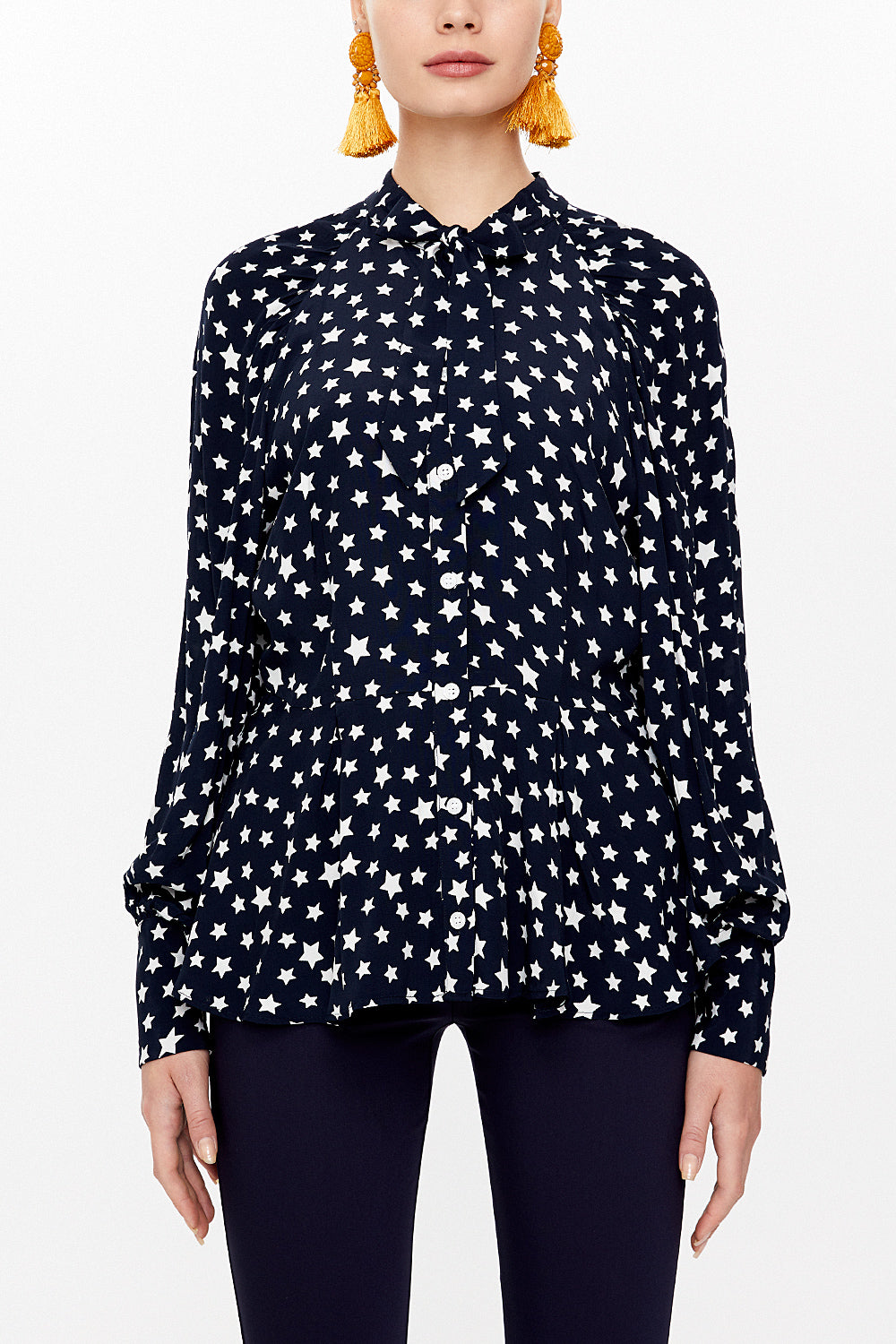 Black Tie-neck balloon sleeve shirt 10748