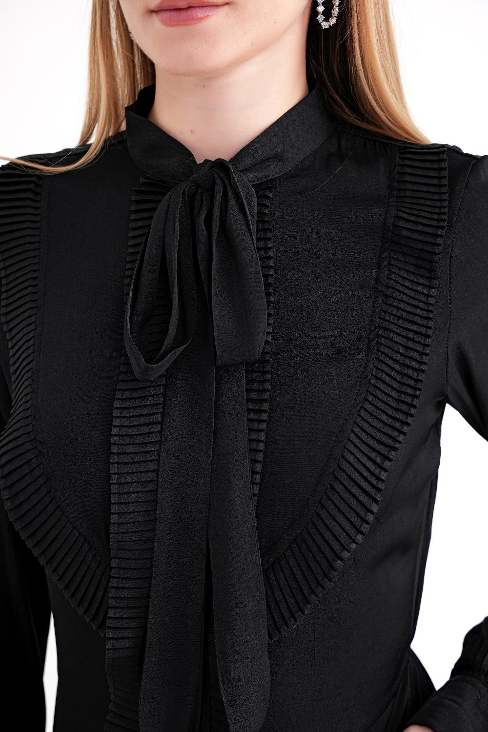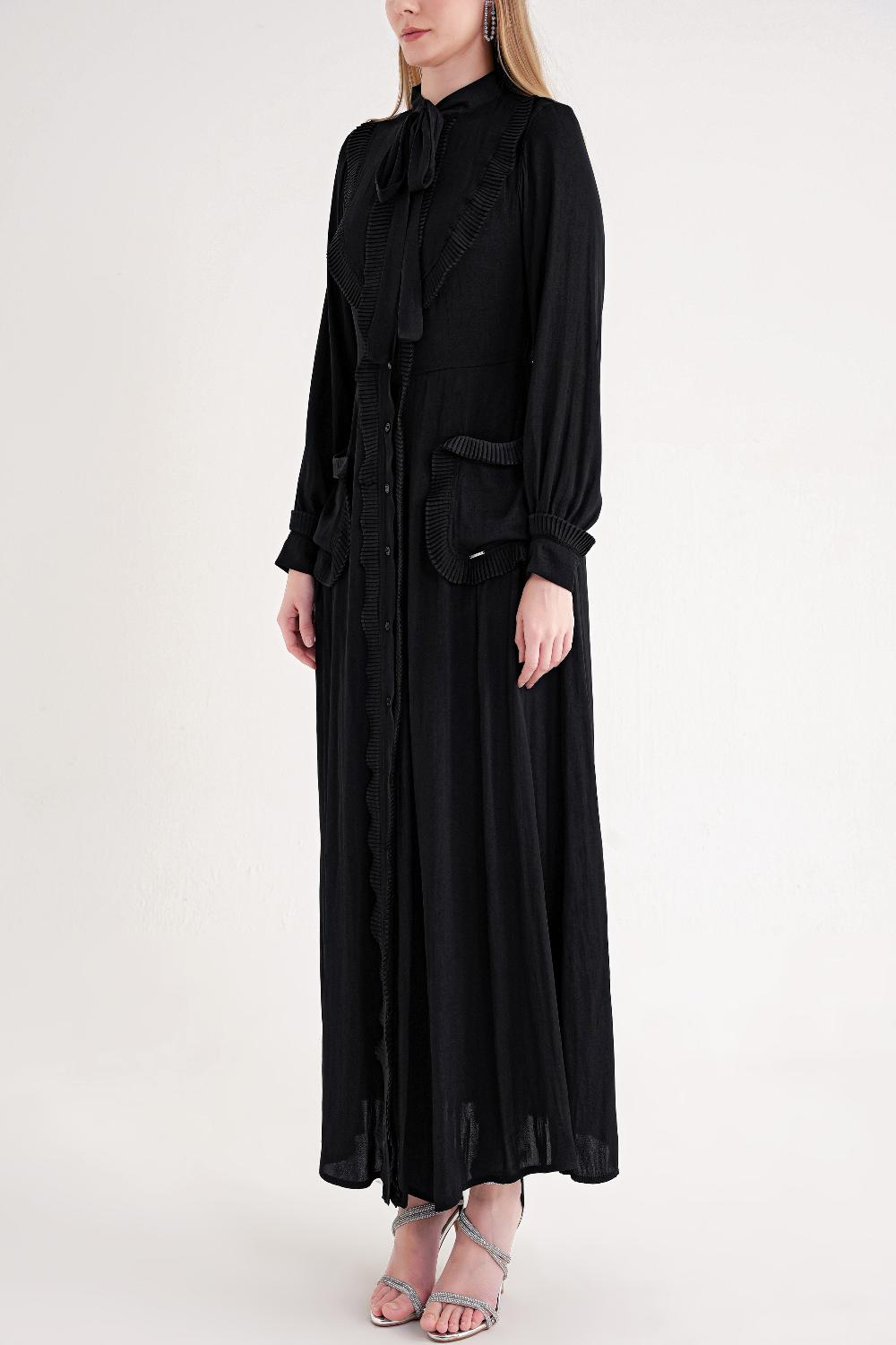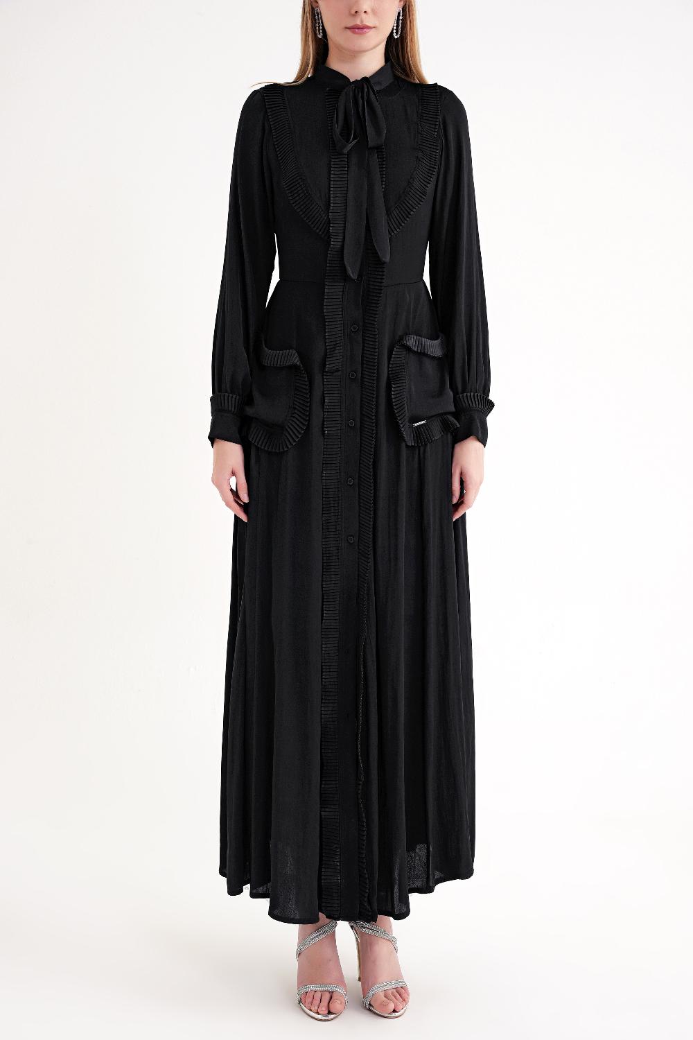 Black Tie-neck long dress 94716