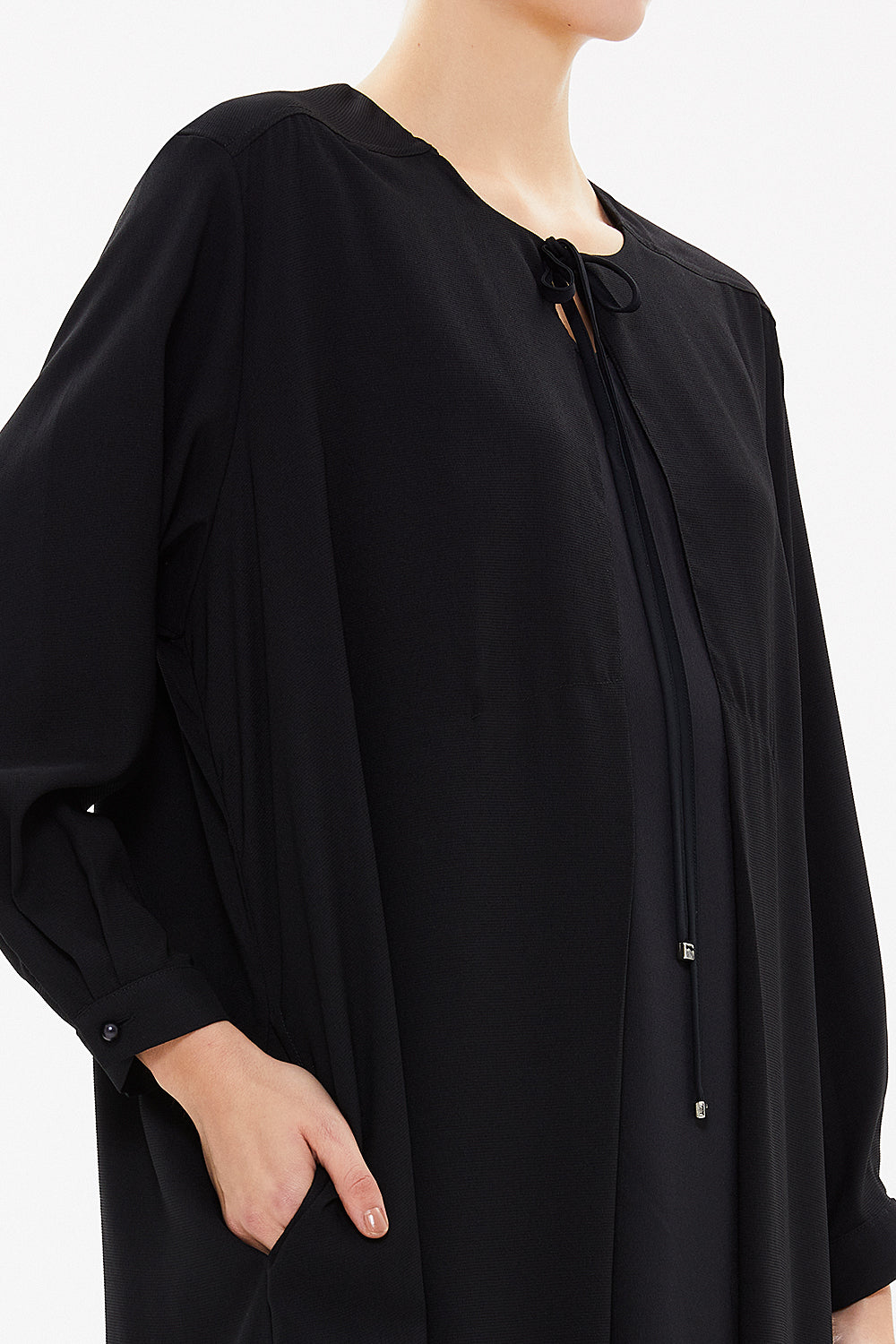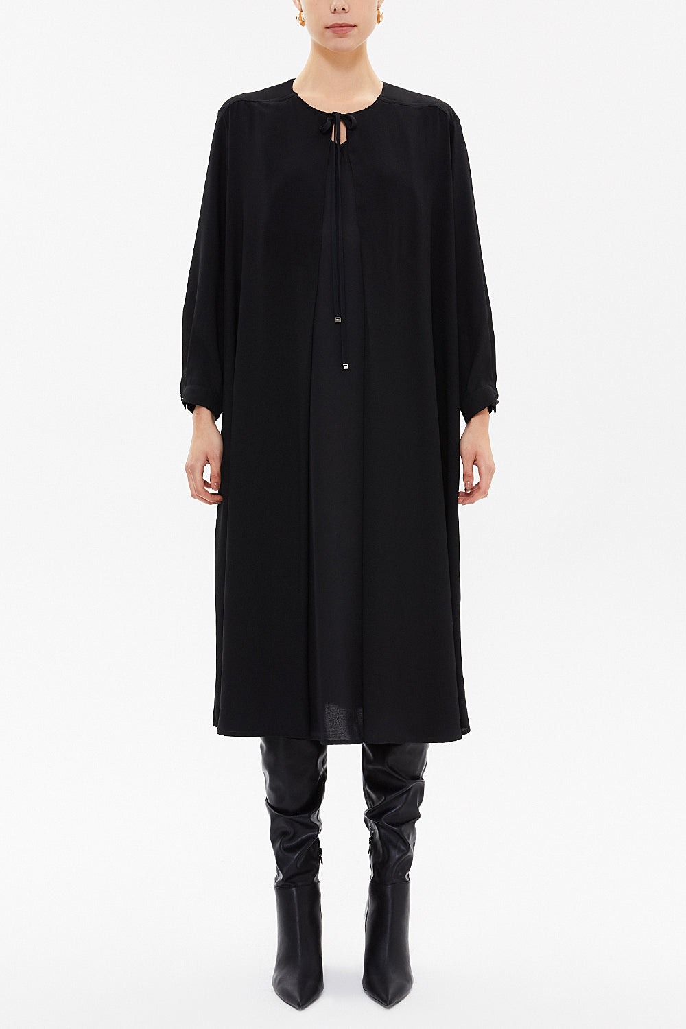 Black Tie-neck midi dress 93053