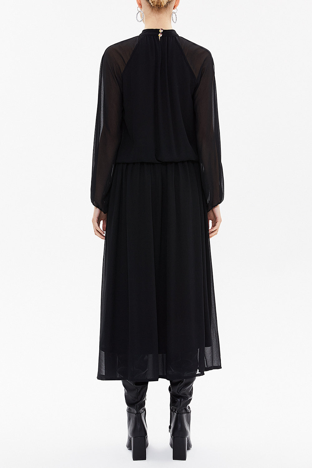 Black Turtle neck Pleated chiffon midi dress 92213
