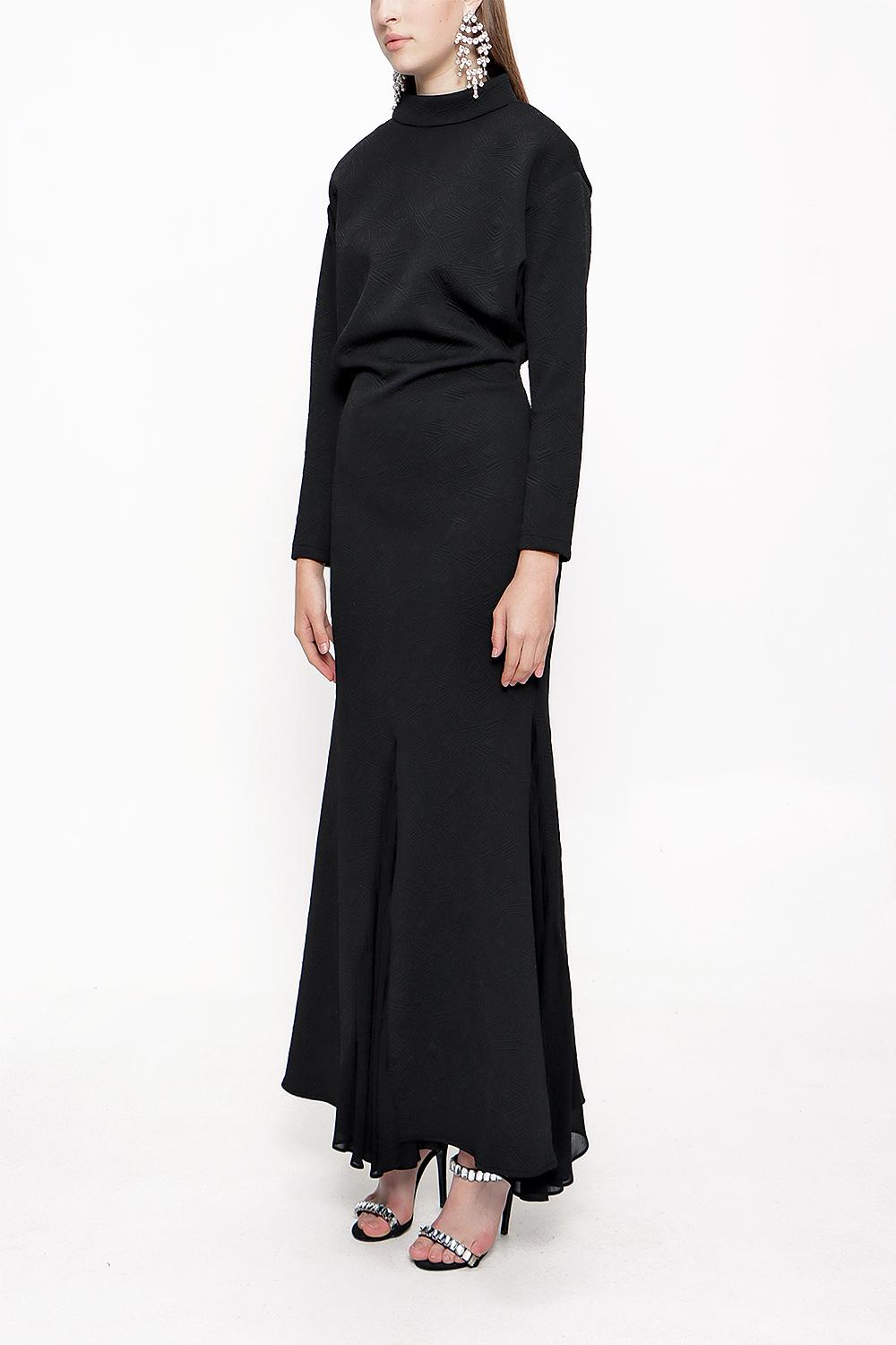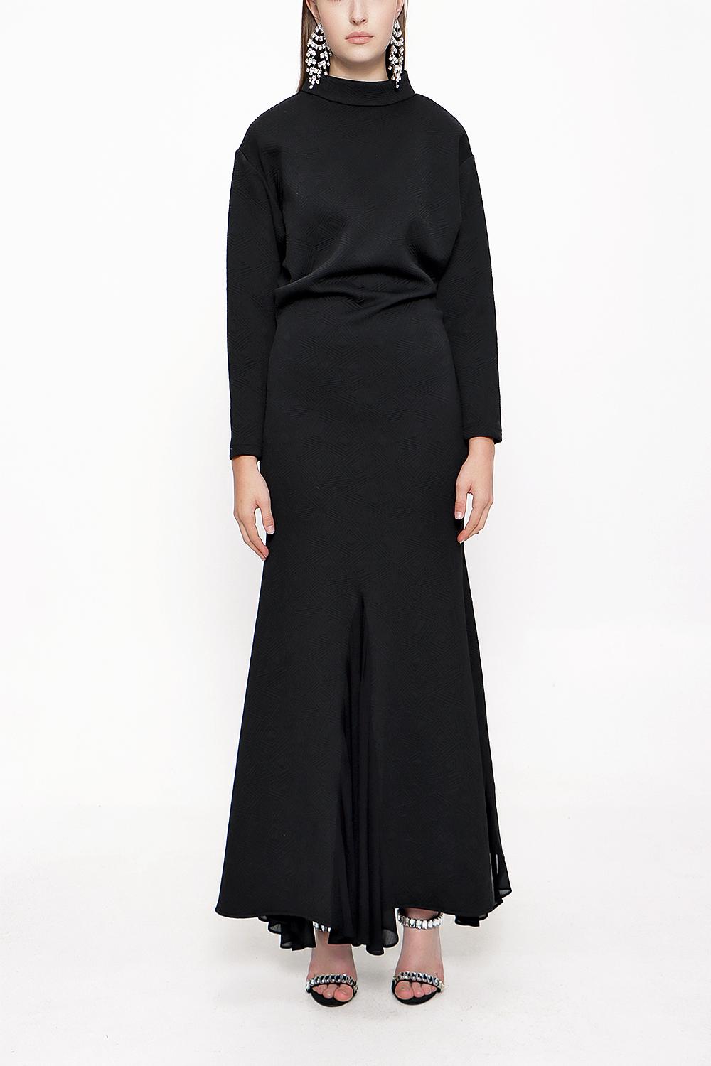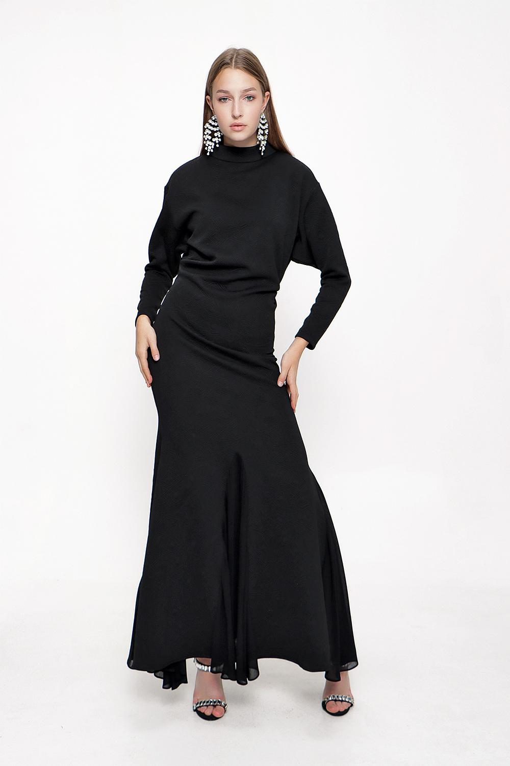 Black Turtleneck chiffon combination long dress 94022