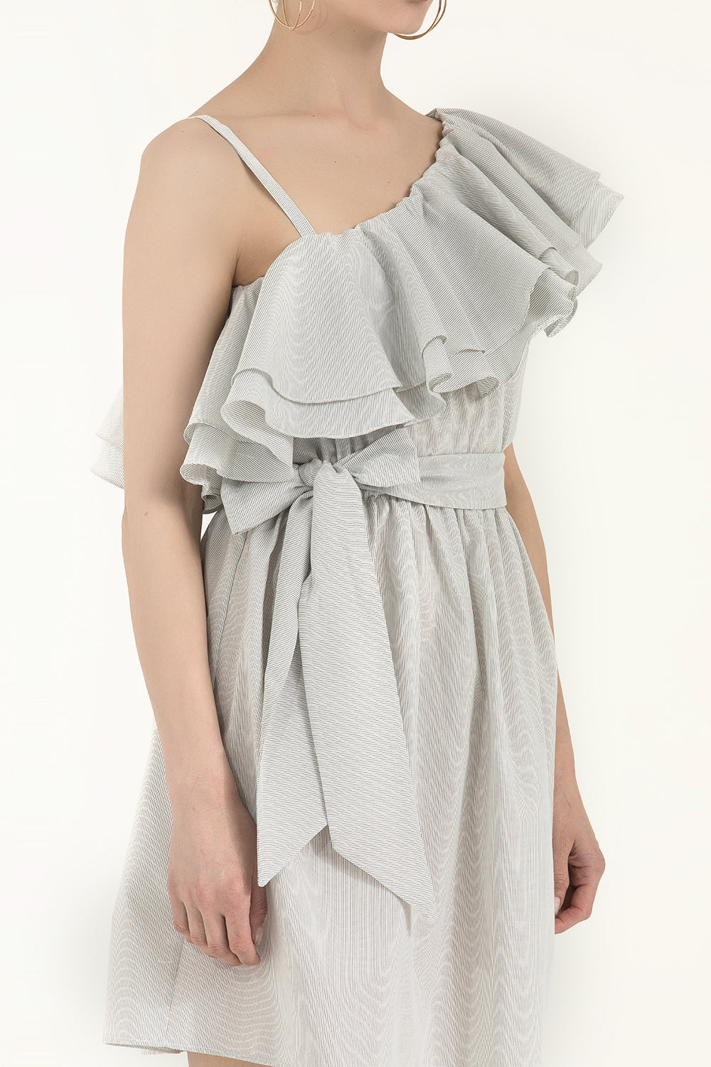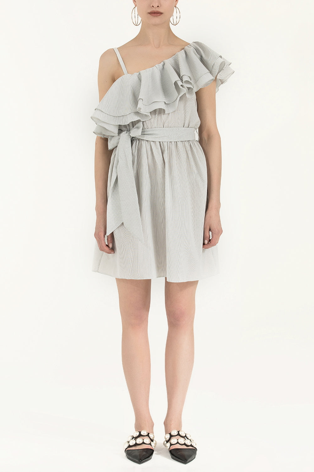 Black White One shoulder ruffled mini dress 92345