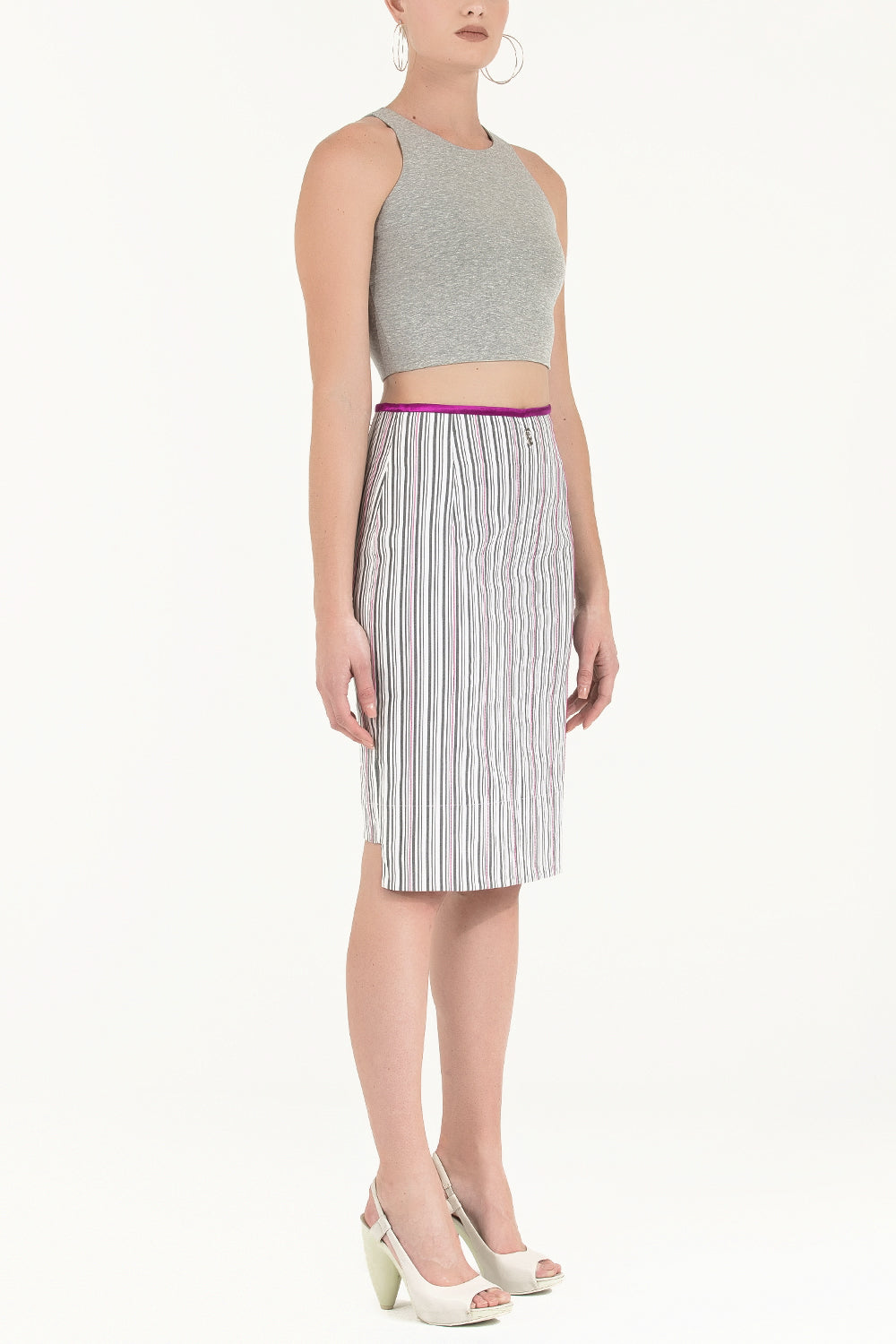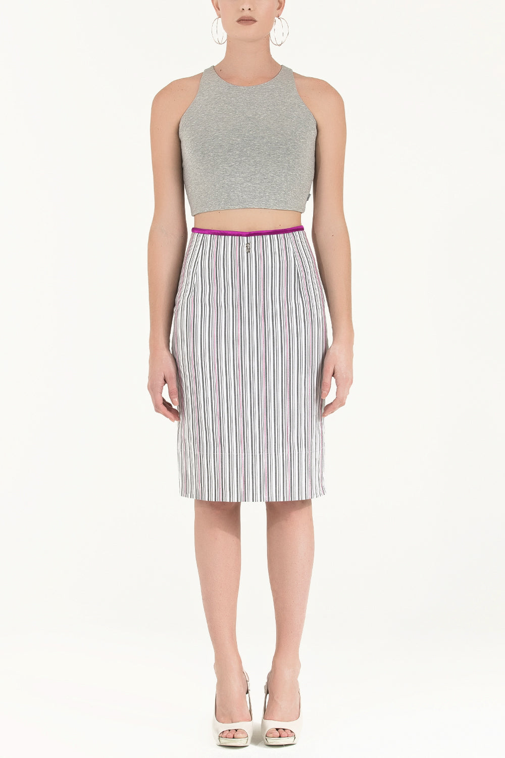 Black White Striped cotton skirt 80383