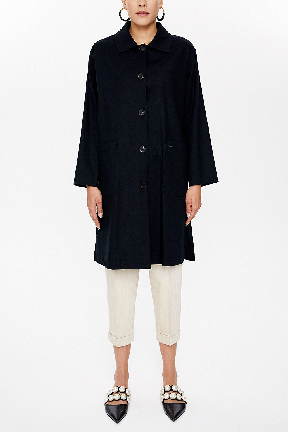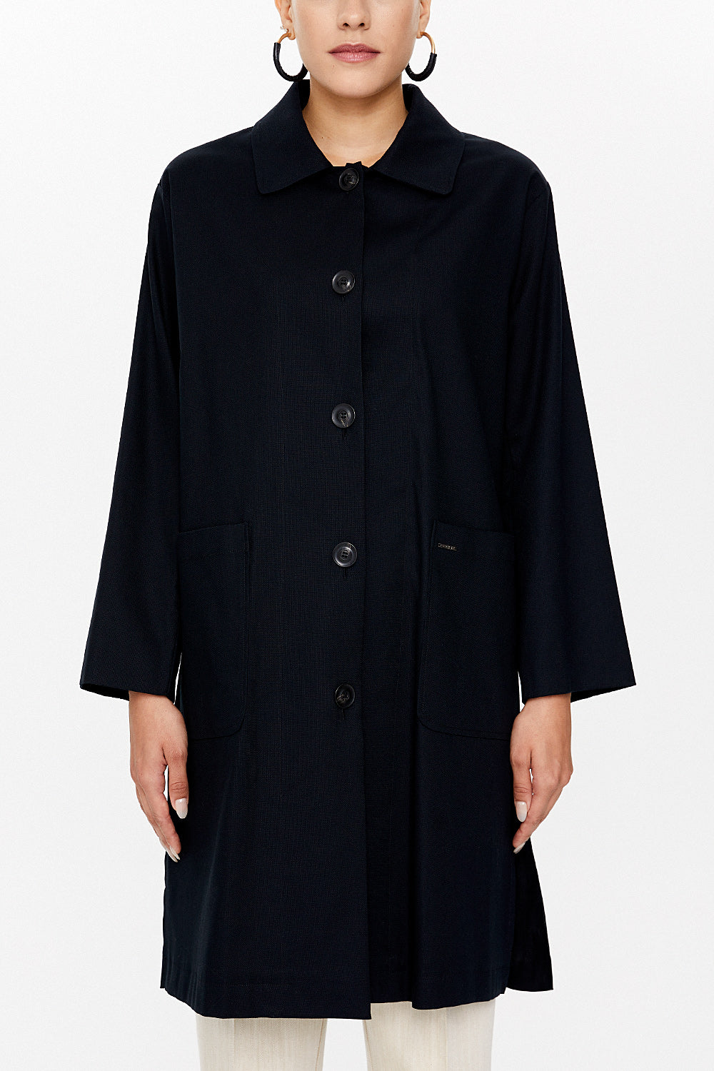 Black Wide cut slit coat 30422