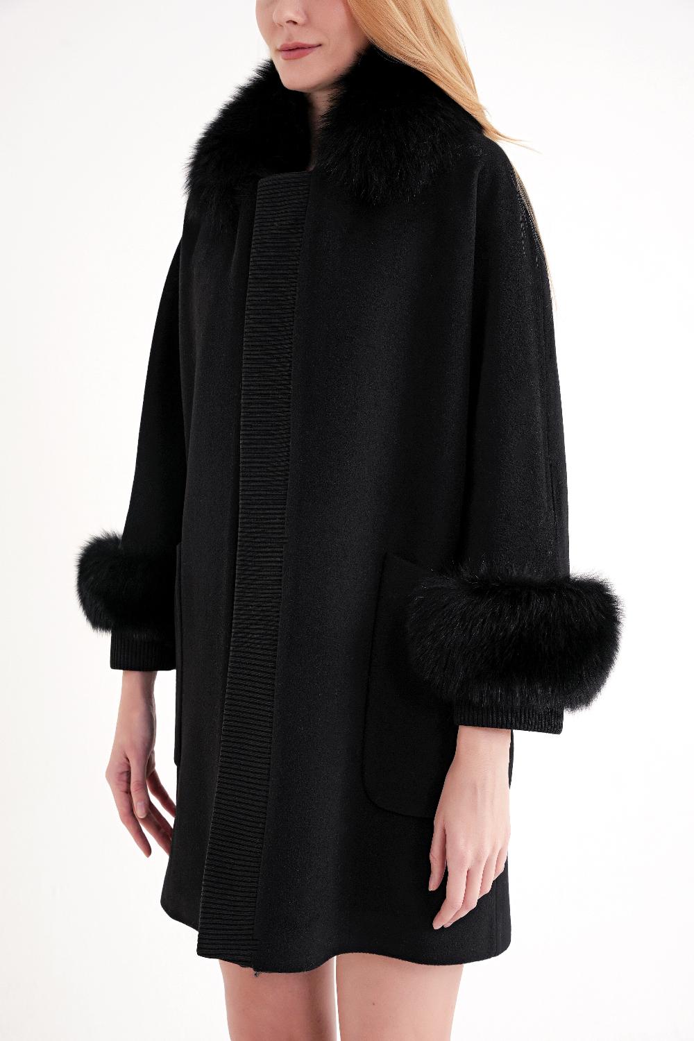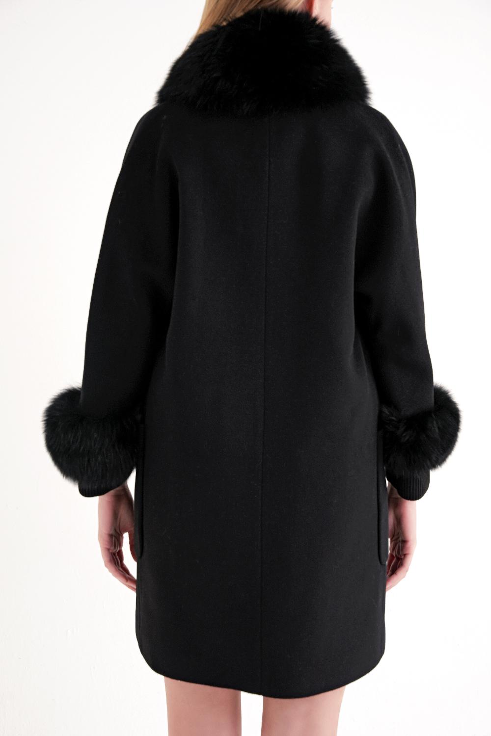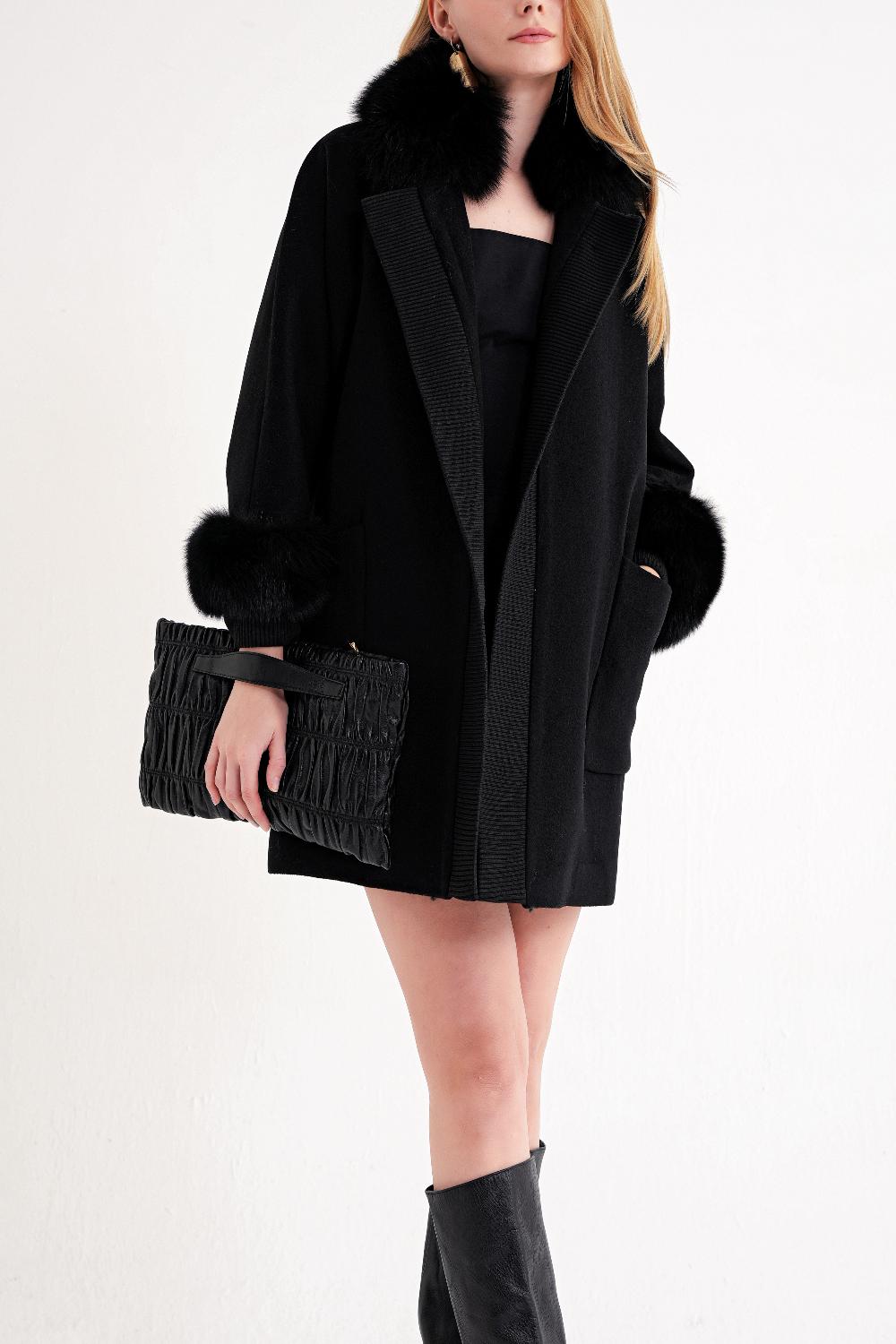 Black Wool coat with knitted details 30430