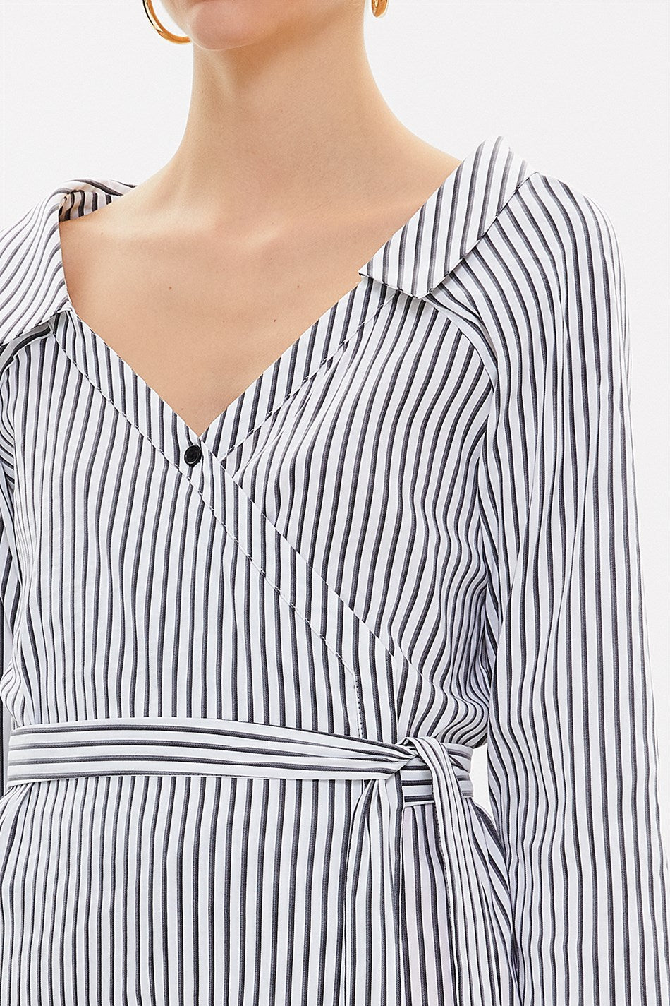 Black Wrap-over  poplin shirt  10674