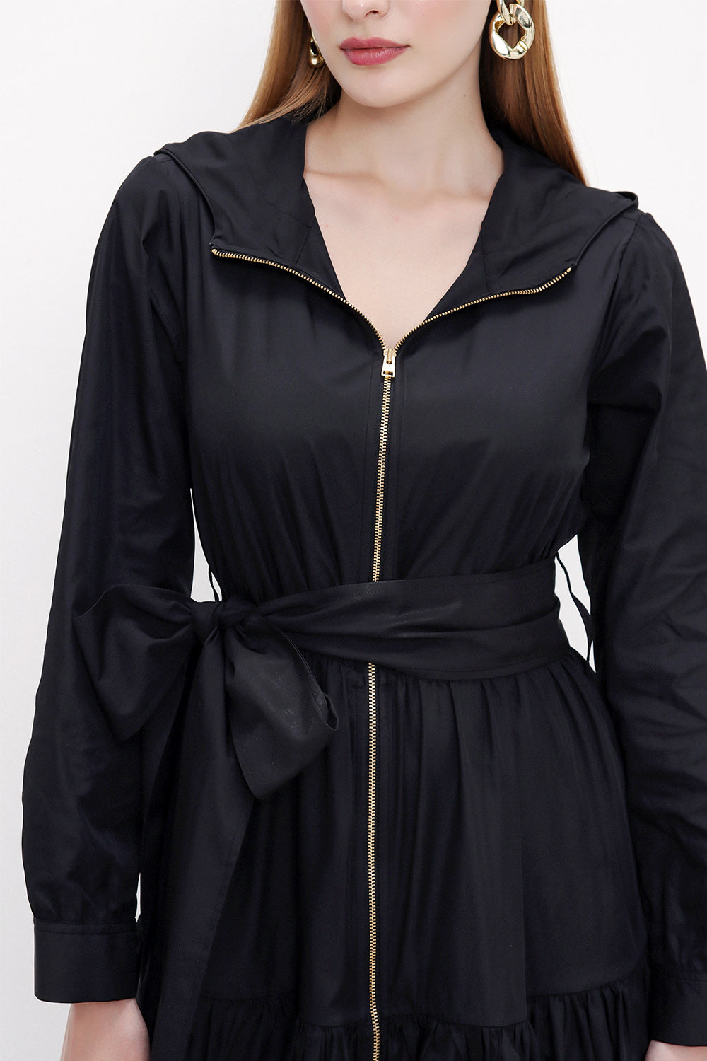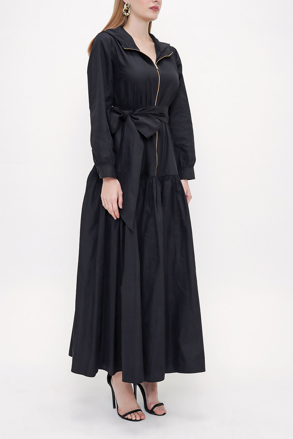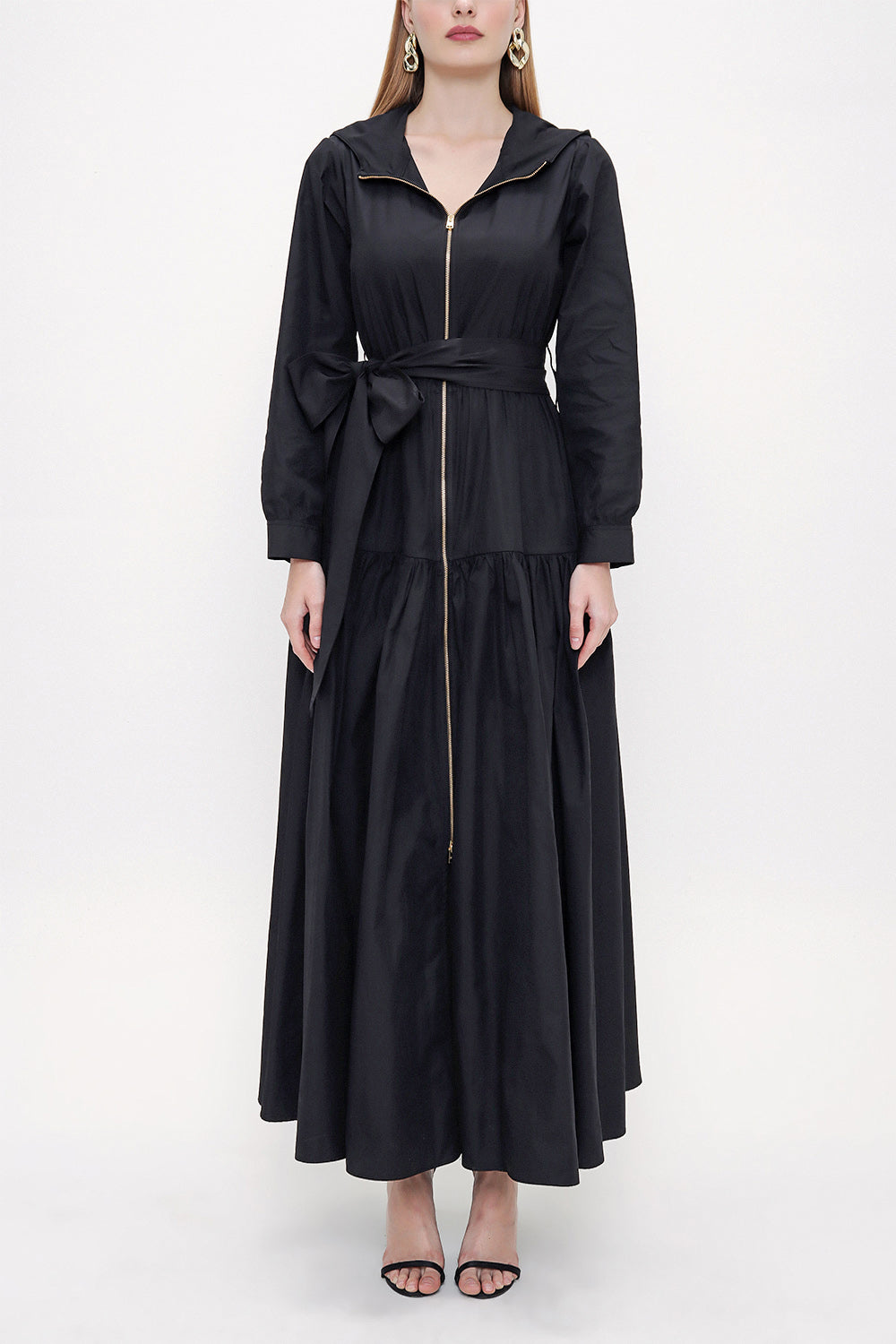 Black Zipped and hooded maxi dress 93821