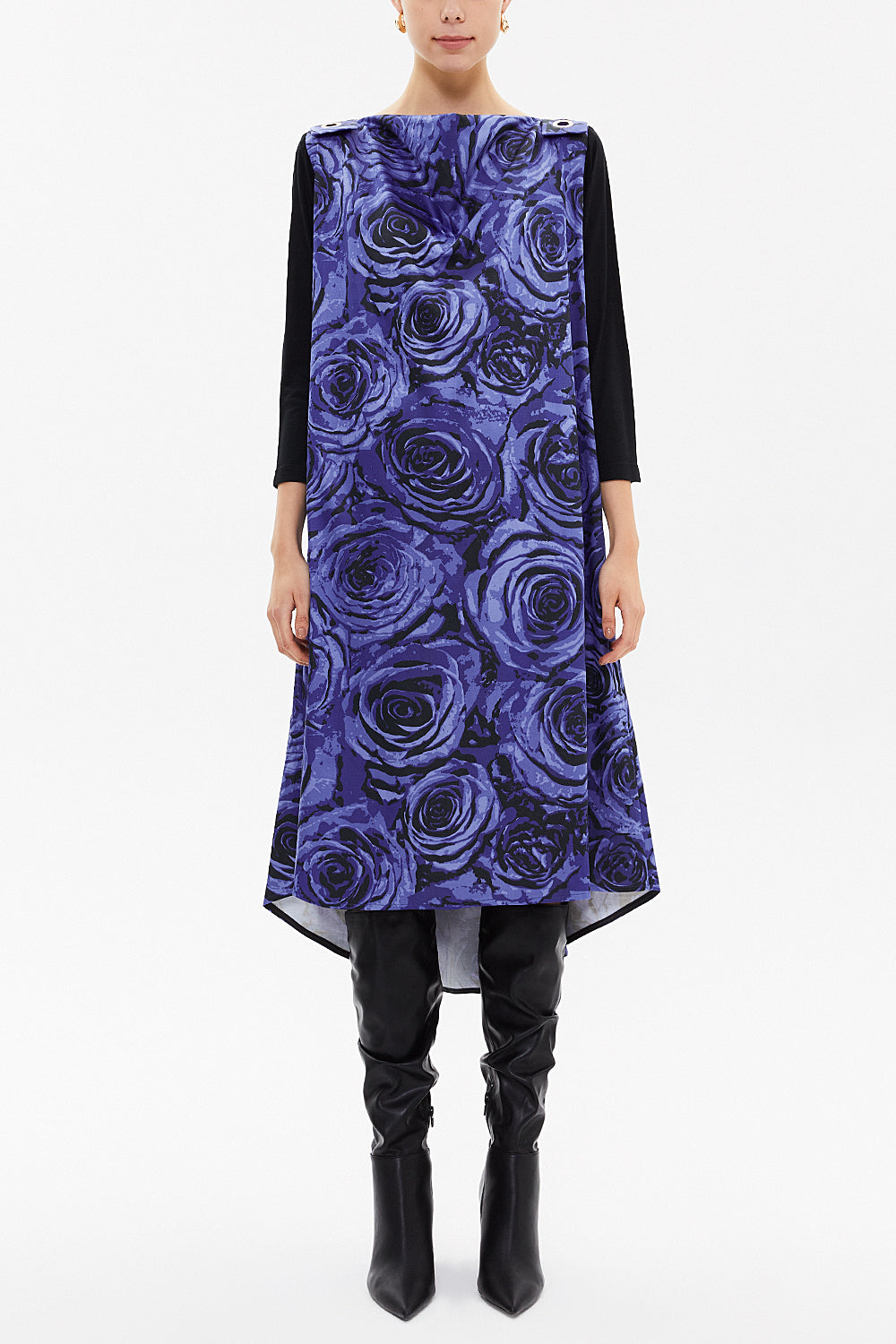 Blue Accessory detail Degage collar midi dress 91830