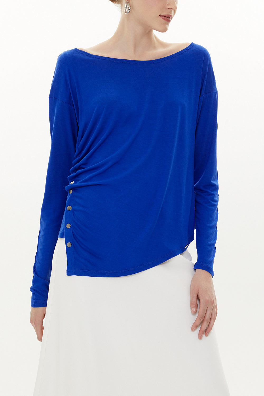 Blue Asymmetric snap fastener detail blouse 19818