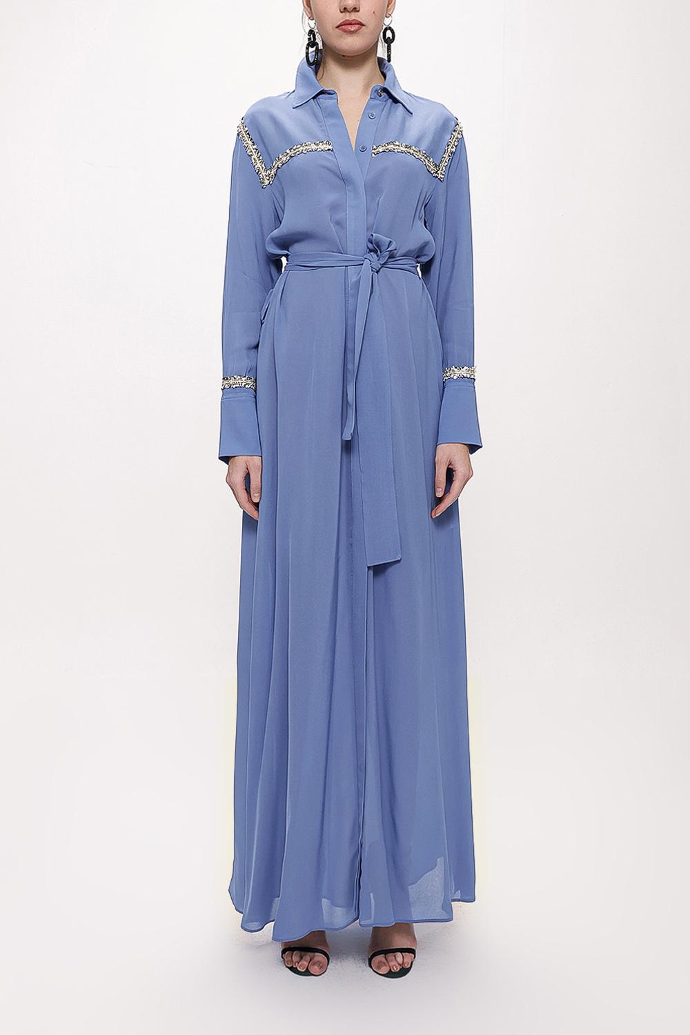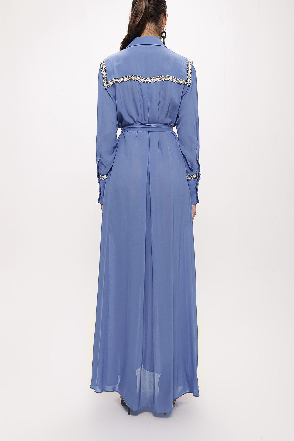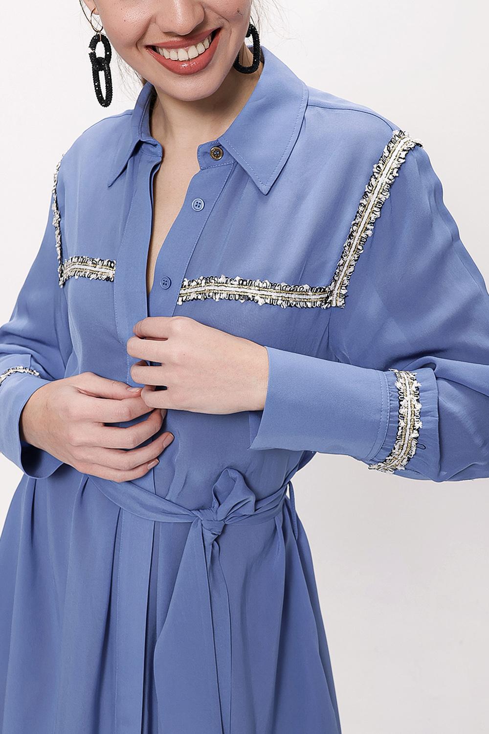 Blue Belted long shirt with ribbon accessories 94153