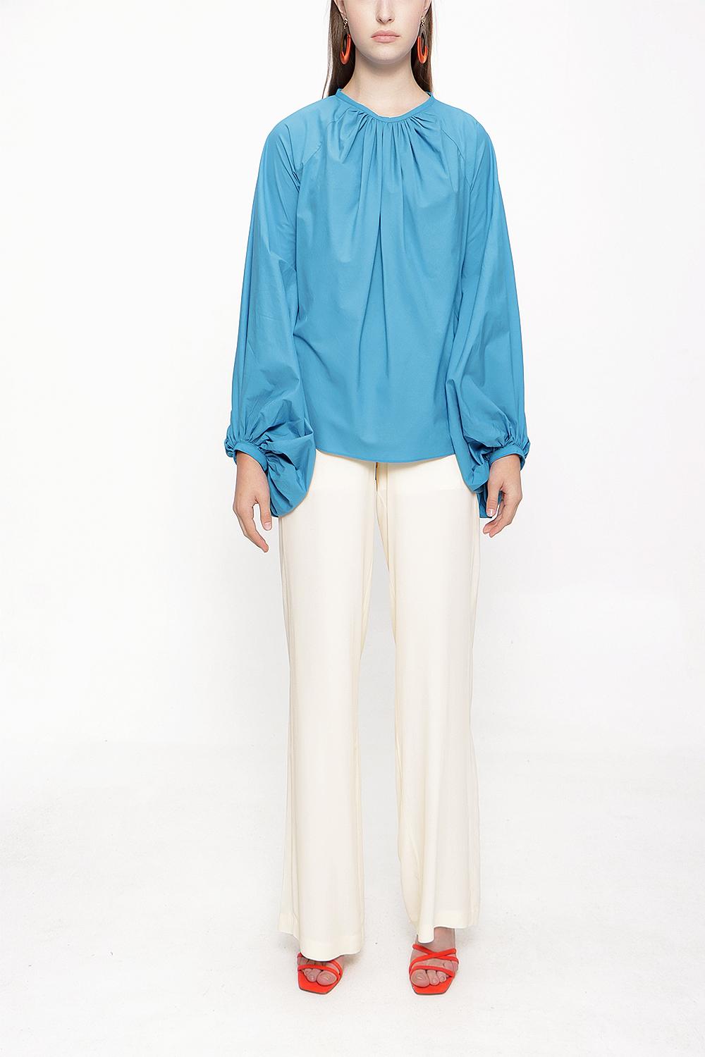 Blue Blouse with pleated sleeves 19833