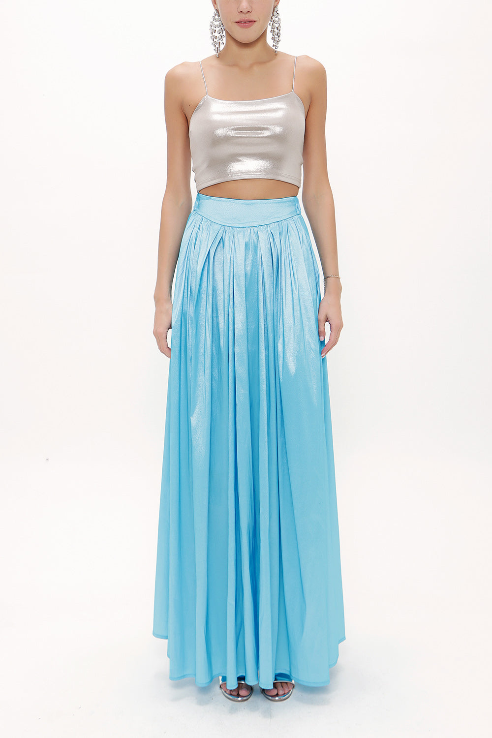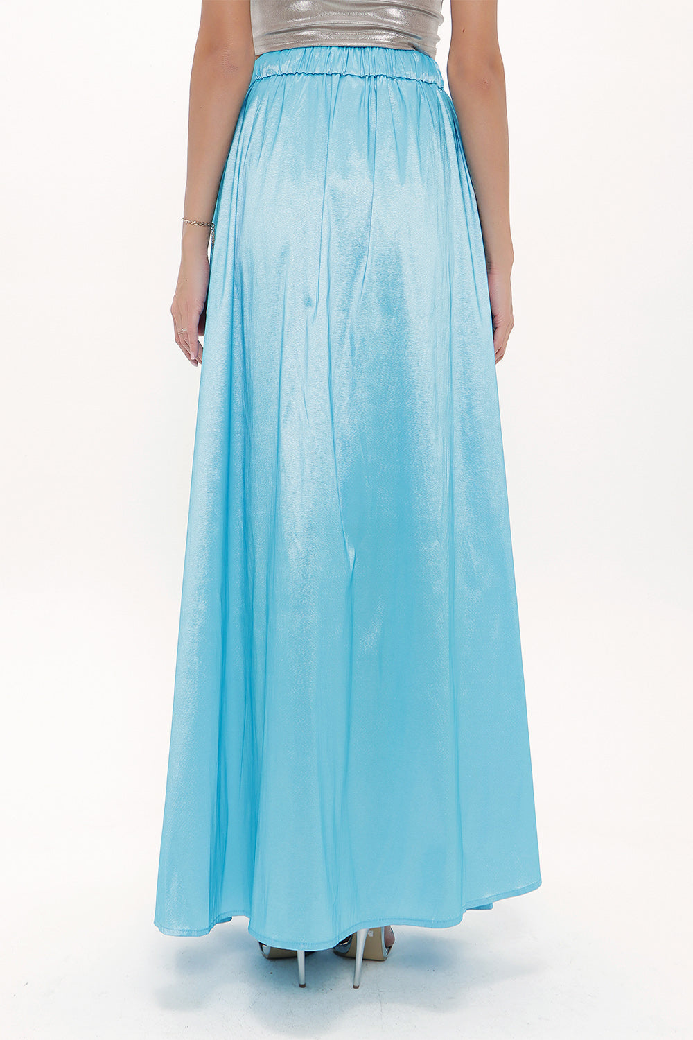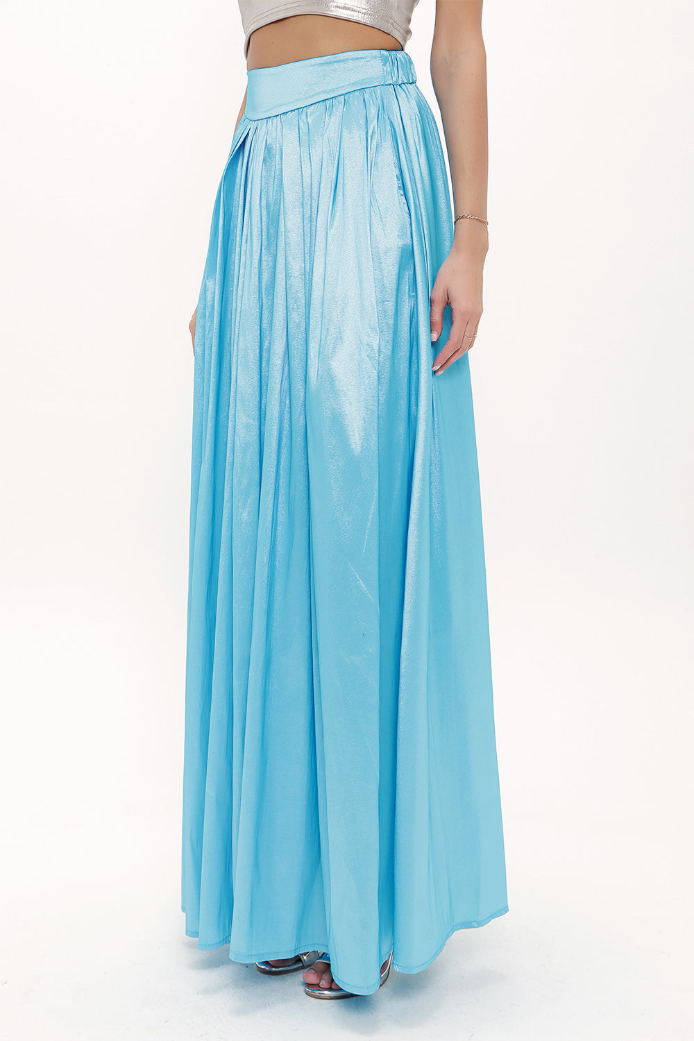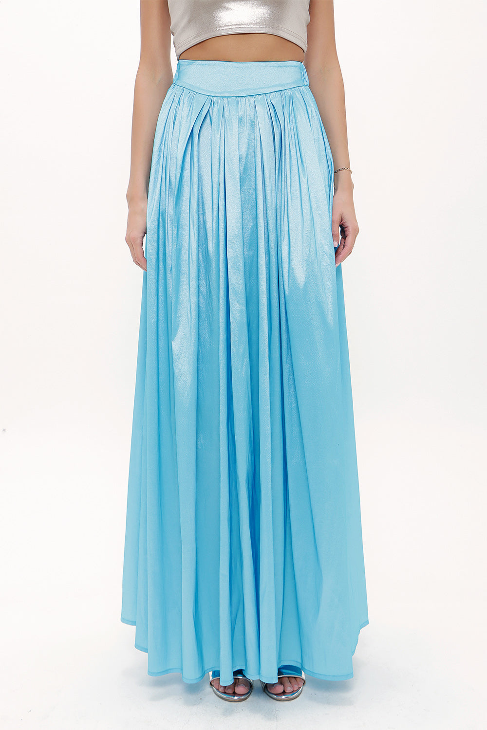 Blue Elastic and Pleated maxi skirt 81072