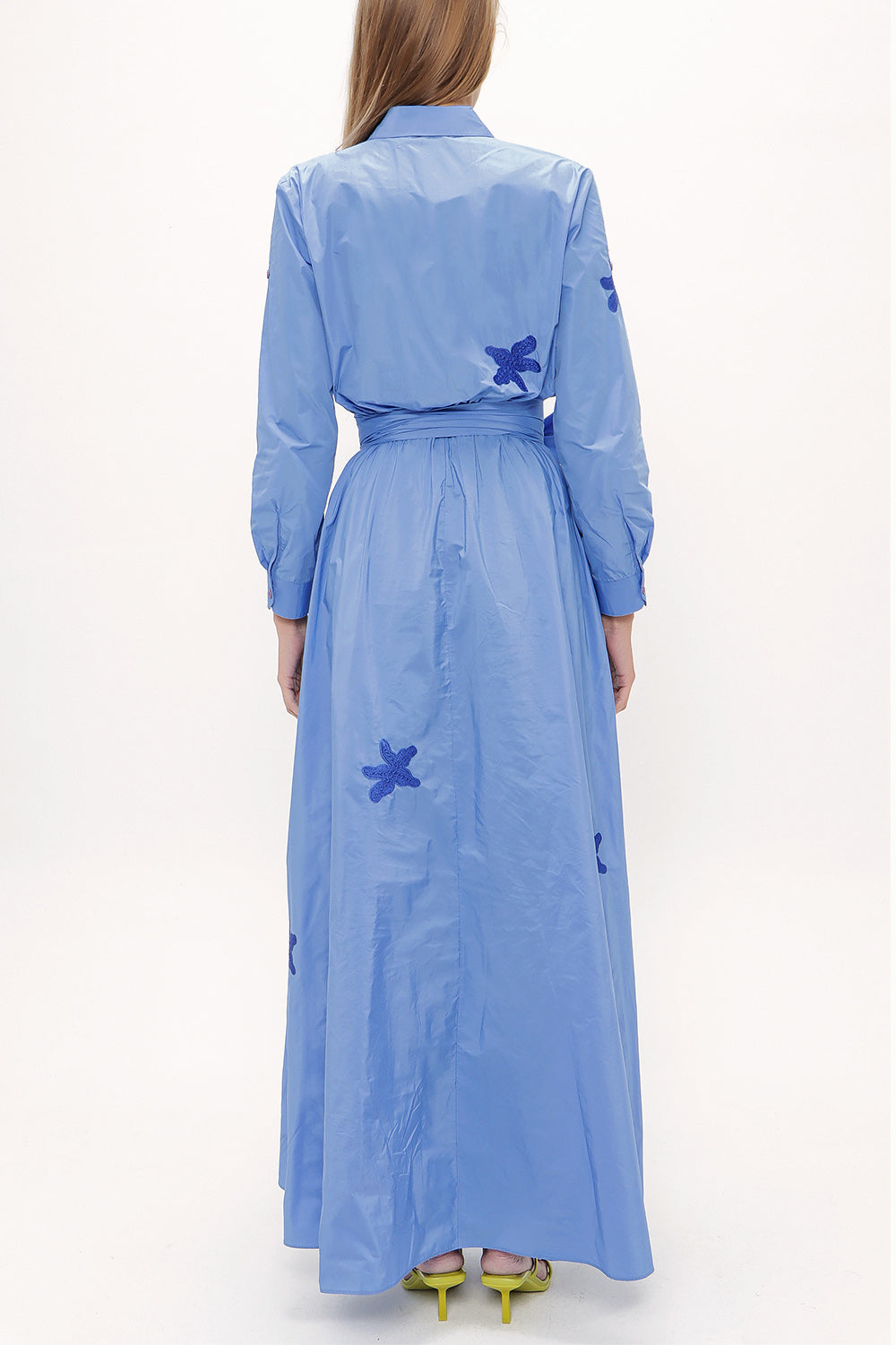 Blue Embroidered, lace-up Pleated maxi dress 92917
