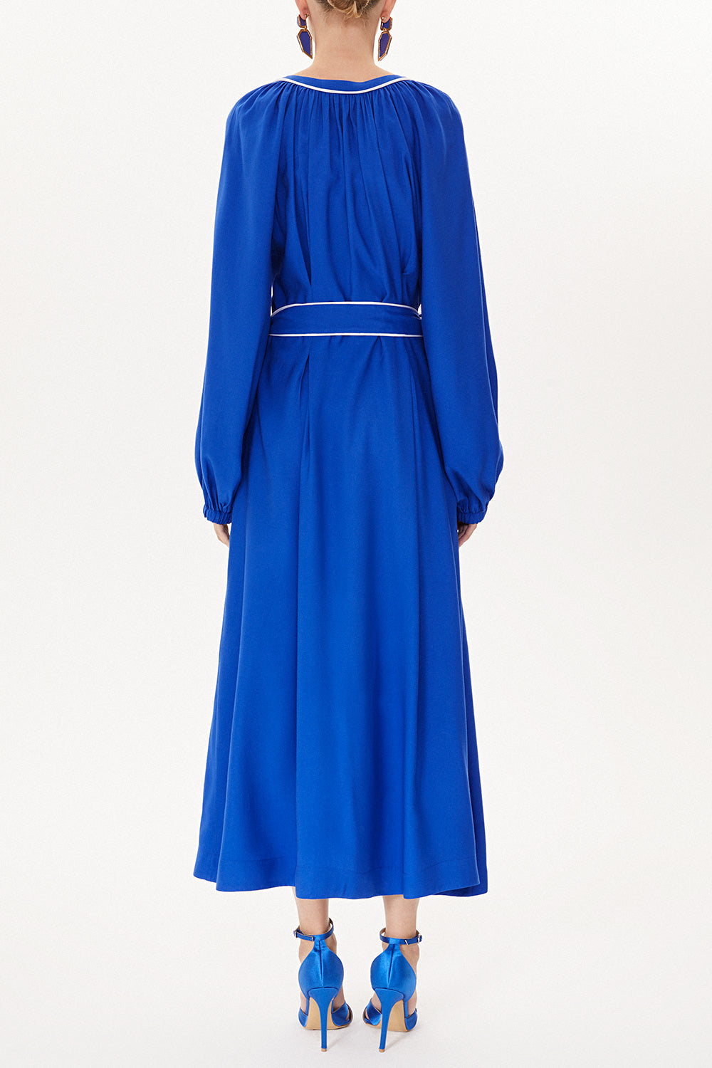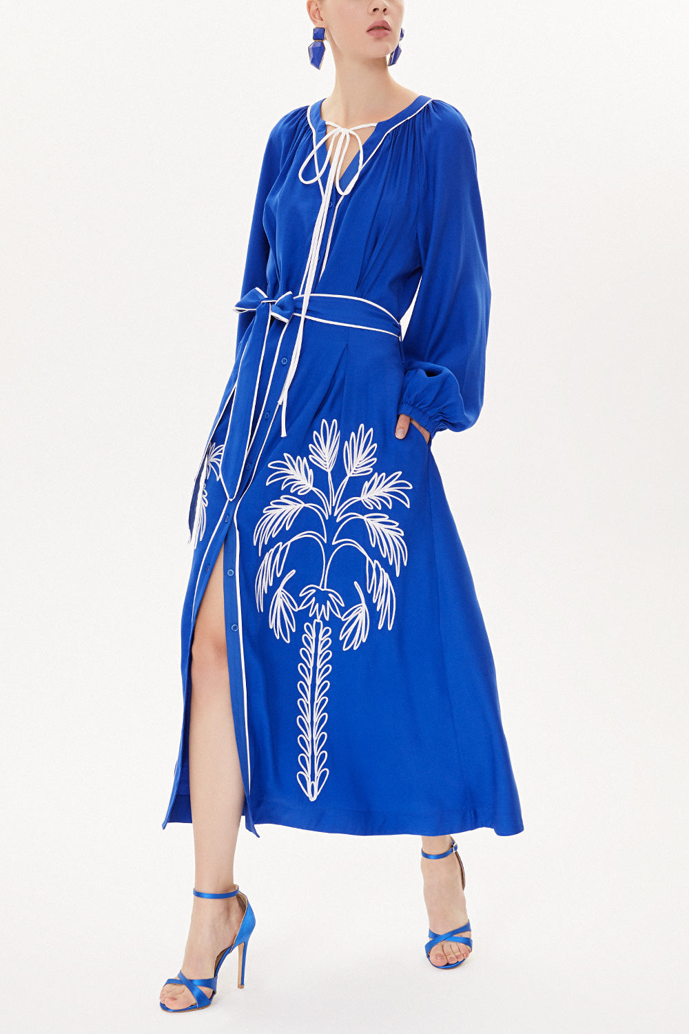 Blue Embroidery detail long sleeve dress 93438