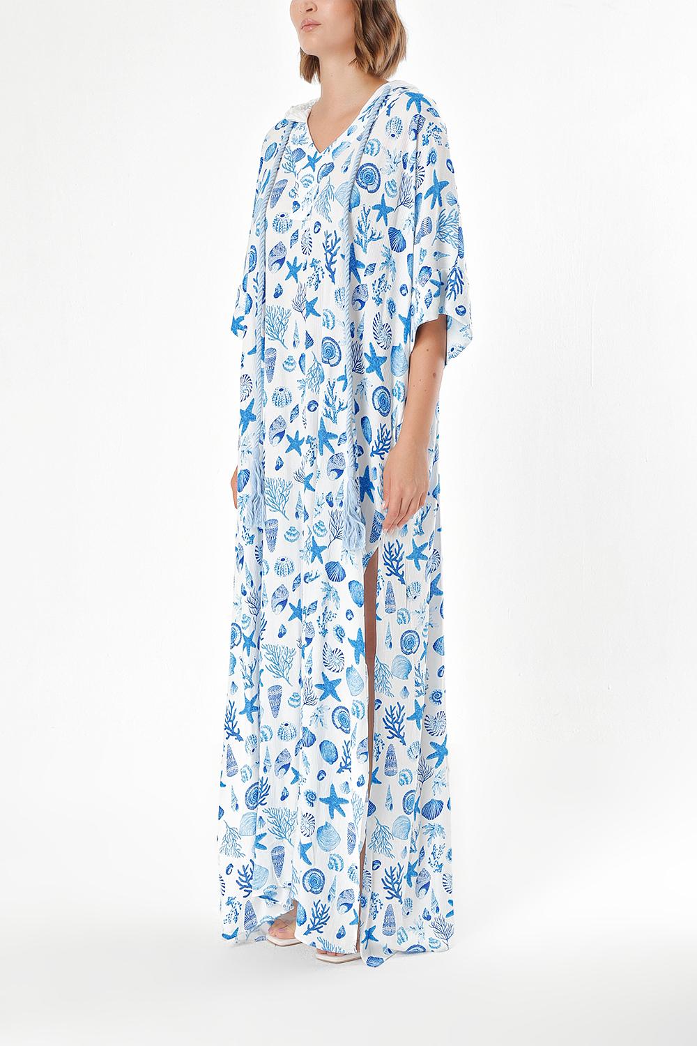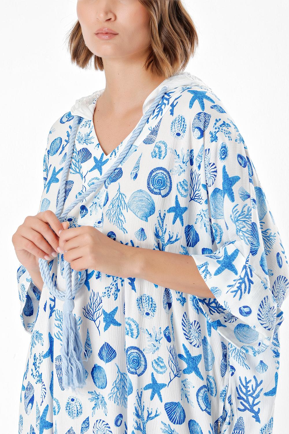 Blue Hooded loose-fitting dress 94028