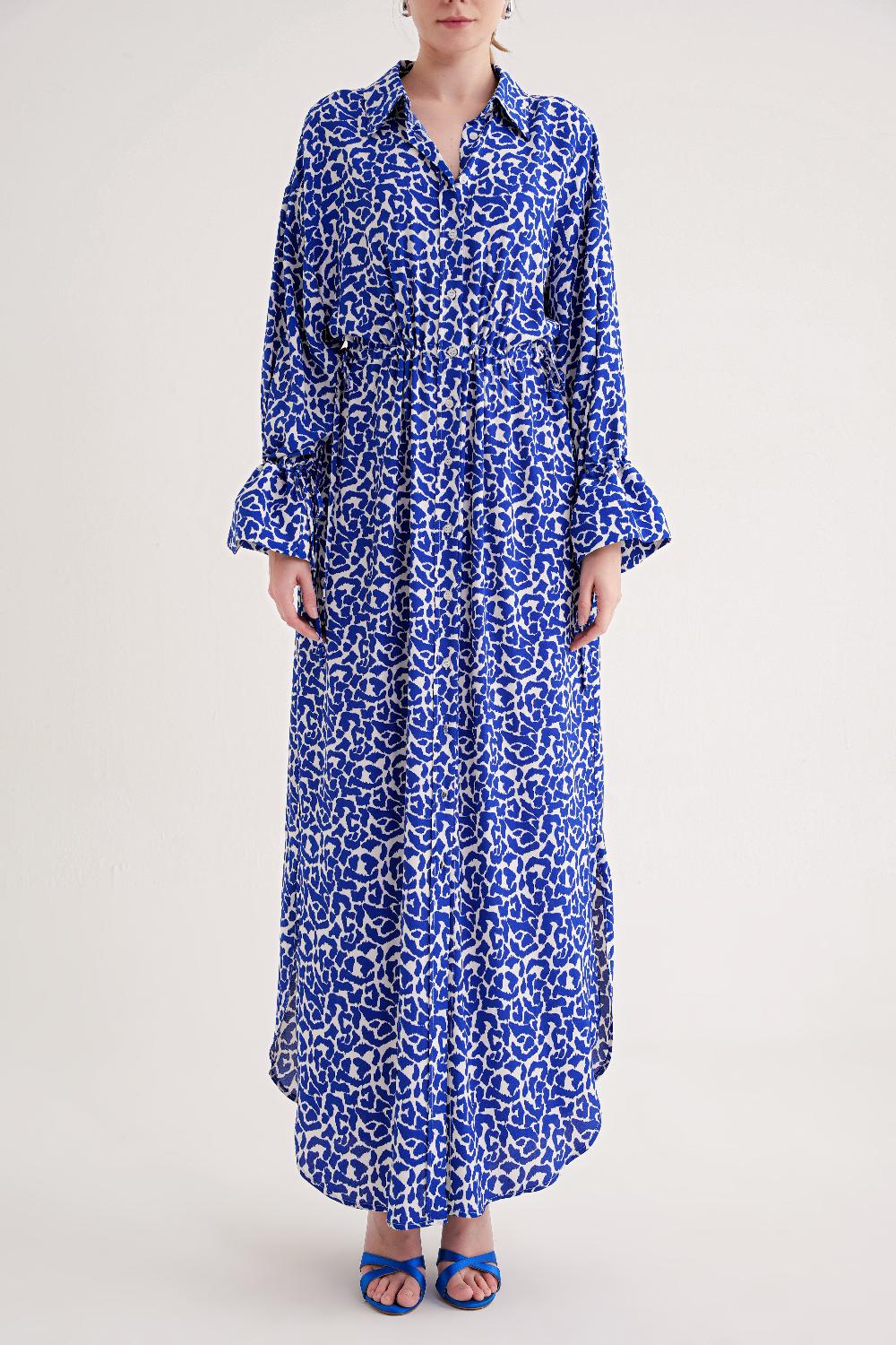 Blue Lace detailed shirt dress 94564