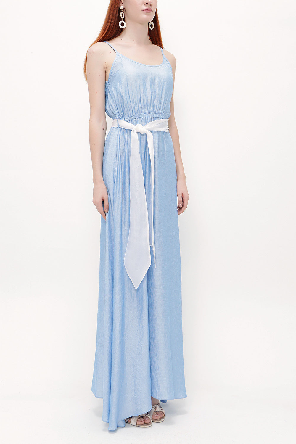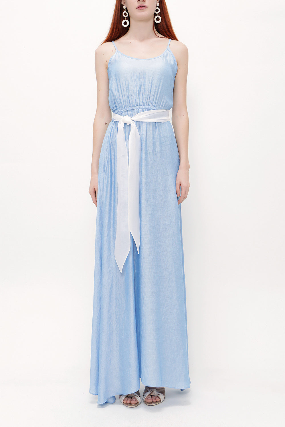 Blue Lace-up spaghetti straps maxi dress 92378