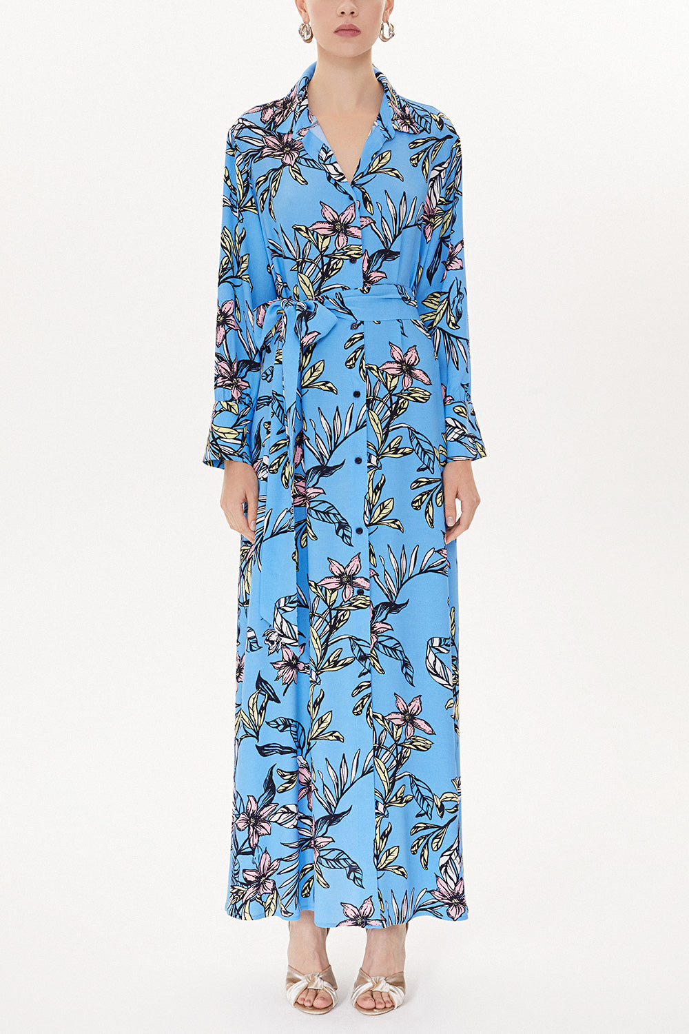 Blue Patterned Wide cut shirt dress 93481