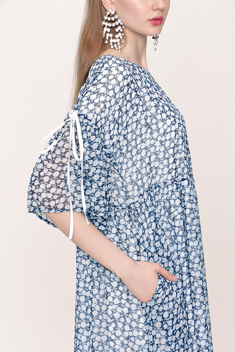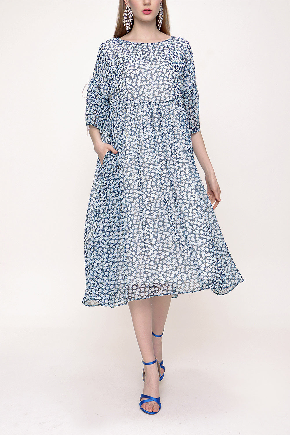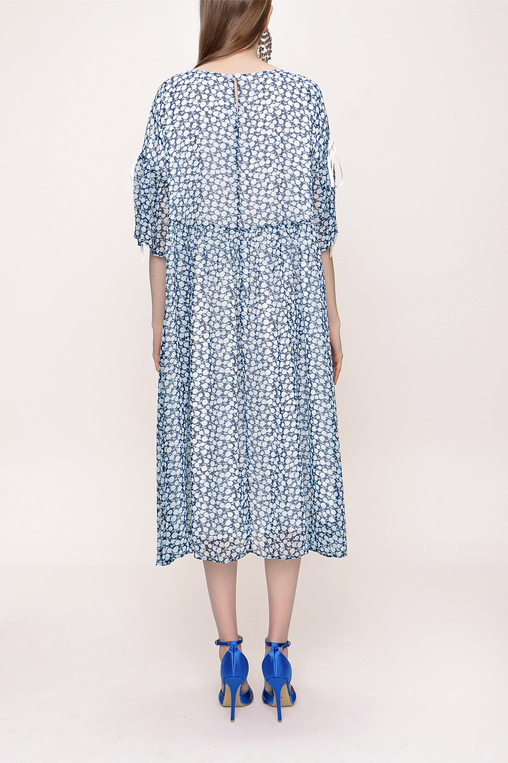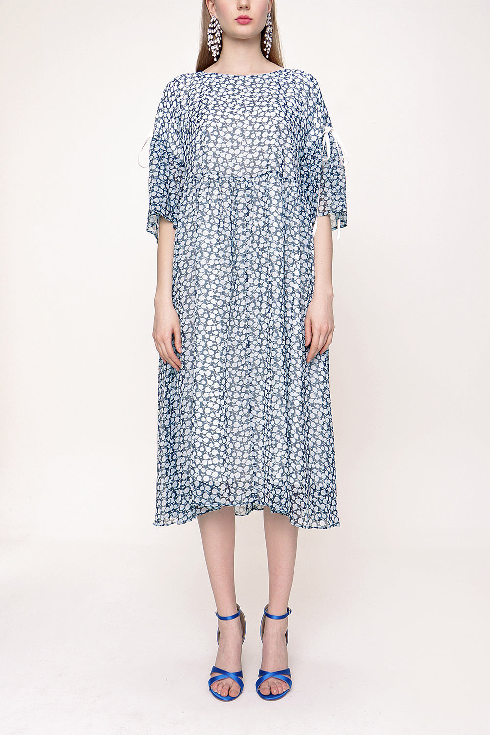 Blue Pleated loose-fitting bow dress 93392