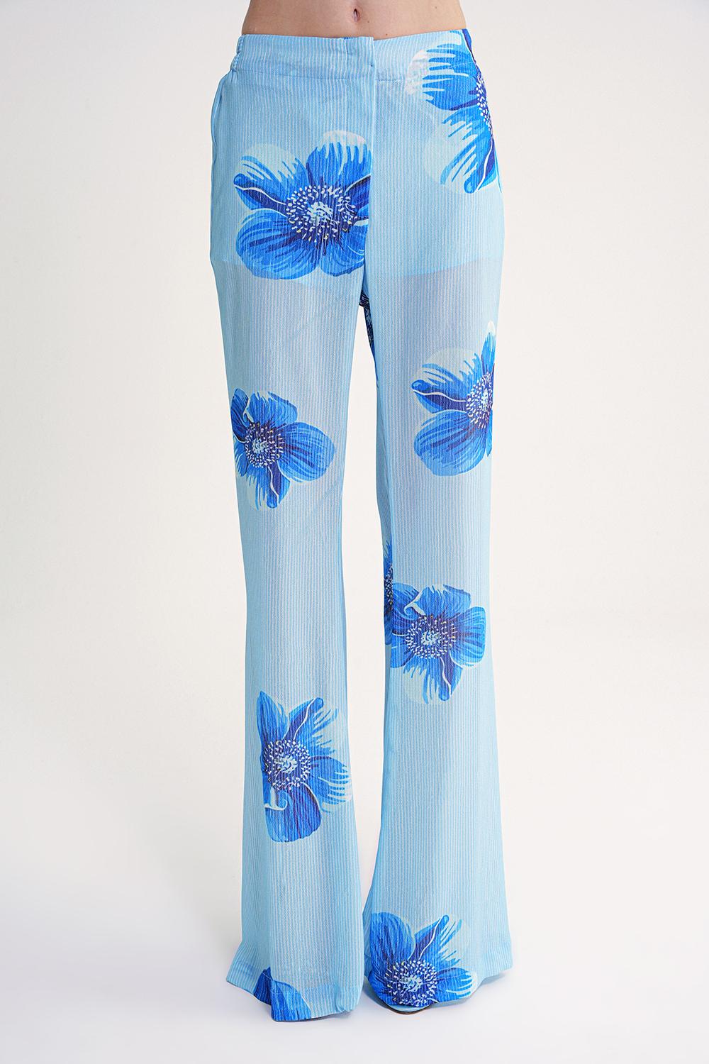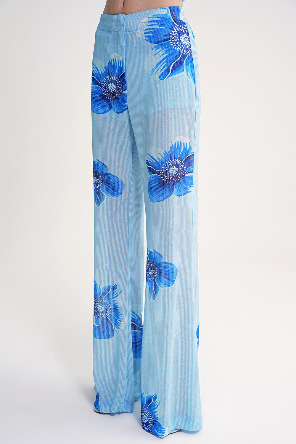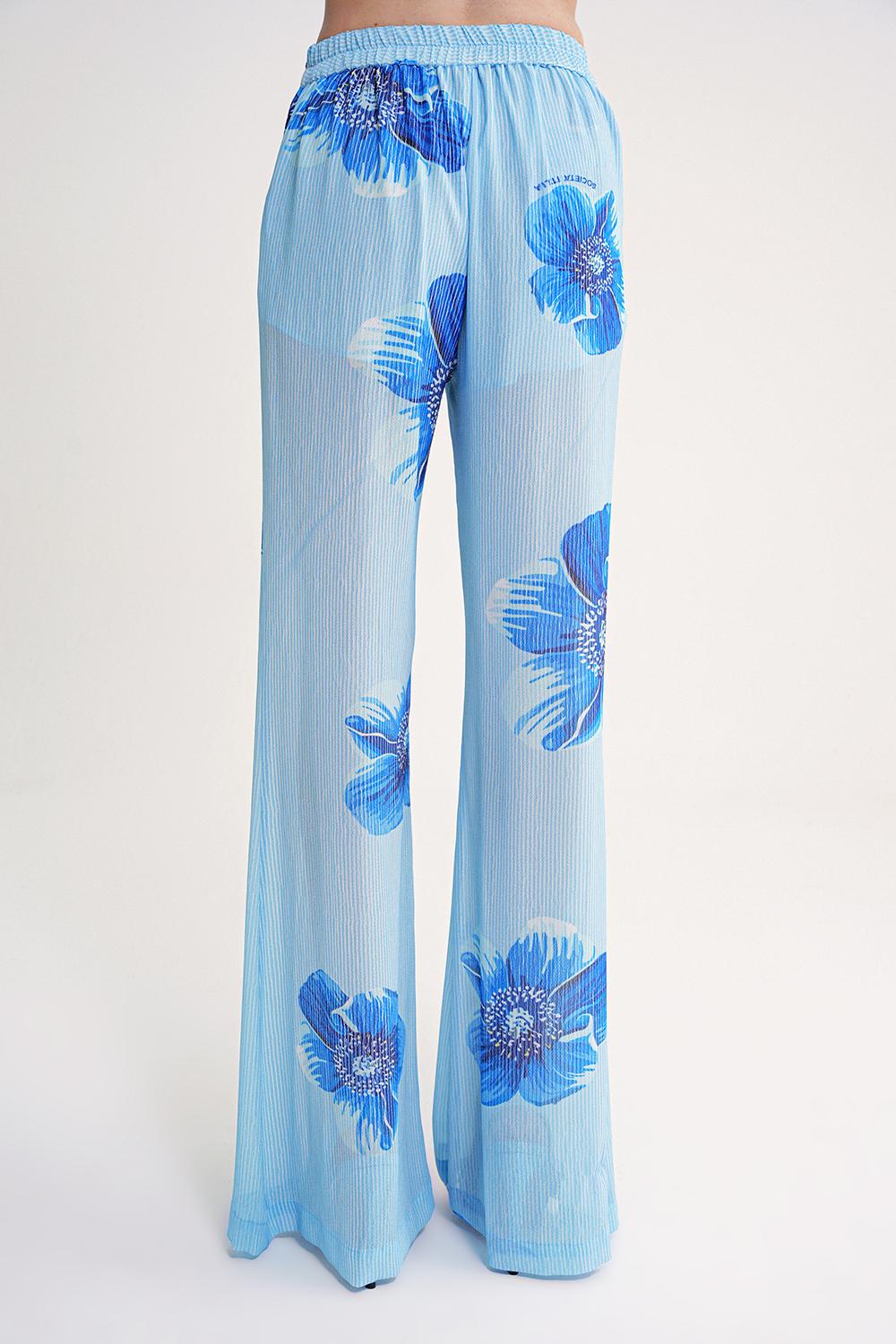 Blue Pleated wide leg trousers with elastic waist 41649