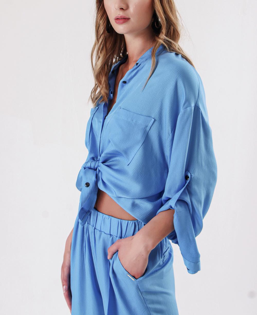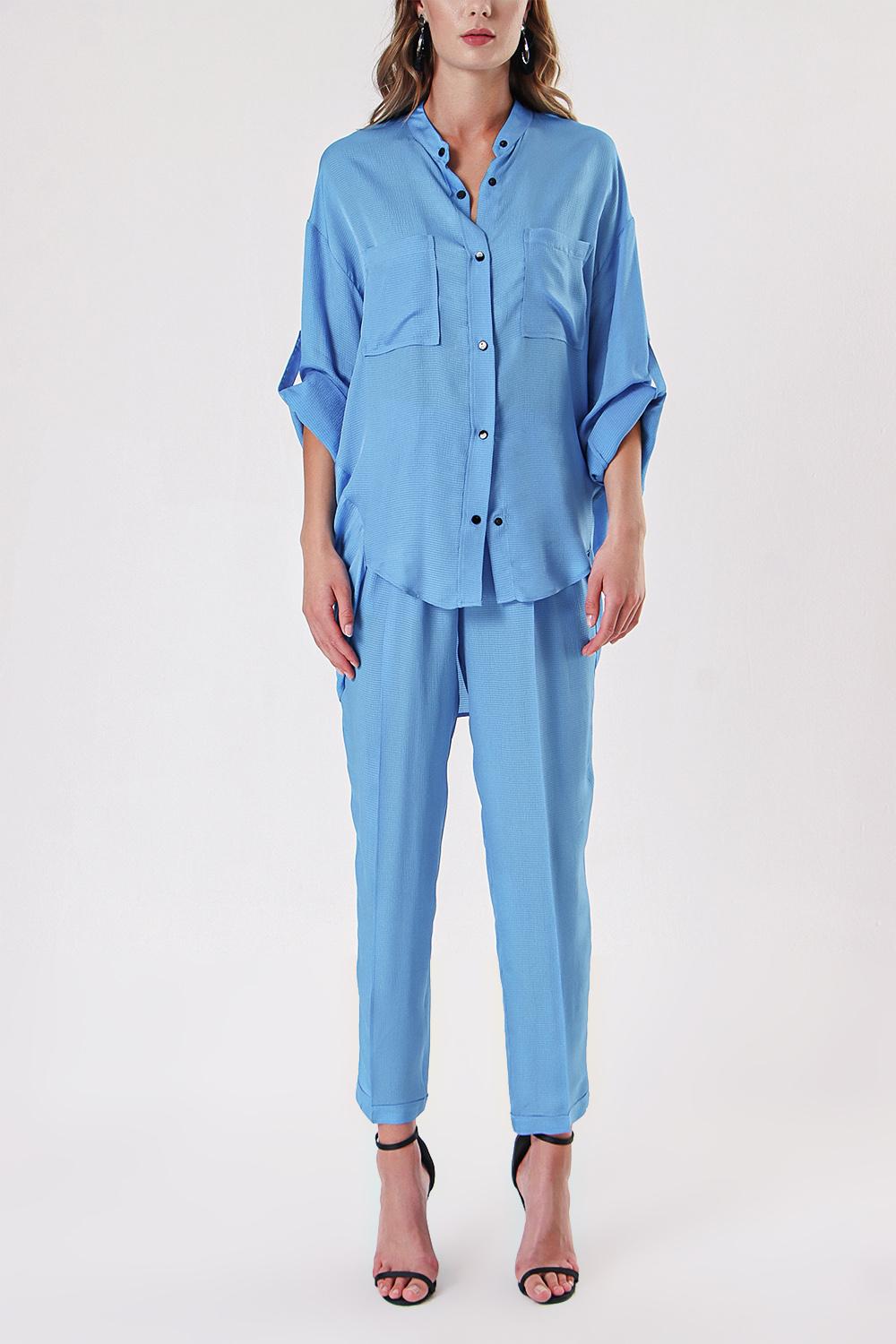 Blue Suit with loose-fitting shirt and trousers with elastic waist 12308