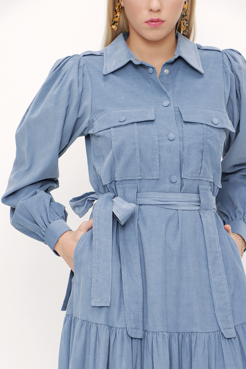 Blue Wide cut pleated dress 93756