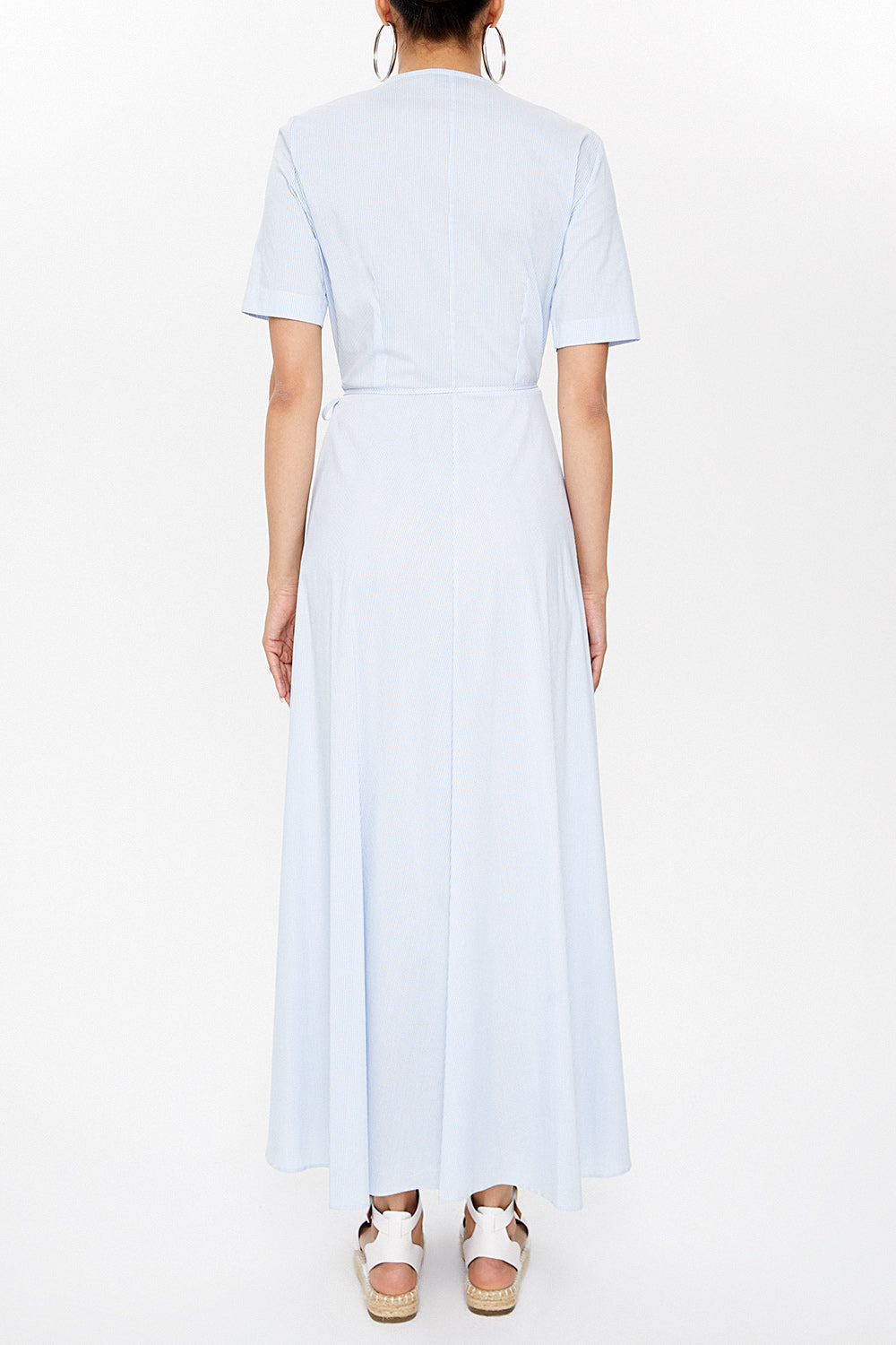 Blue Wrap-over tie embroidered maxi dress 92901
