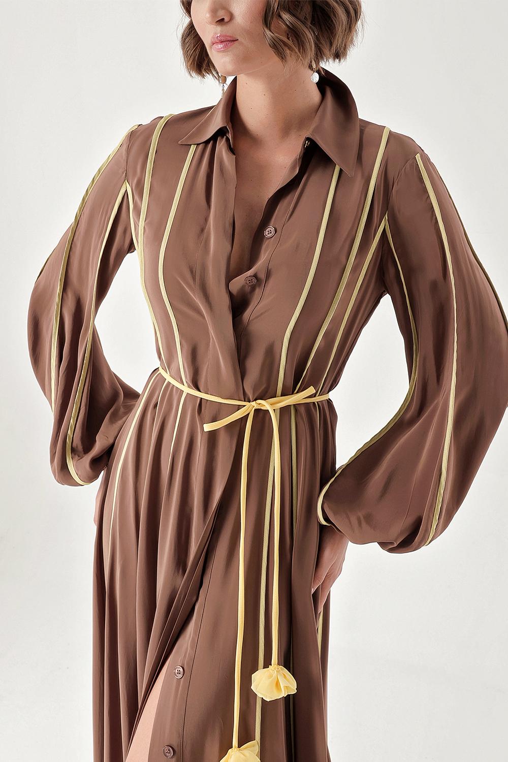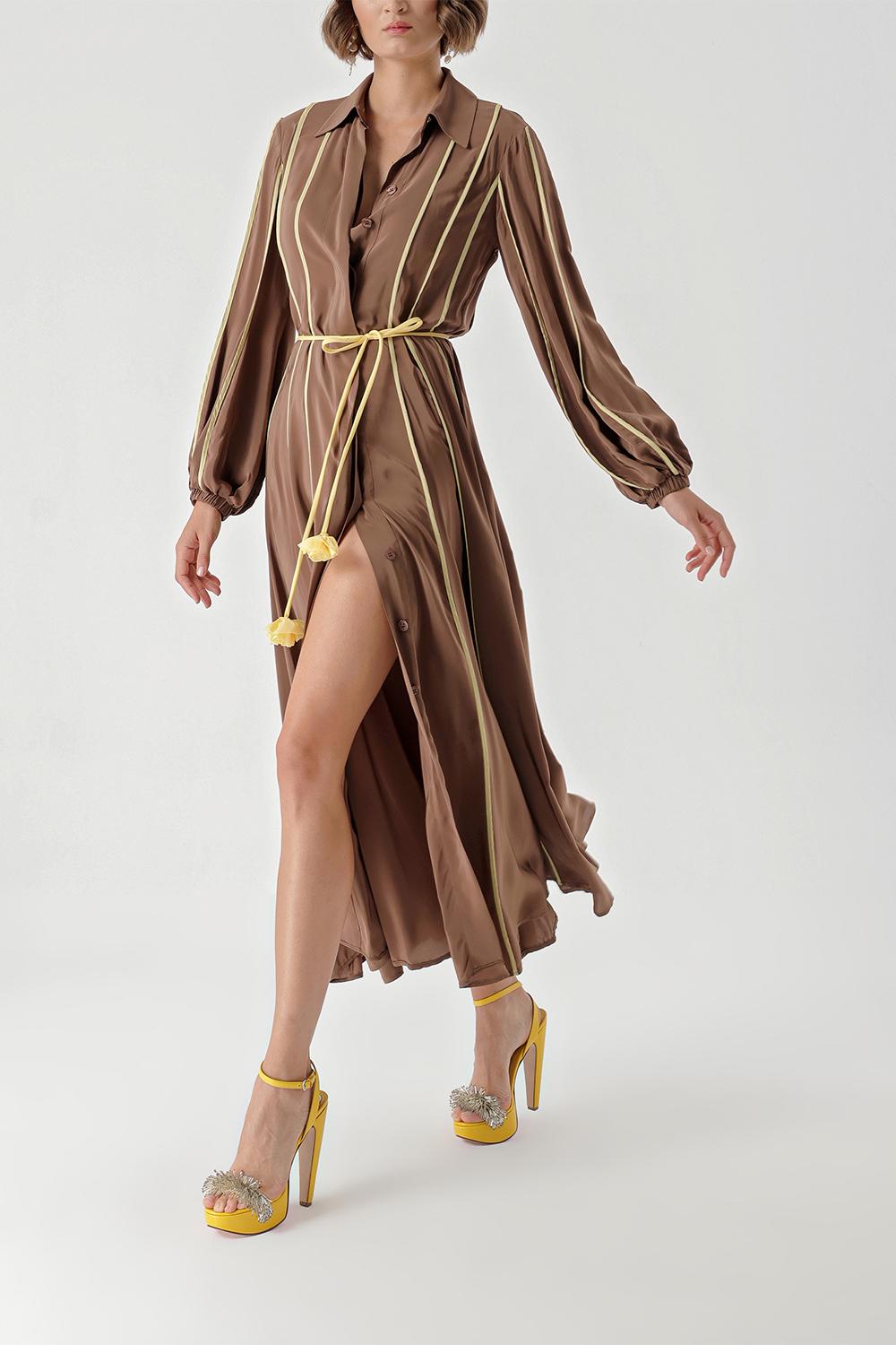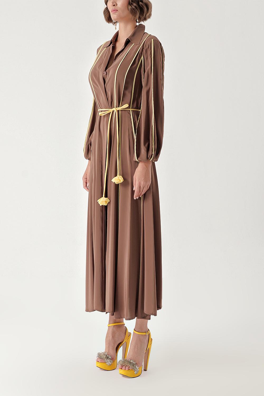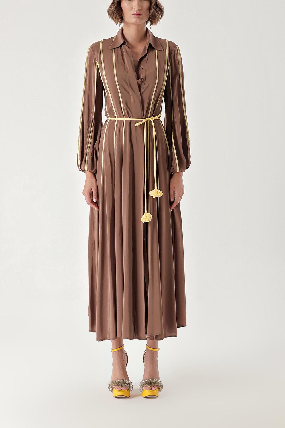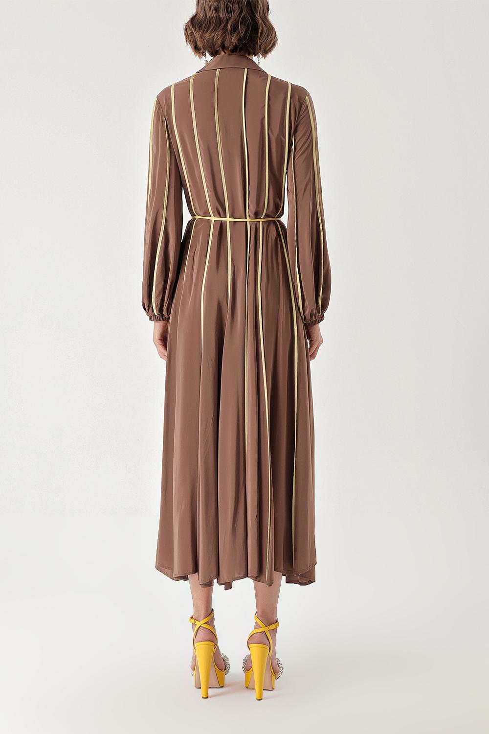 Brown Long dress with piping 94321