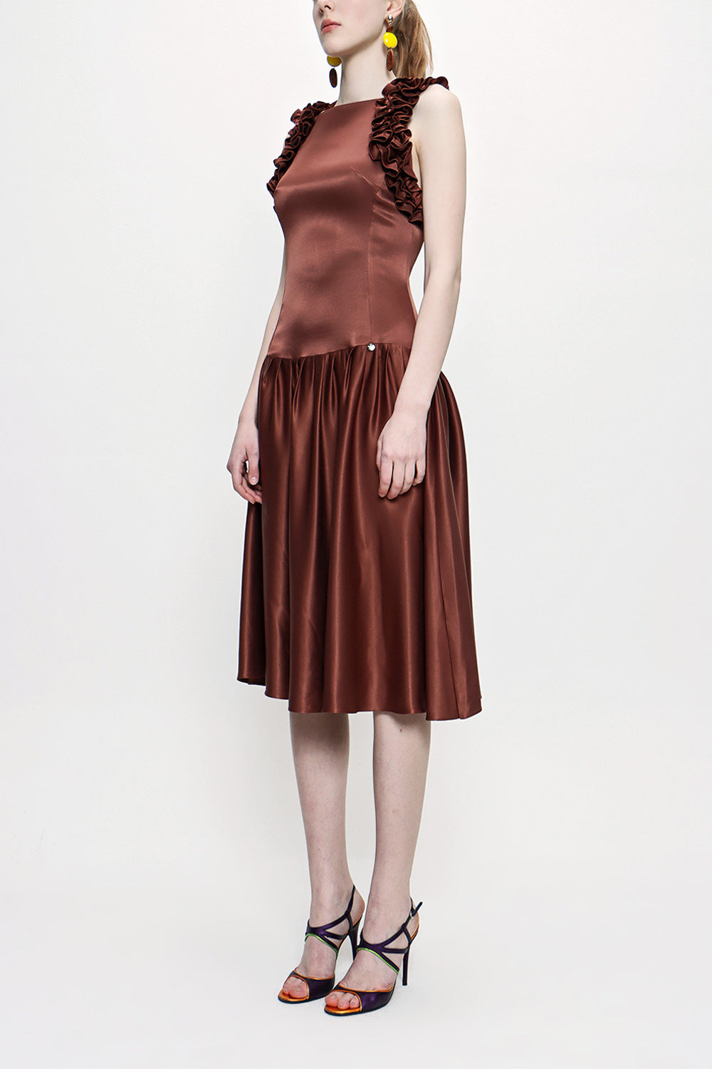 Brown Sleeveless slim fit dress 93901