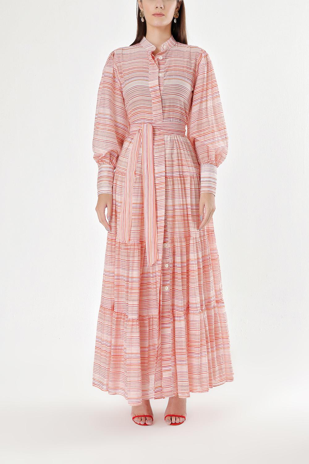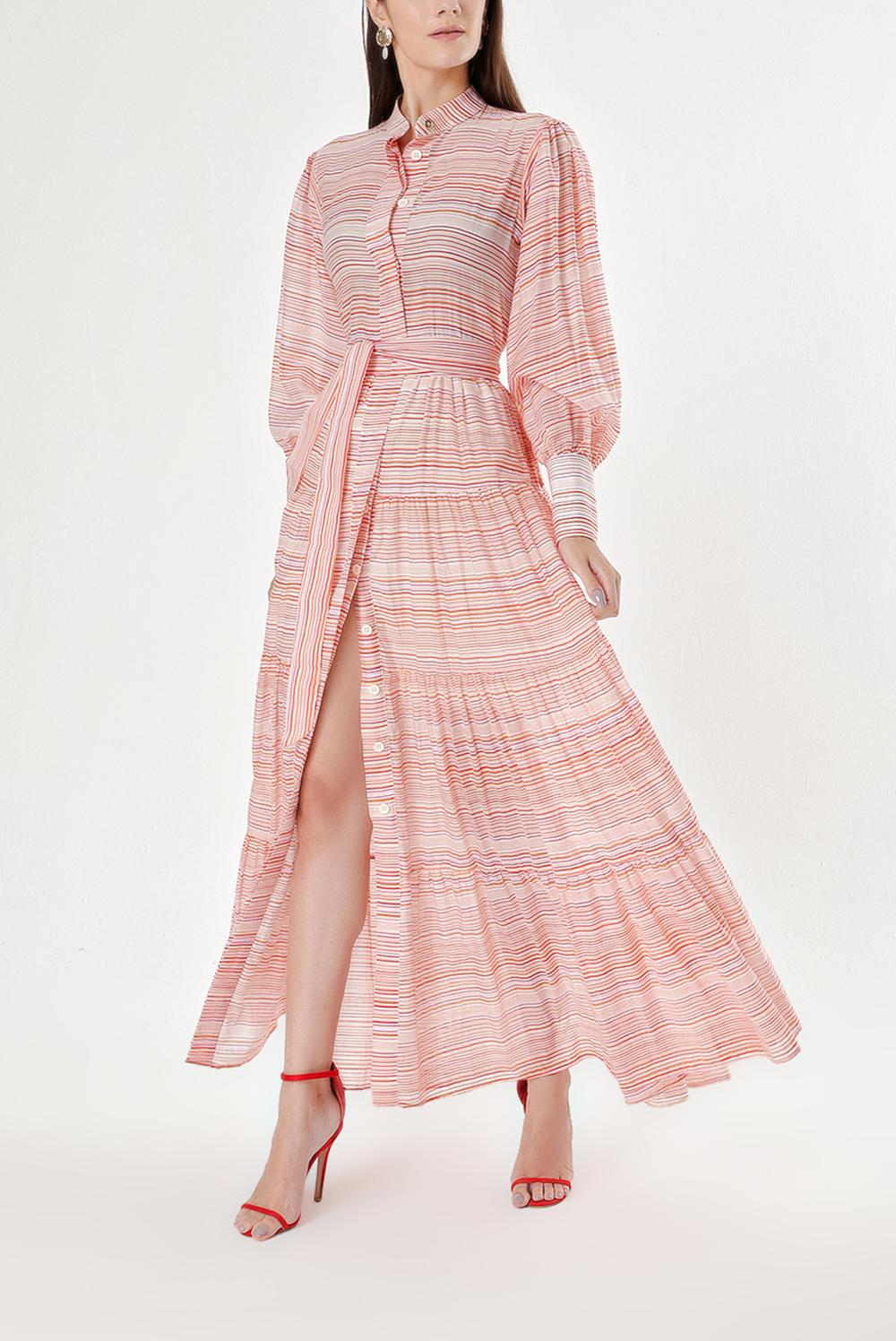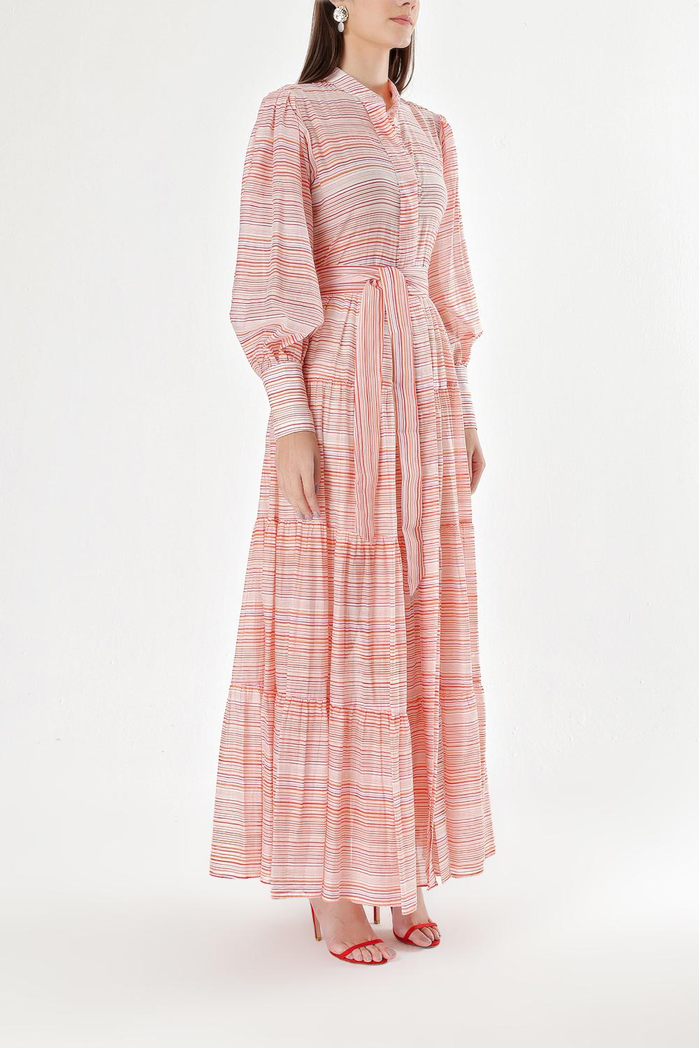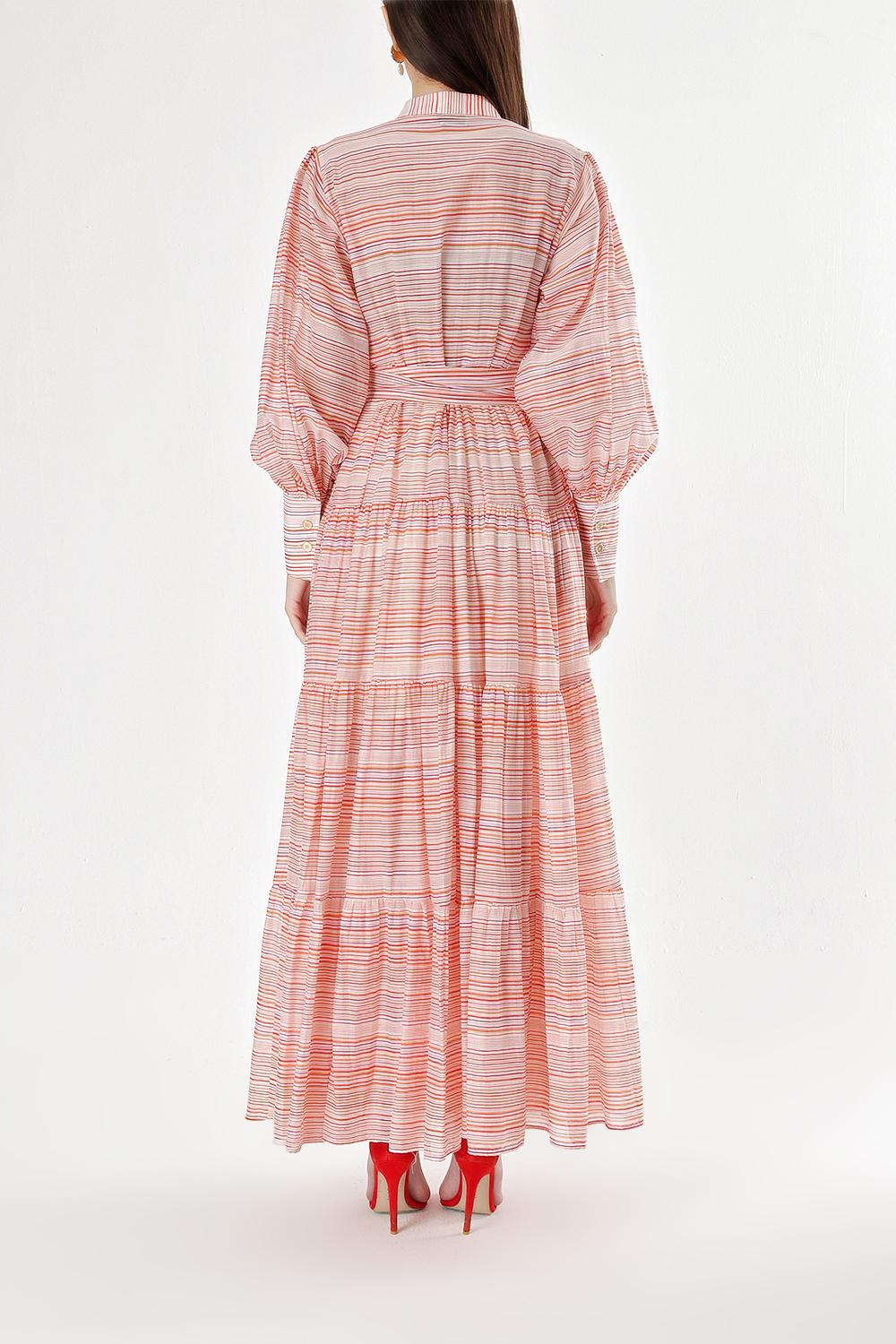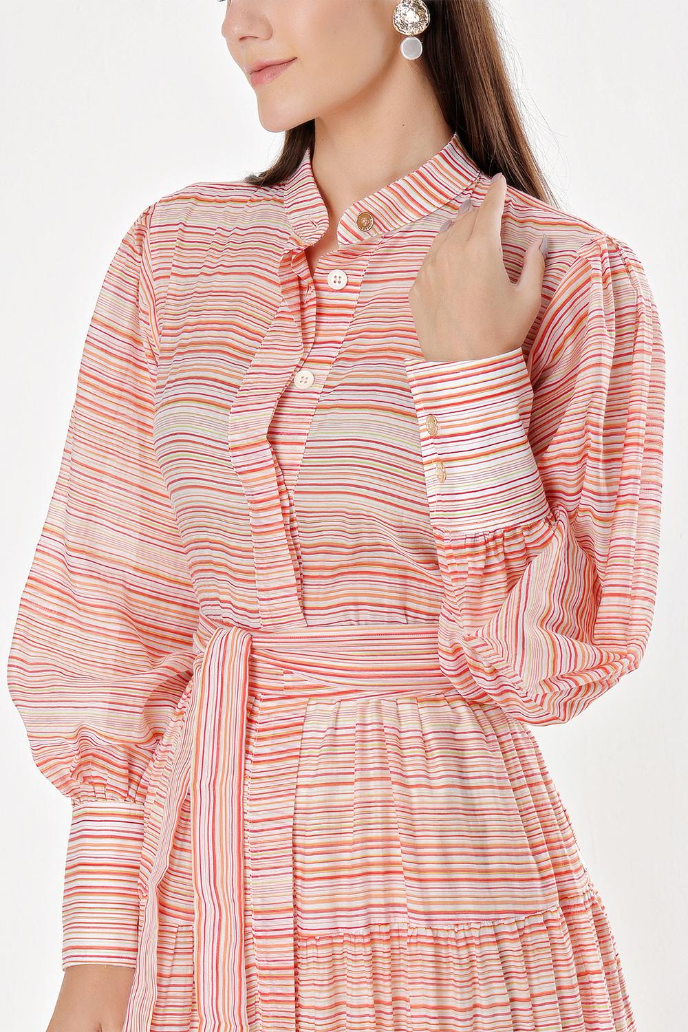 Burgundy Balloon sleeve ruffled shirt dress 94301