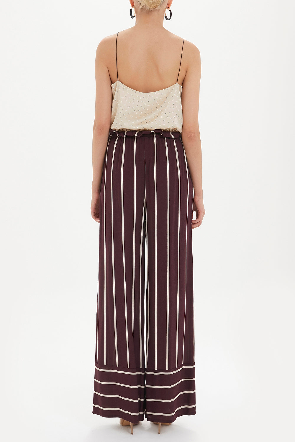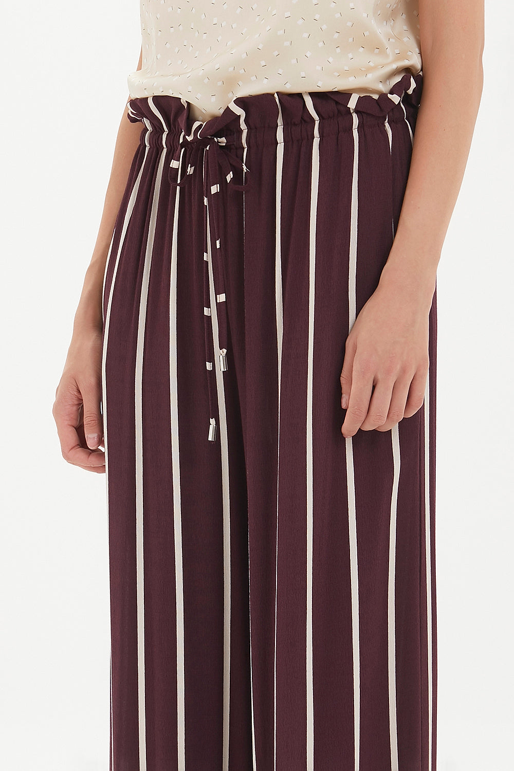 Burgundy High waist striped wide cut pants 41303