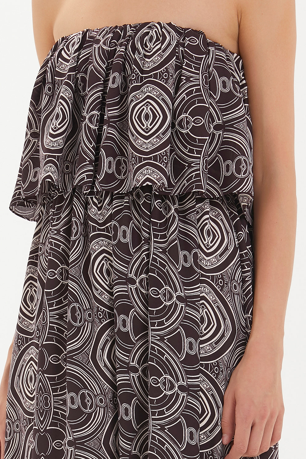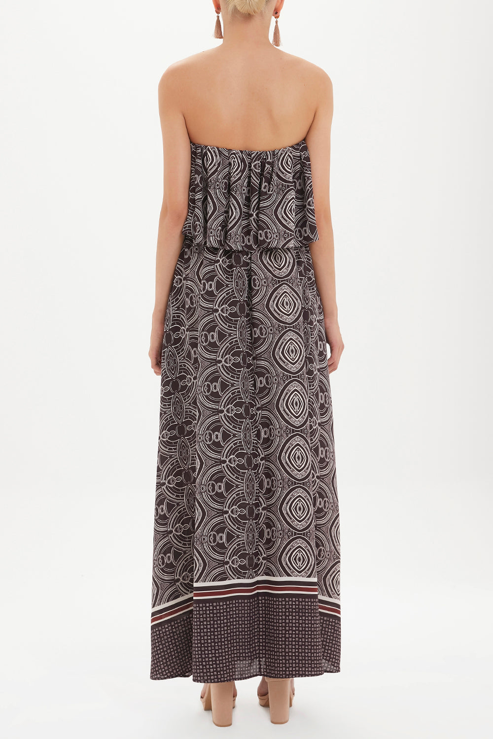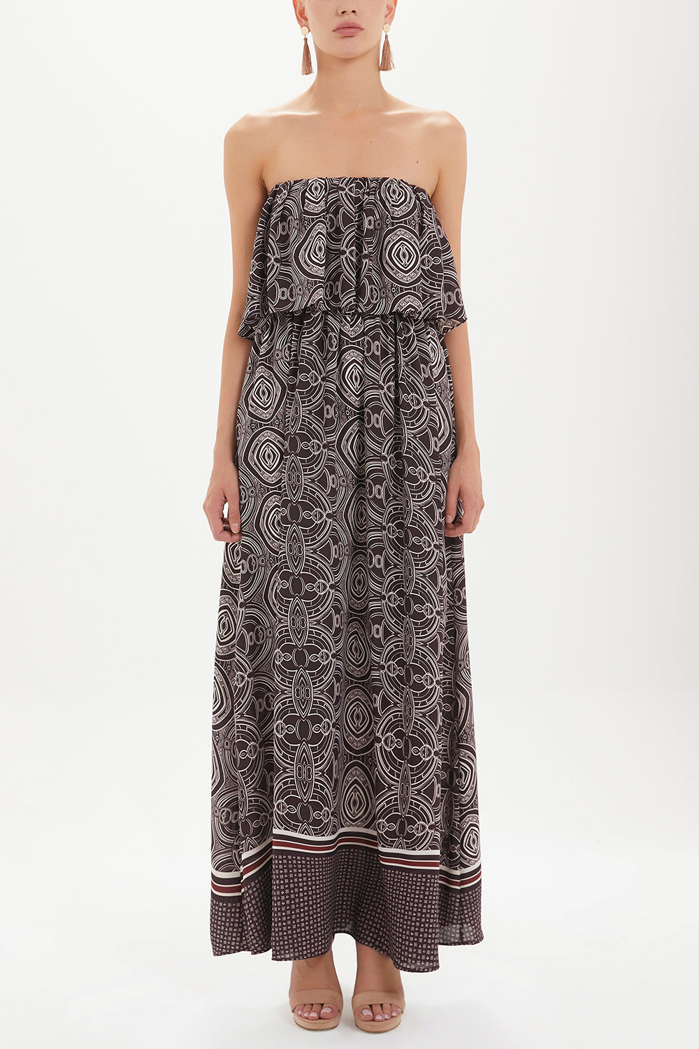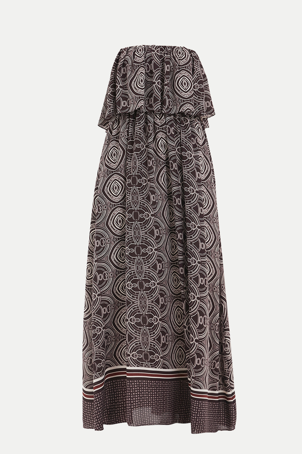 Burgundy Strapless ruffled maxi dress 92331
