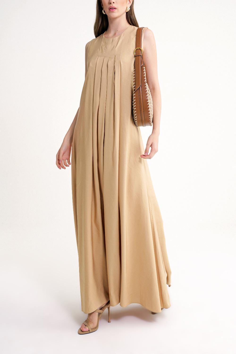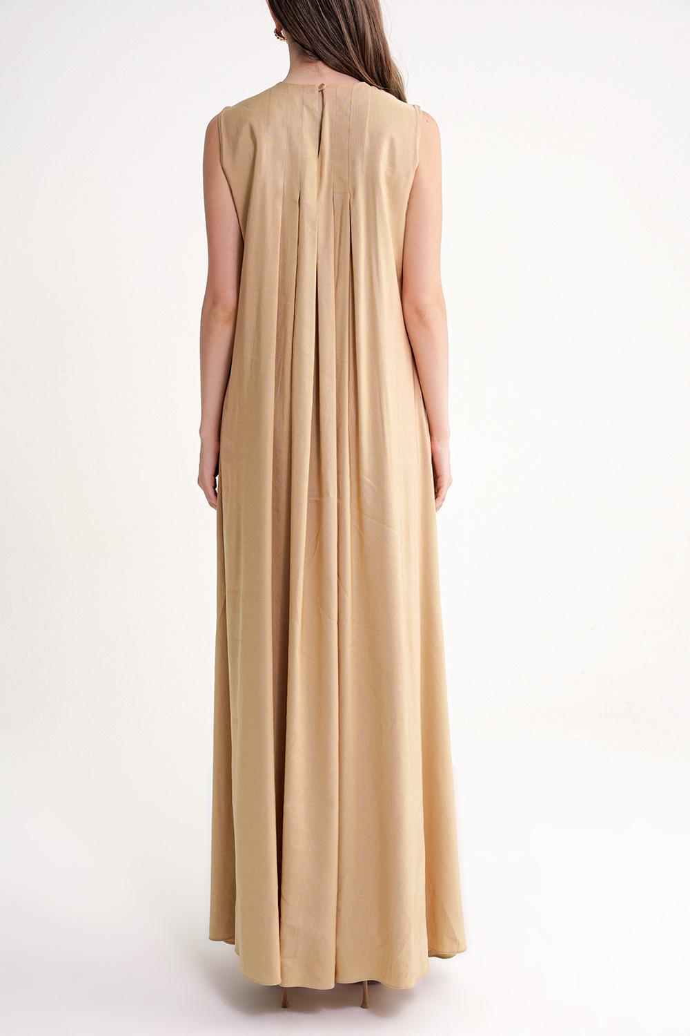 Camel Hair Pleated detailed loose linen dress 94653