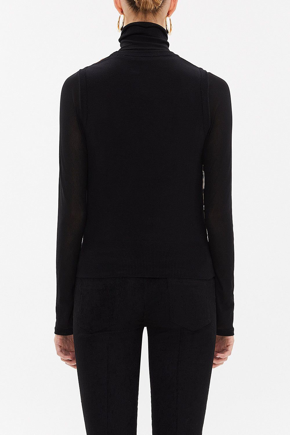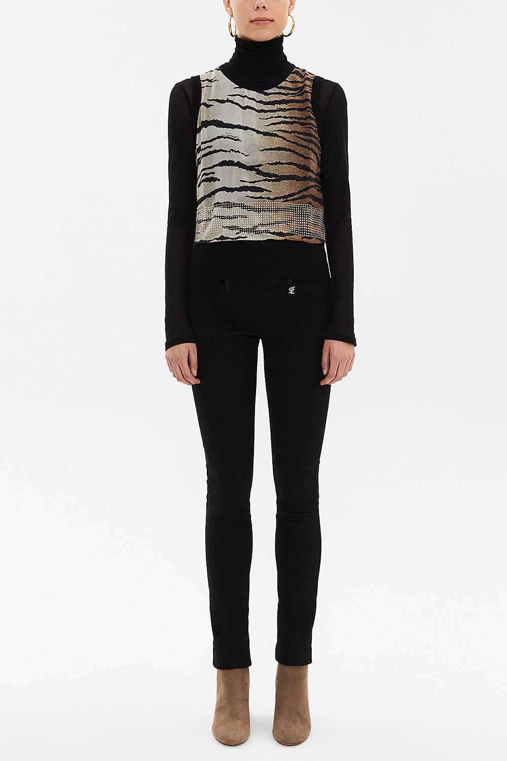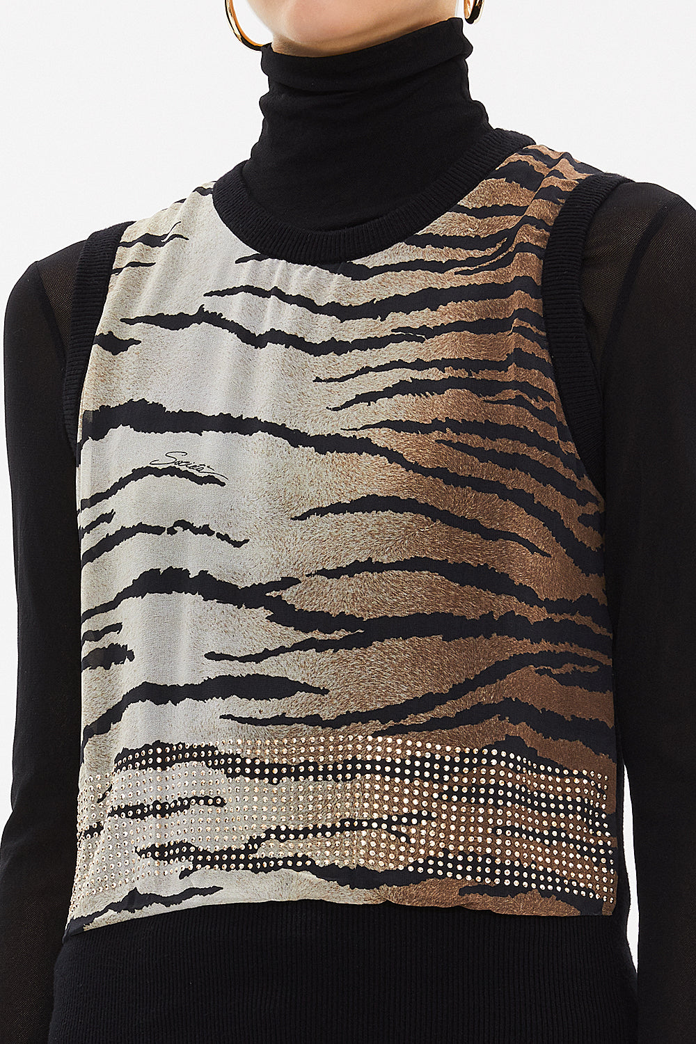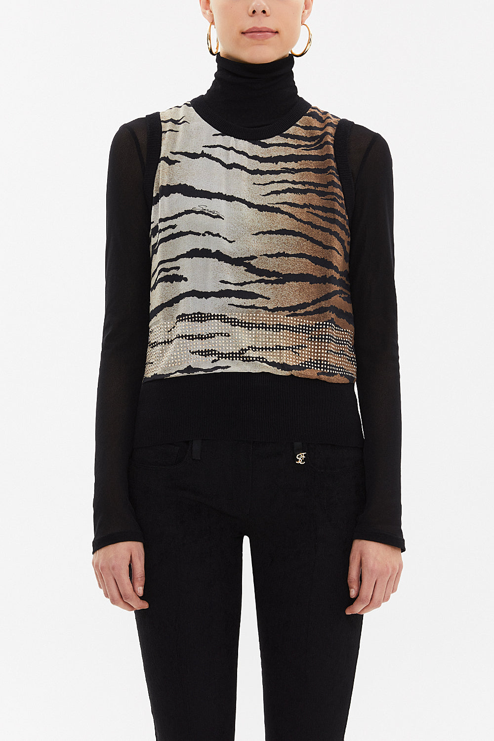 Camel Hair Printed satin fabric knit sleeveless blouse 28496