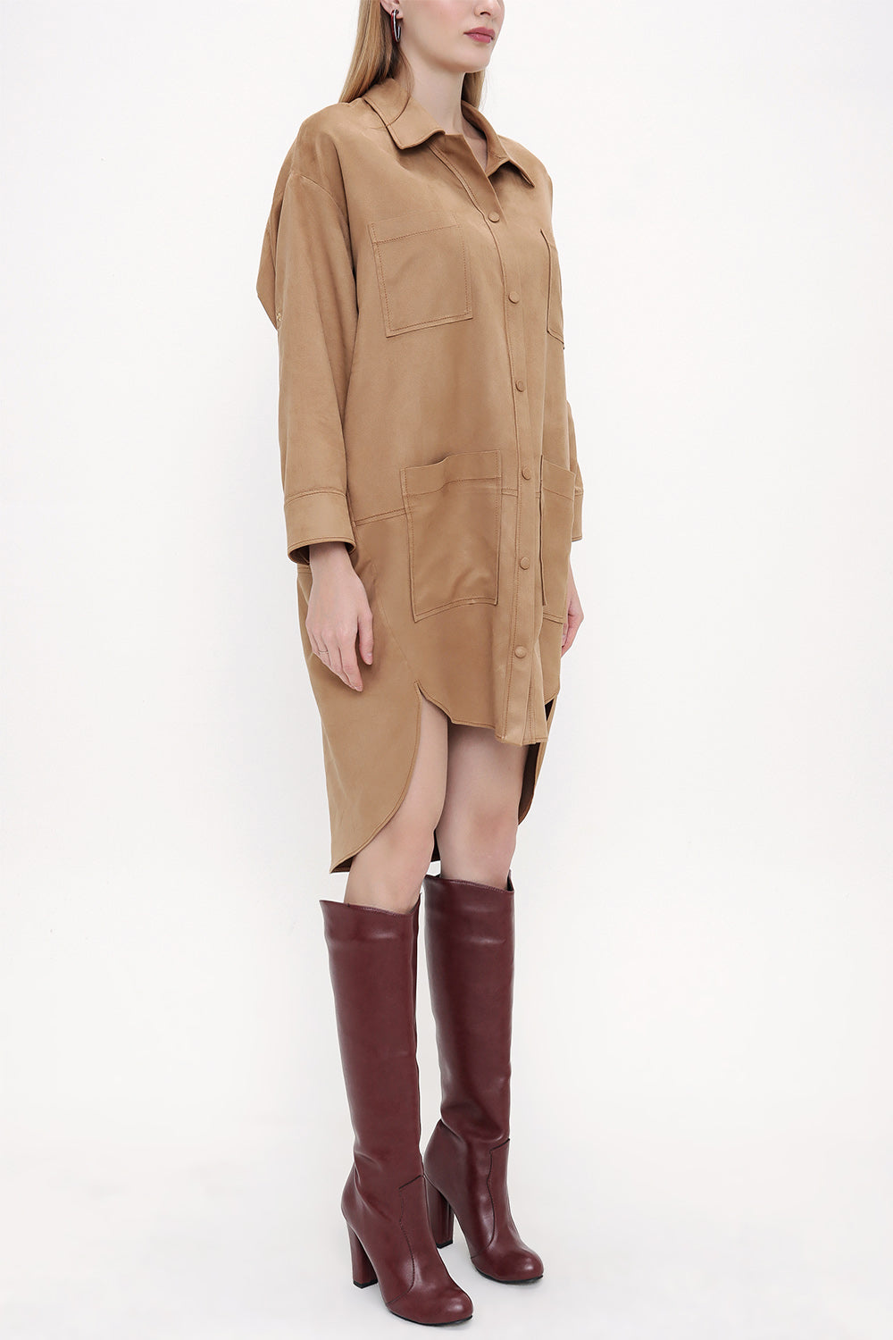Camel Hair Snap-fastened suede shirt 10806