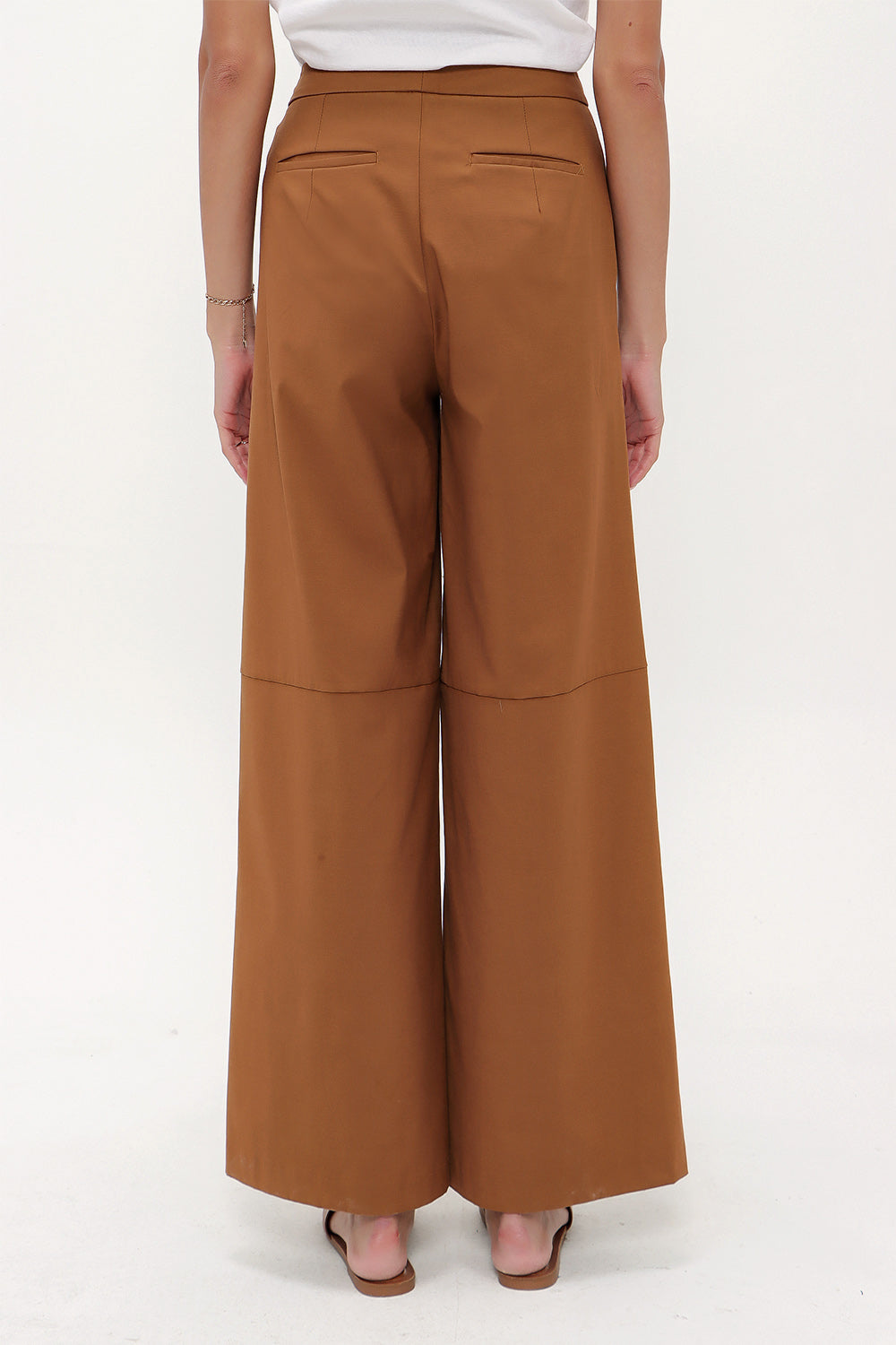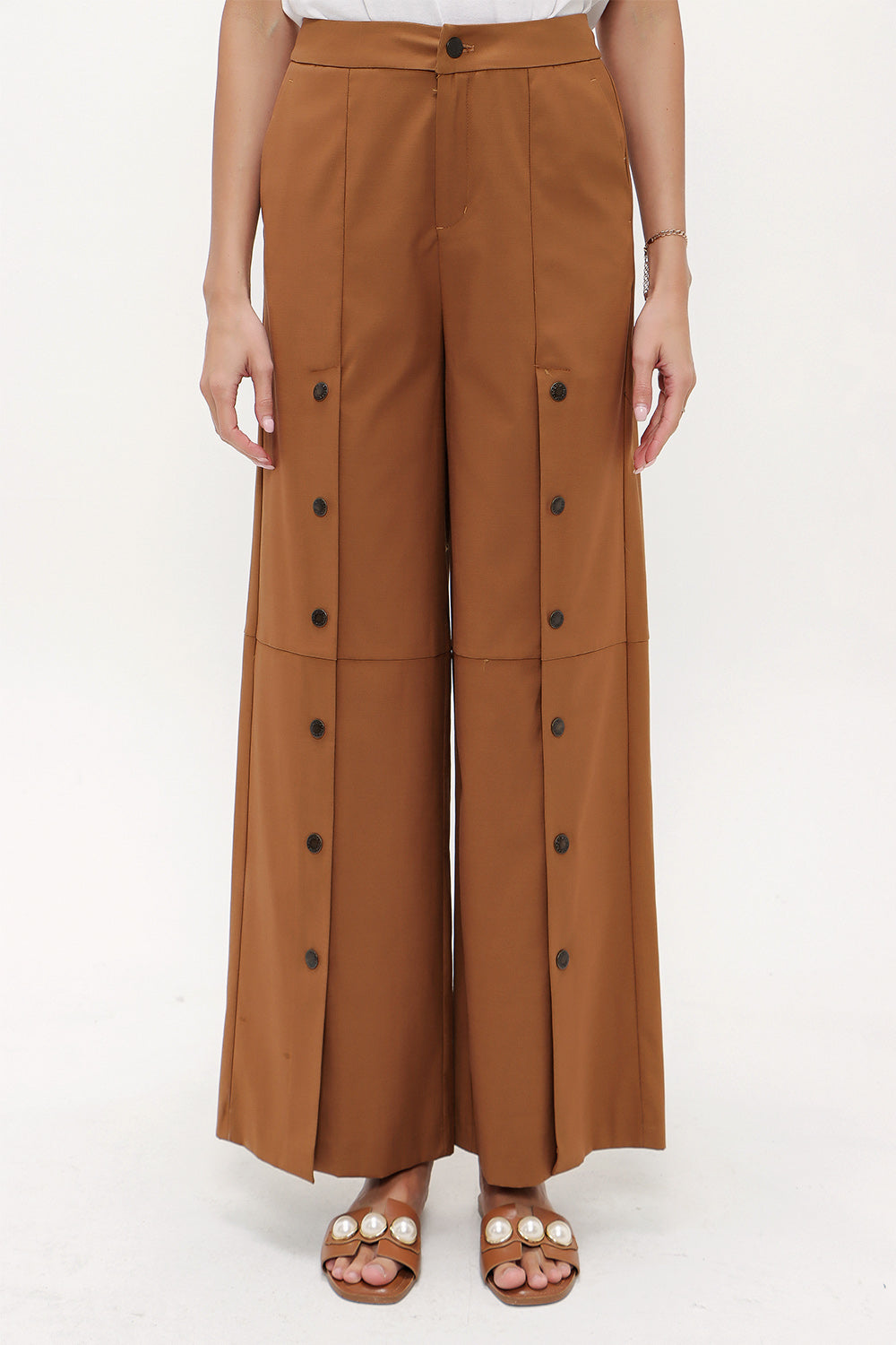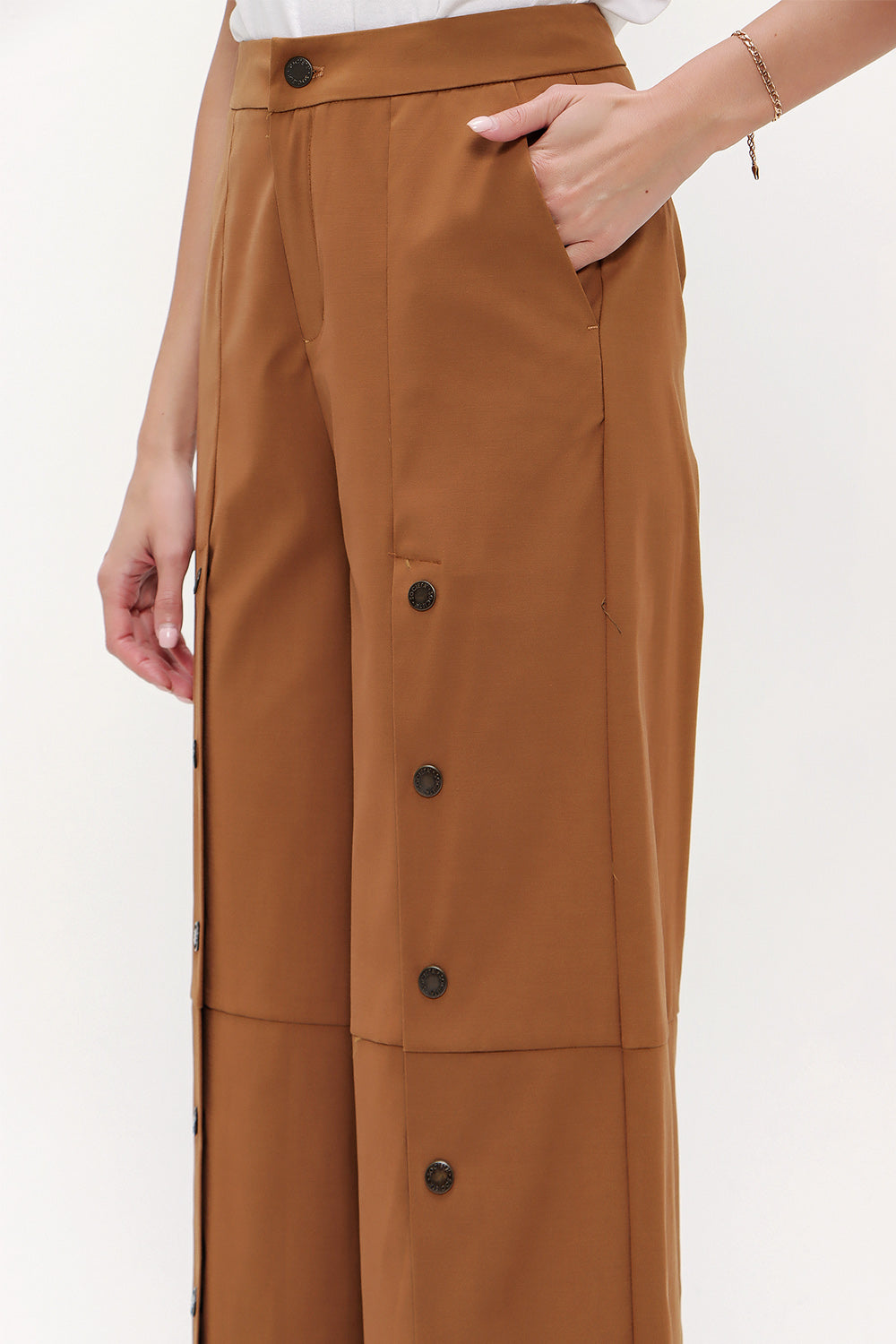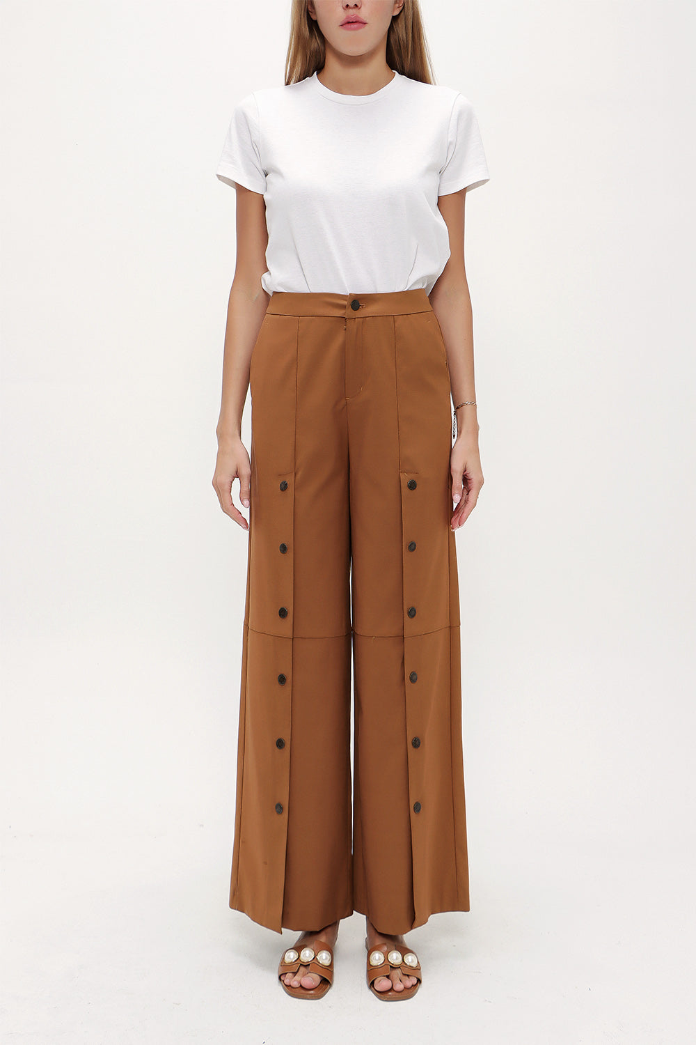 Camel Hair Snap fastener detail wide leg pants 41298