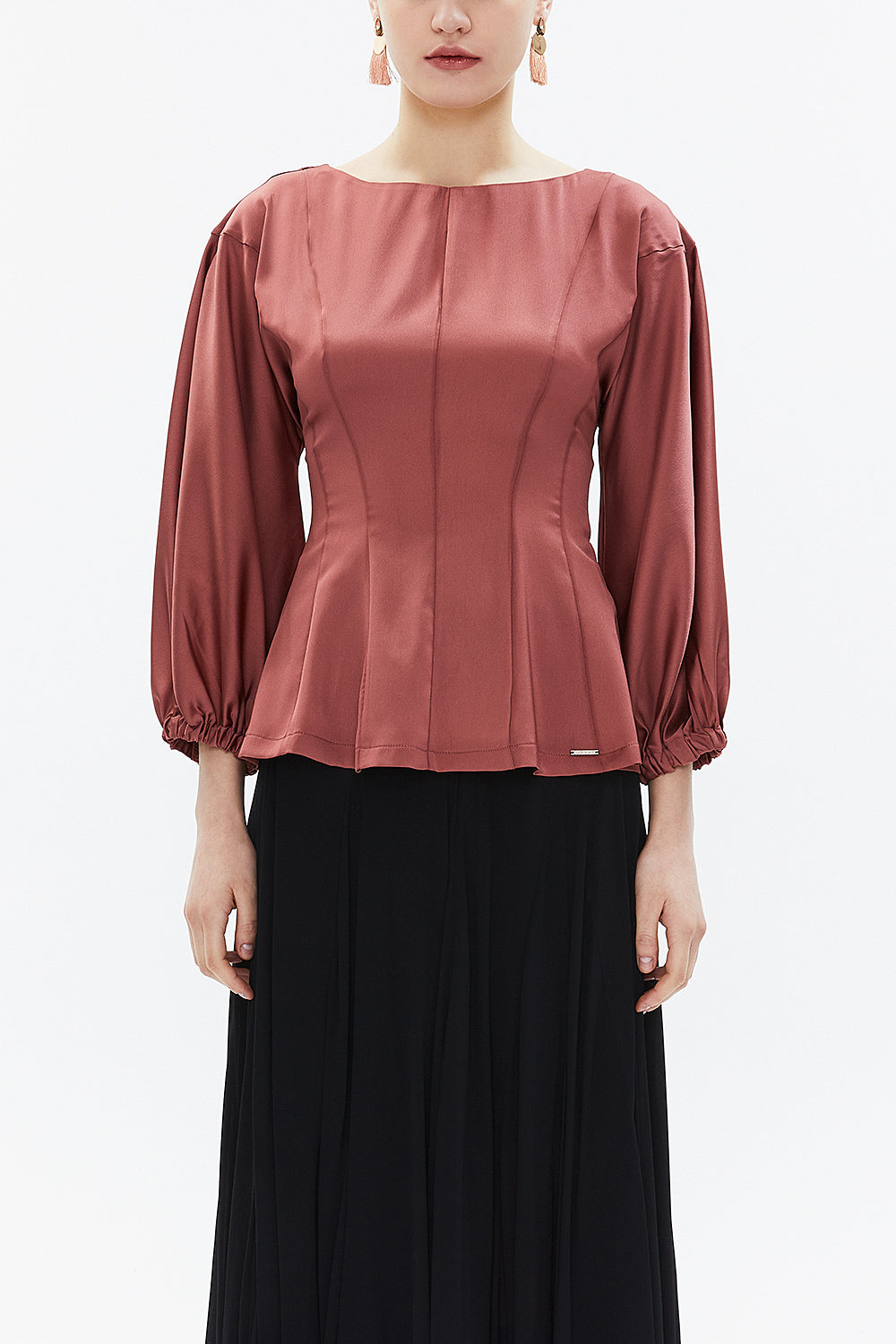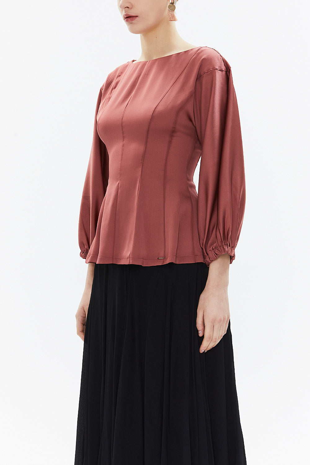 Cinnamon Balloon sleeve fitted waist blouse 19810
