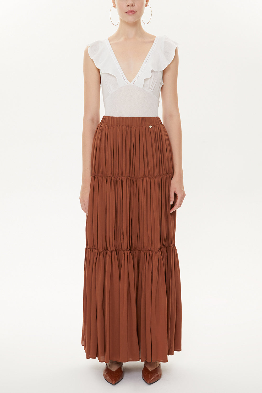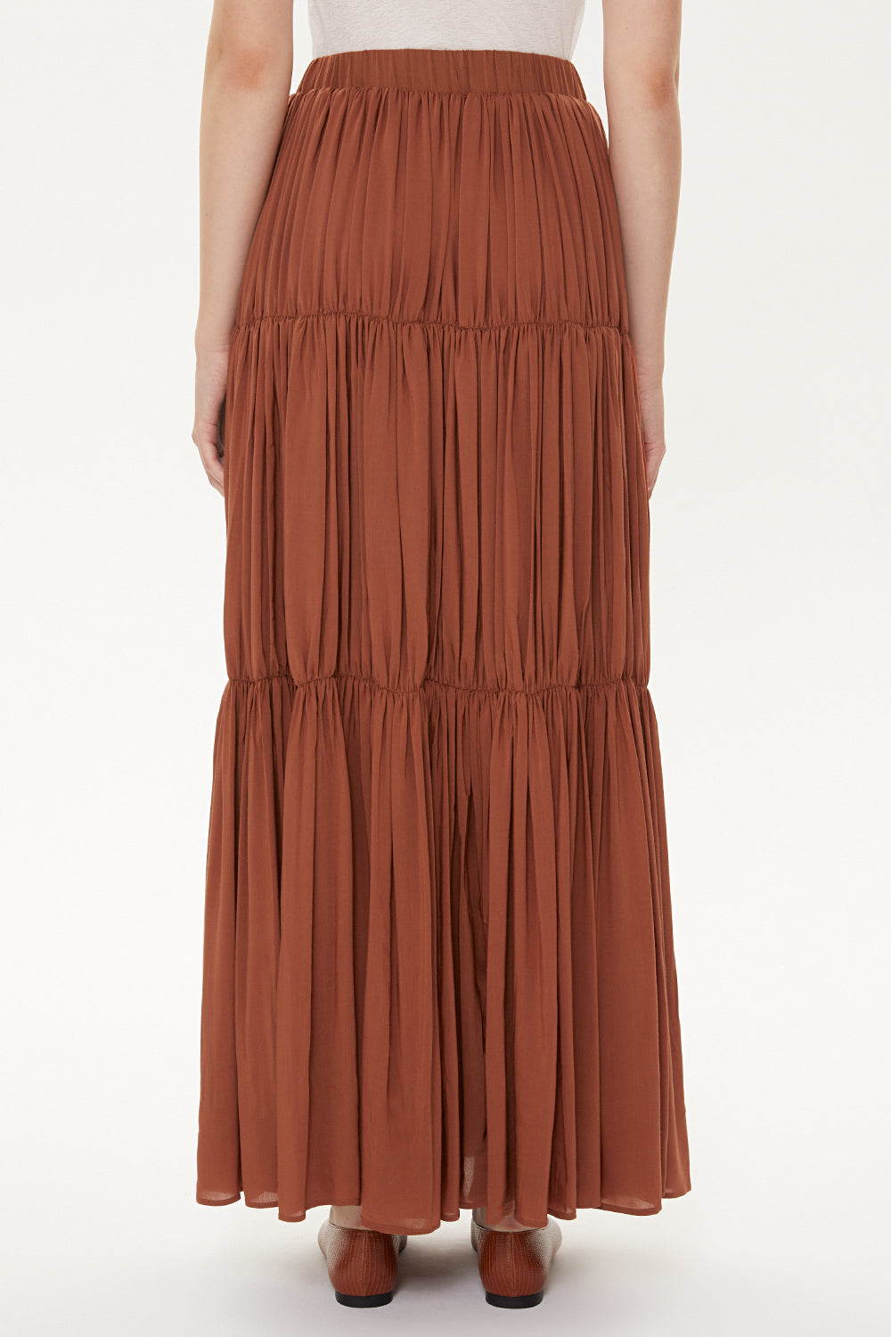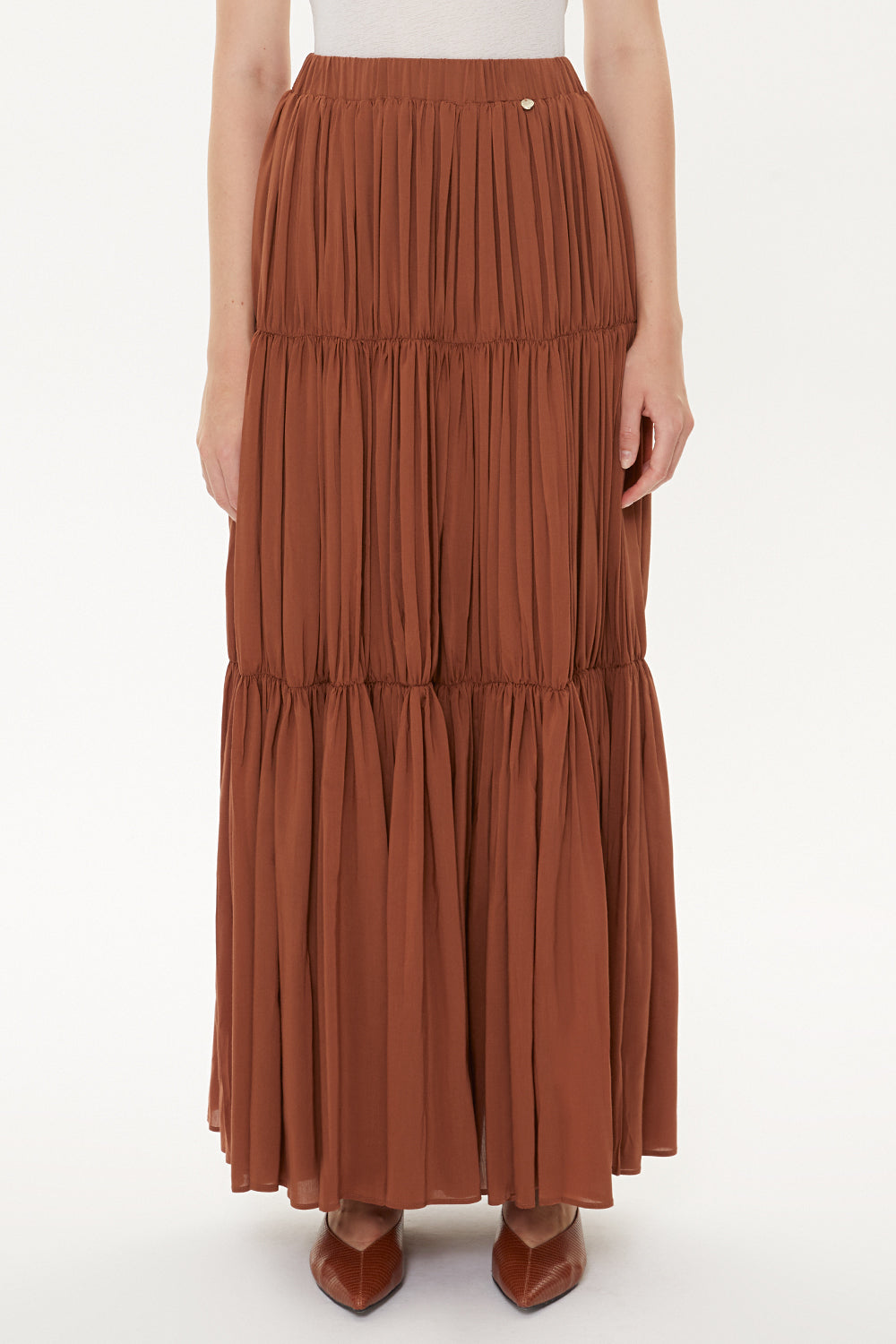 Cinnamon Elastic Pleated Maxi Skirt 81154