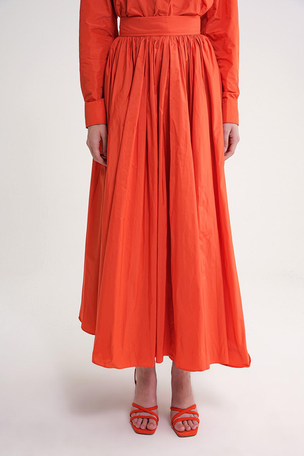 Cinnamon High waist elastic and zipper detailed long skirt 81310