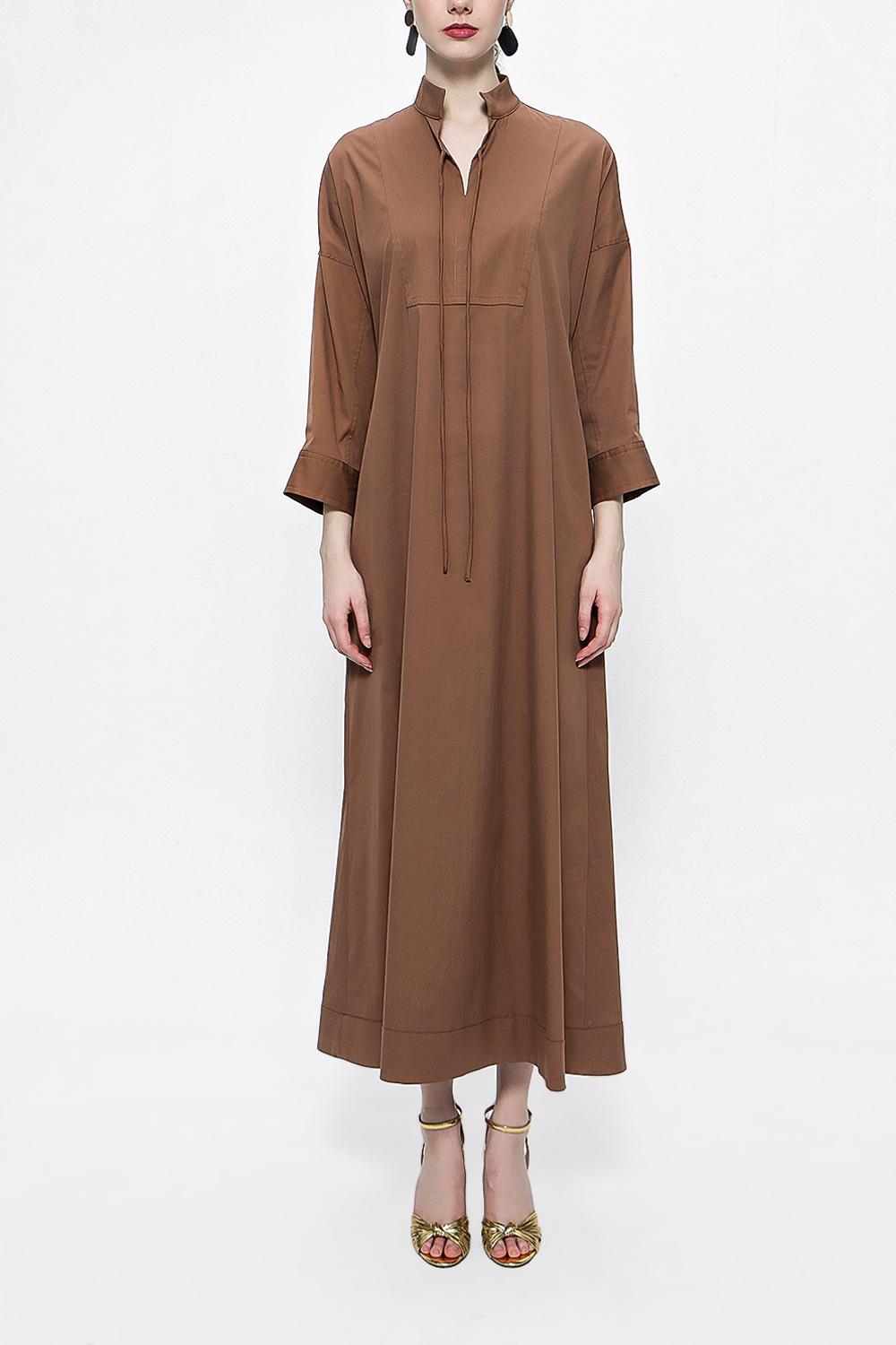 Cinnamon Lace-up wide cut poplin dress 94072