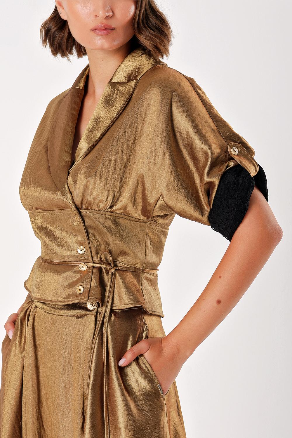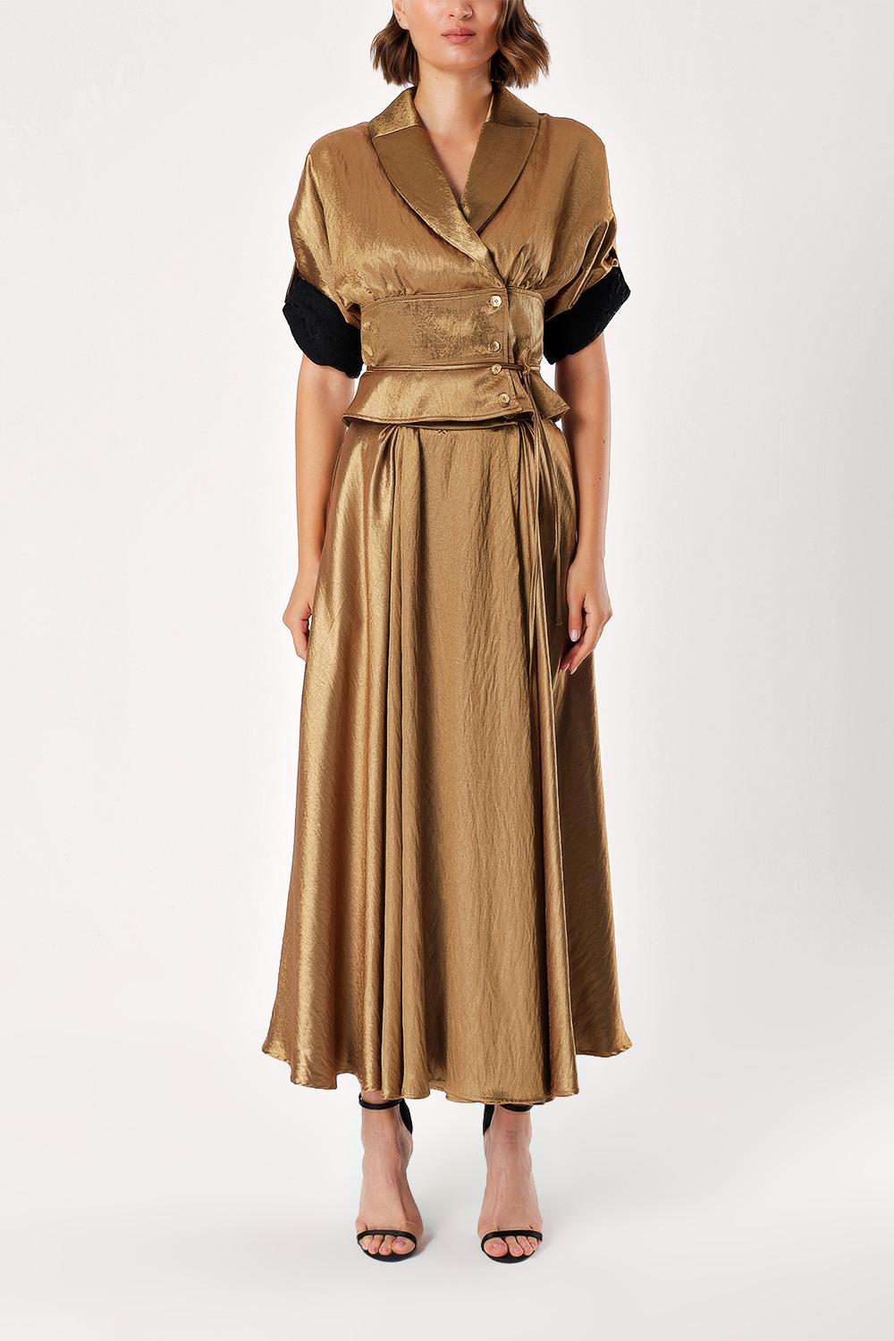 Copper Set with corset detail blouse and wrapover skirt 12313