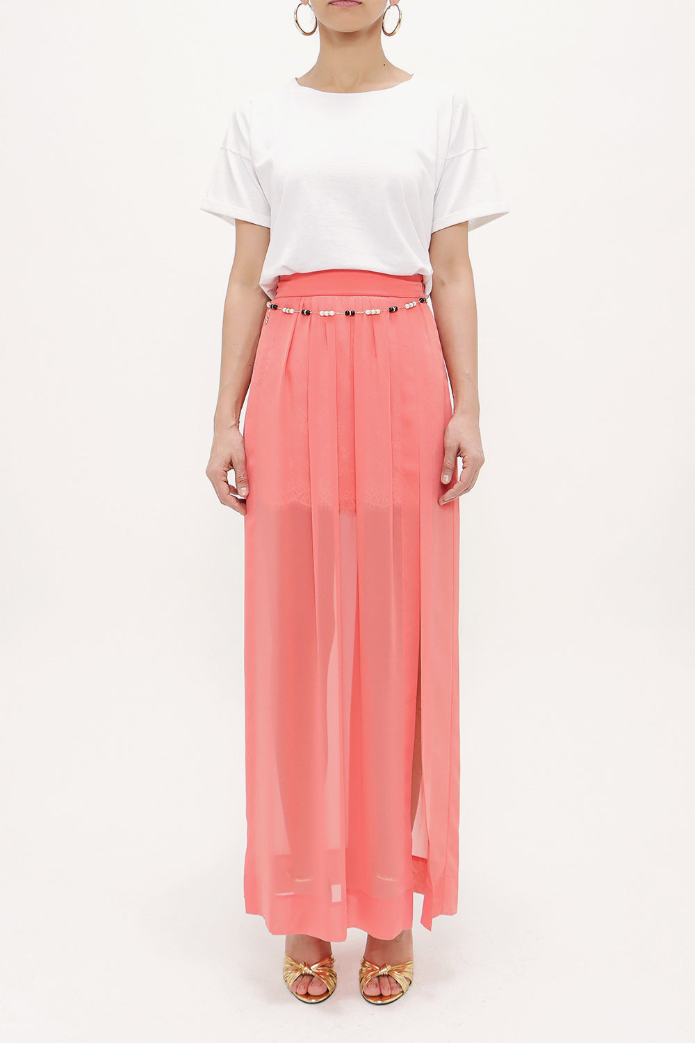 Coral accessory detailed chiffon skirt 80495