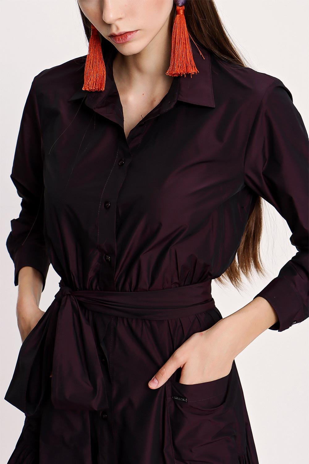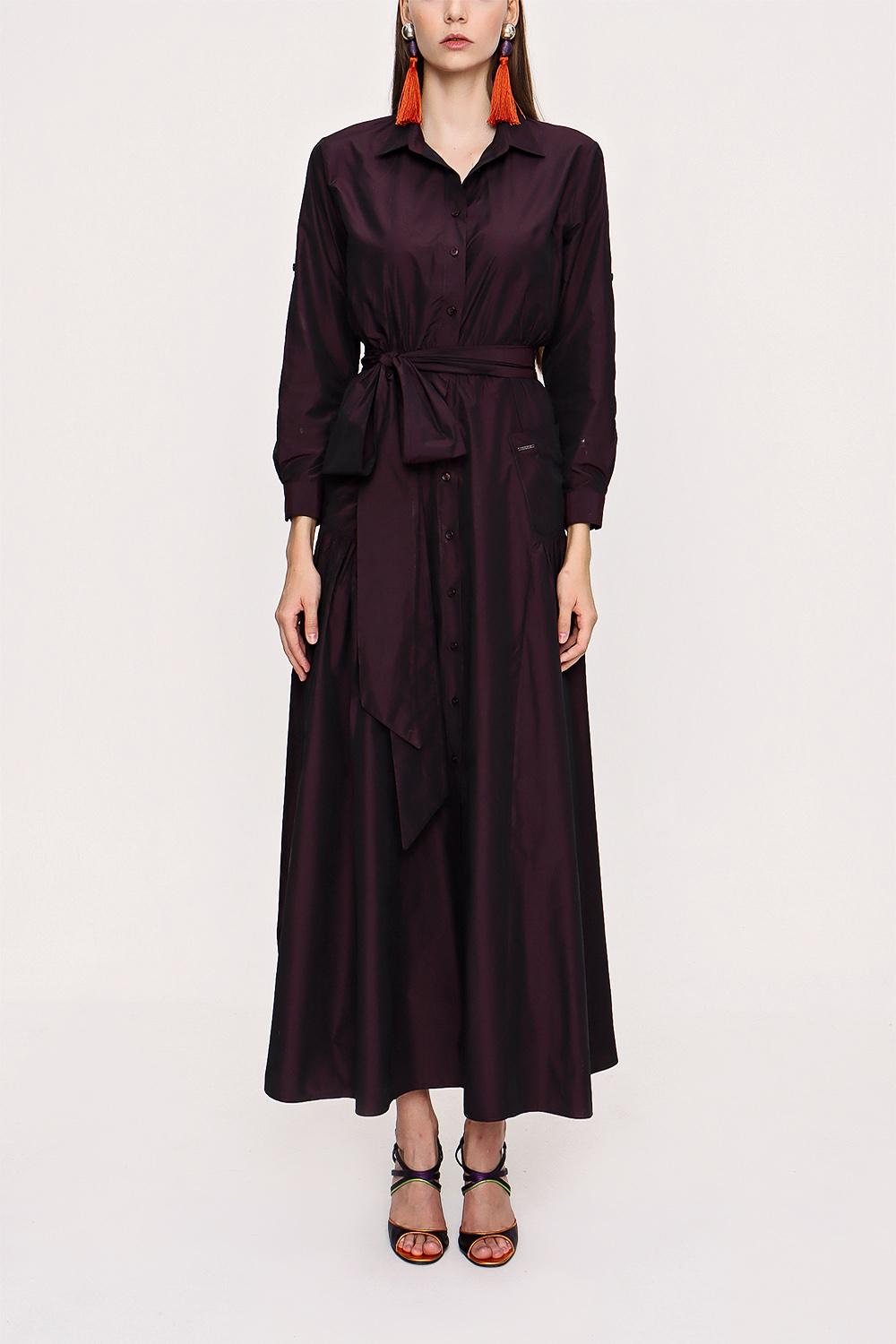 Koyu Bordo Büzgülü Uzun Tafta Elbise 94032