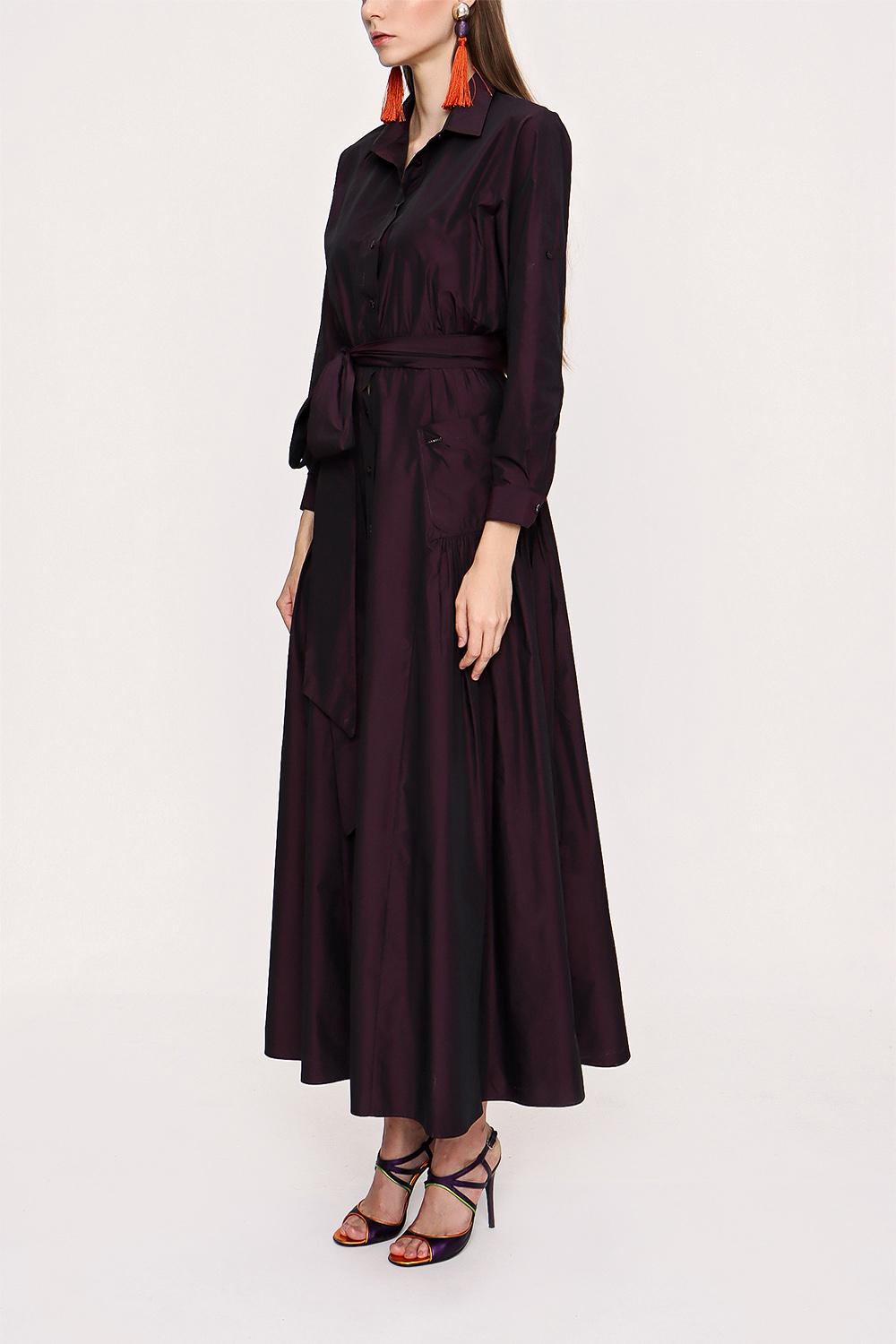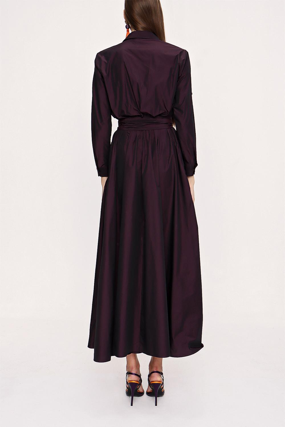 Dark Burgundy Pleated maxi taffeta dress 94032