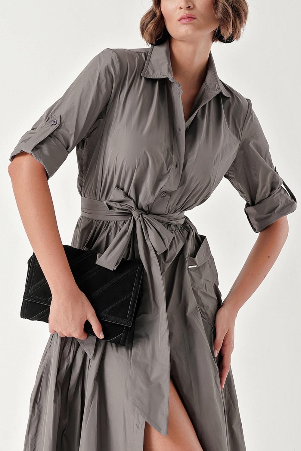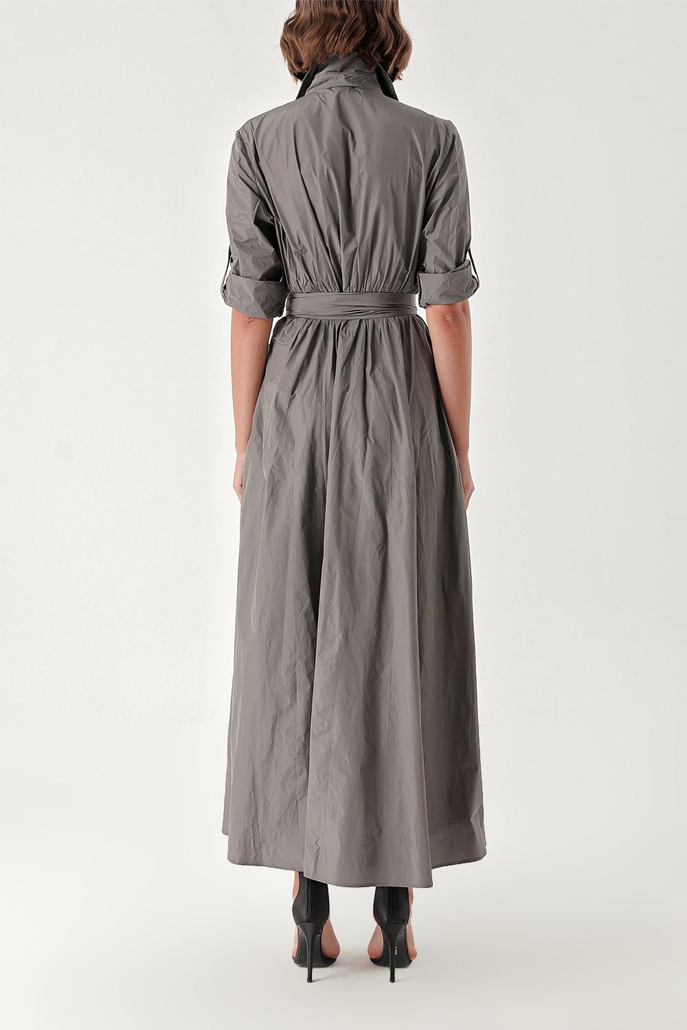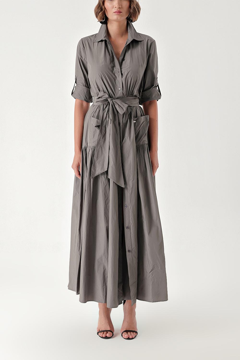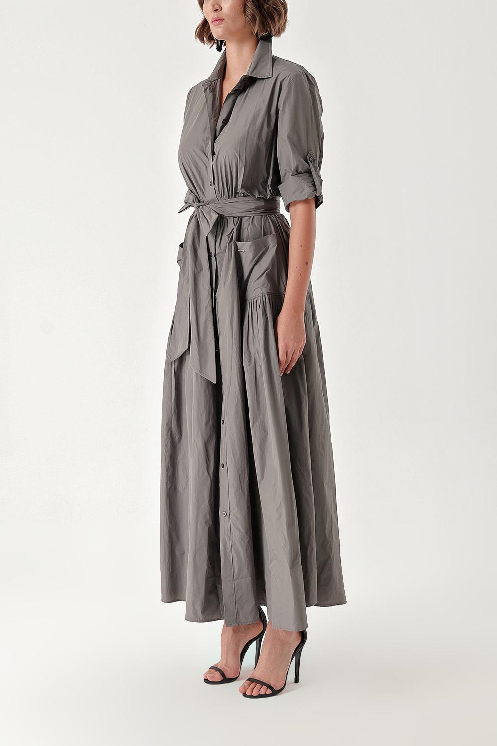 Dark Grey Pleated maxi taffeta shirt dress 94354